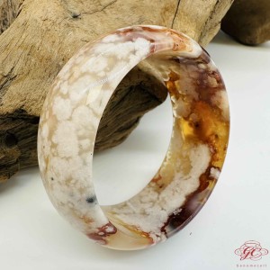 【肌容雪】焦糖色櫻花瑪瑙手鐲 編號B193【鐲圍】57.1mm#18號【長度】73.4mm【鐲高】28.7mm【鐲厚】8.5mm【重量】93.84g【櫻花瑪瑙】有著溫柔與幸運的象徵,純淨如花,佩戴幸福櫻花瑪瑙,又稱為櫻花玉髓(Cherry Blossom Agate),是一種來自非洲馬達加斯加的珍稀寶石。它因內含獨特的白色或粉色礦物花紋,宛如朵朵櫻花綻放在透亮的瑪瑙之中,因此得名「櫻花瑪瑙」。每一只手鐲都是大自然的藝術品,獨一無二,專屬於你的美麗與優雅。天然純淨,珍藏級品質嚴選來自馬達加斯加的天然櫻花瑪瑙,每一只手鐲都經過精細打磨,溫潤貼膚,舒適佩戴,不僅是飾品,更是你的能量守護石。櫻花瑪瑙..
