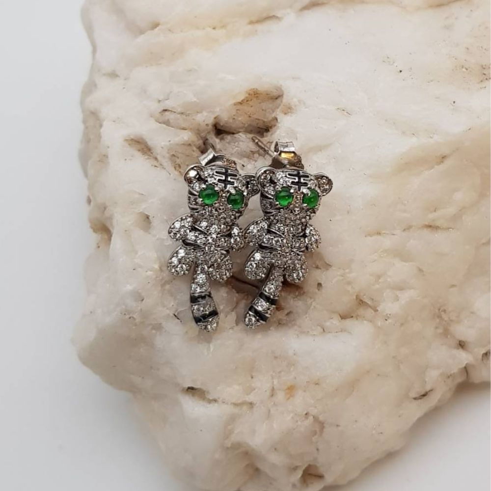 【肌容雪】天然緬甸A貨綠翡翠貓咪造型耳丁 編號507