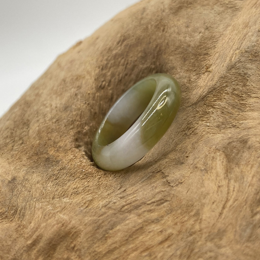 【肌容雪】緬甸天然A貨翡翠白底橄欖綠特色翡翠戒指 編號762-1