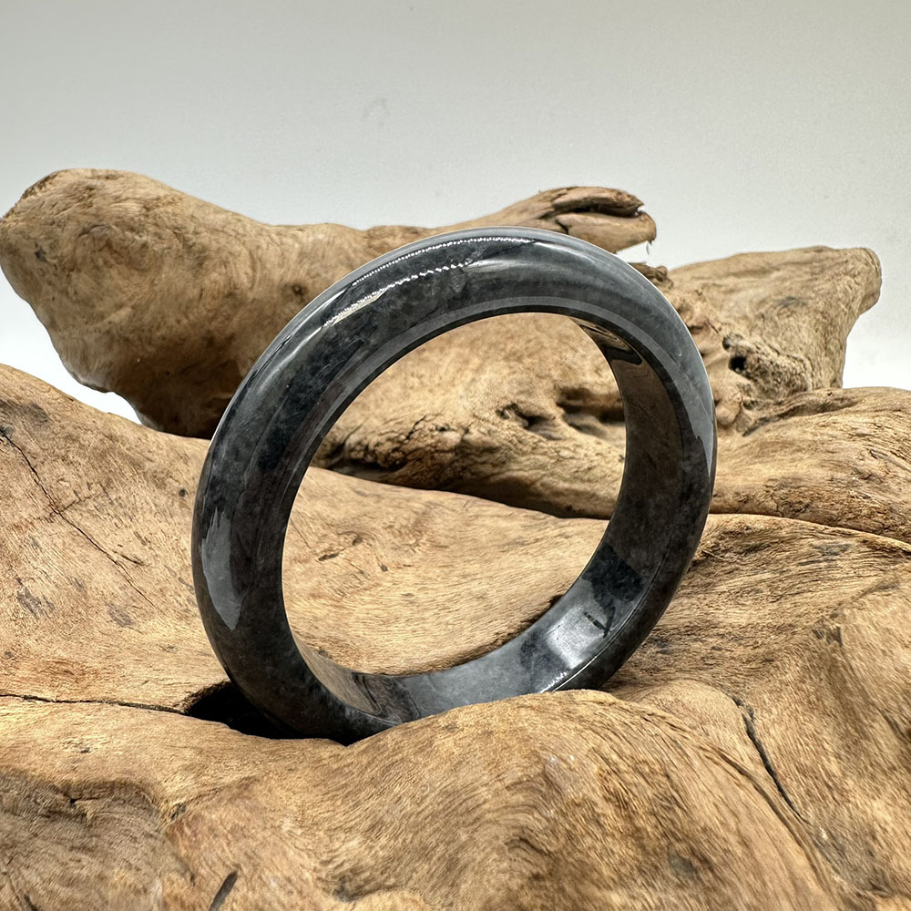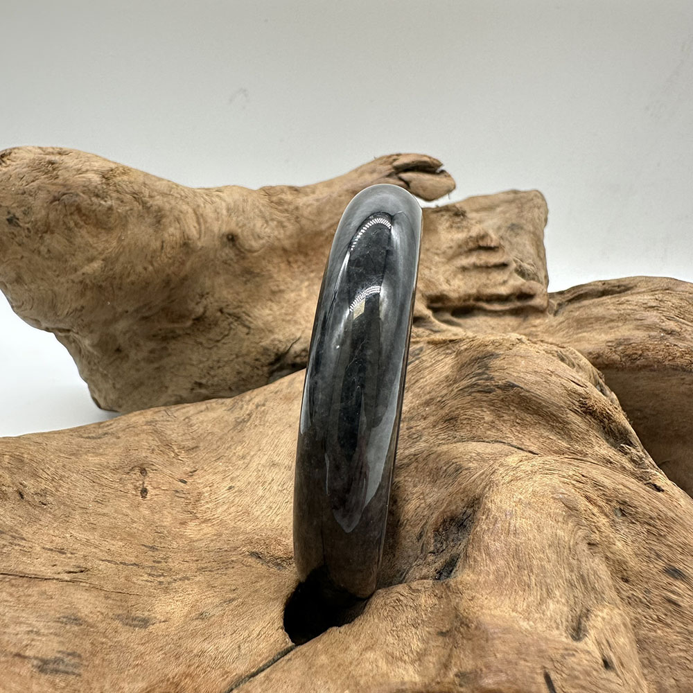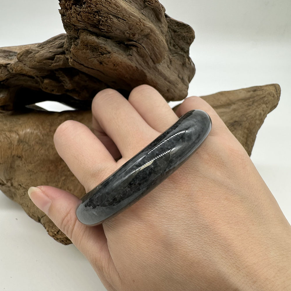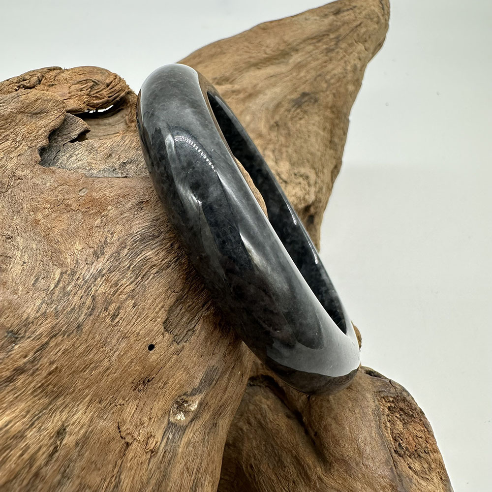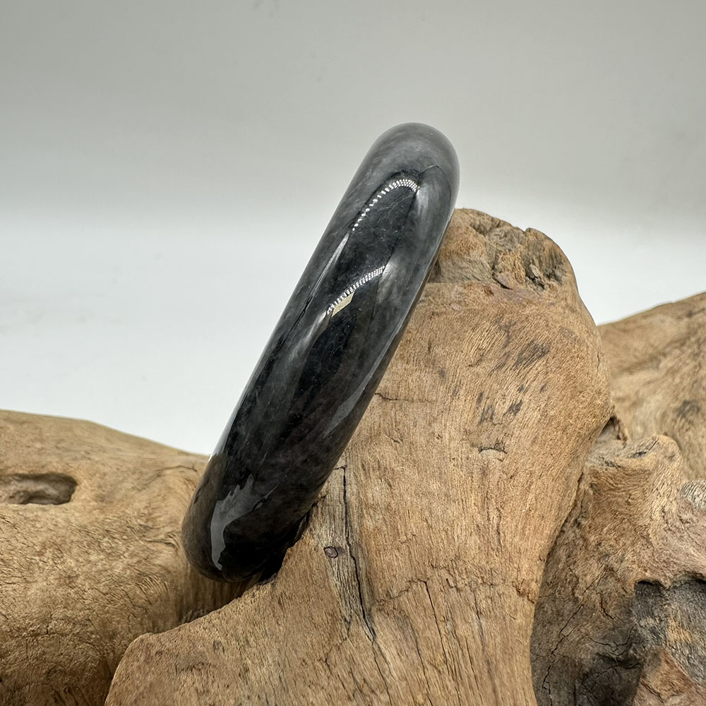 【肌容雪】天然緬甸A貨翡翠烏雞平安鐲 編號83(鐲圍57.0mm#18號)