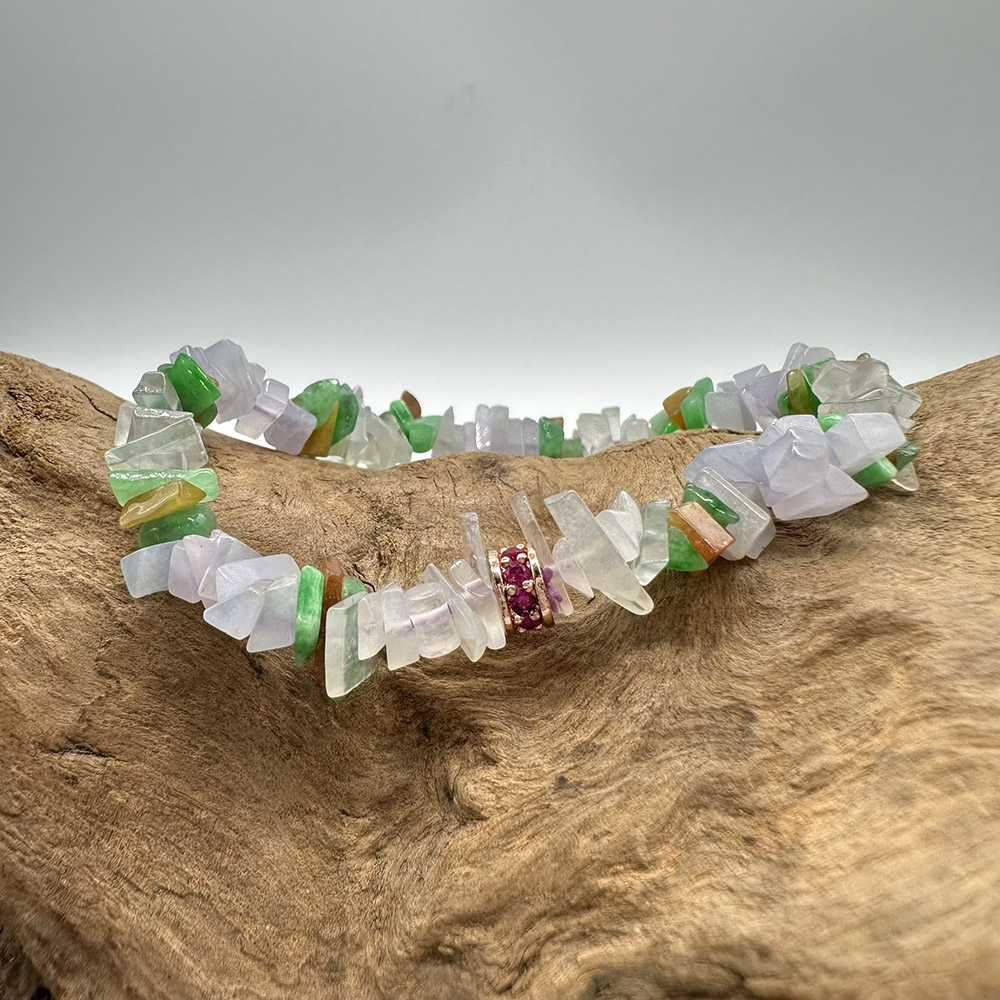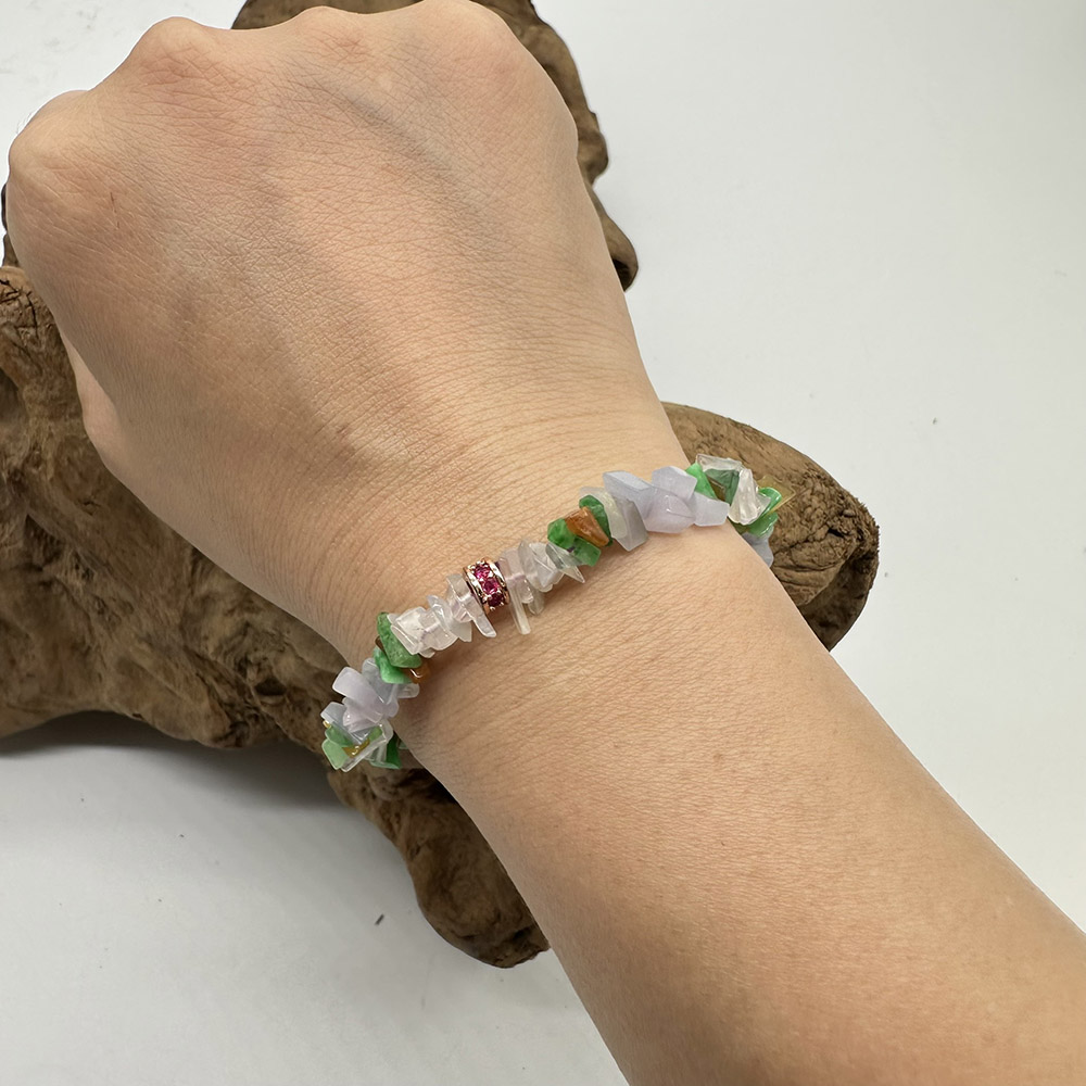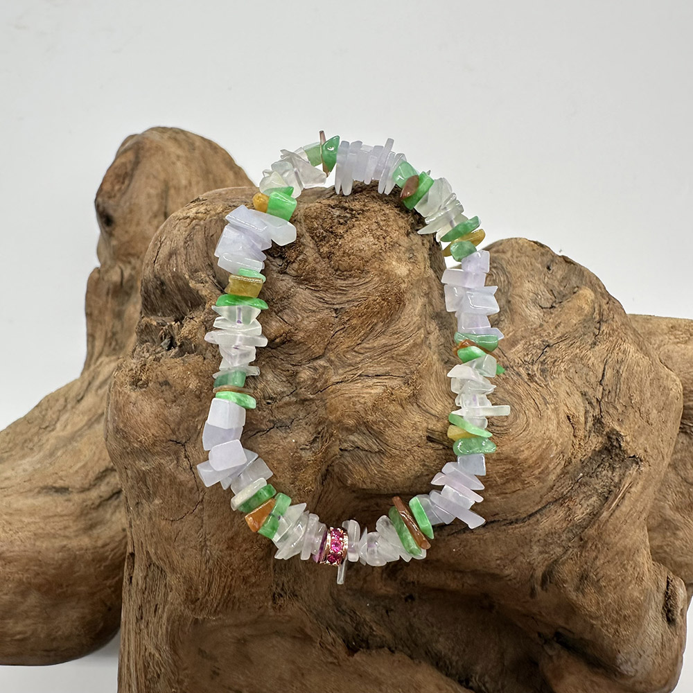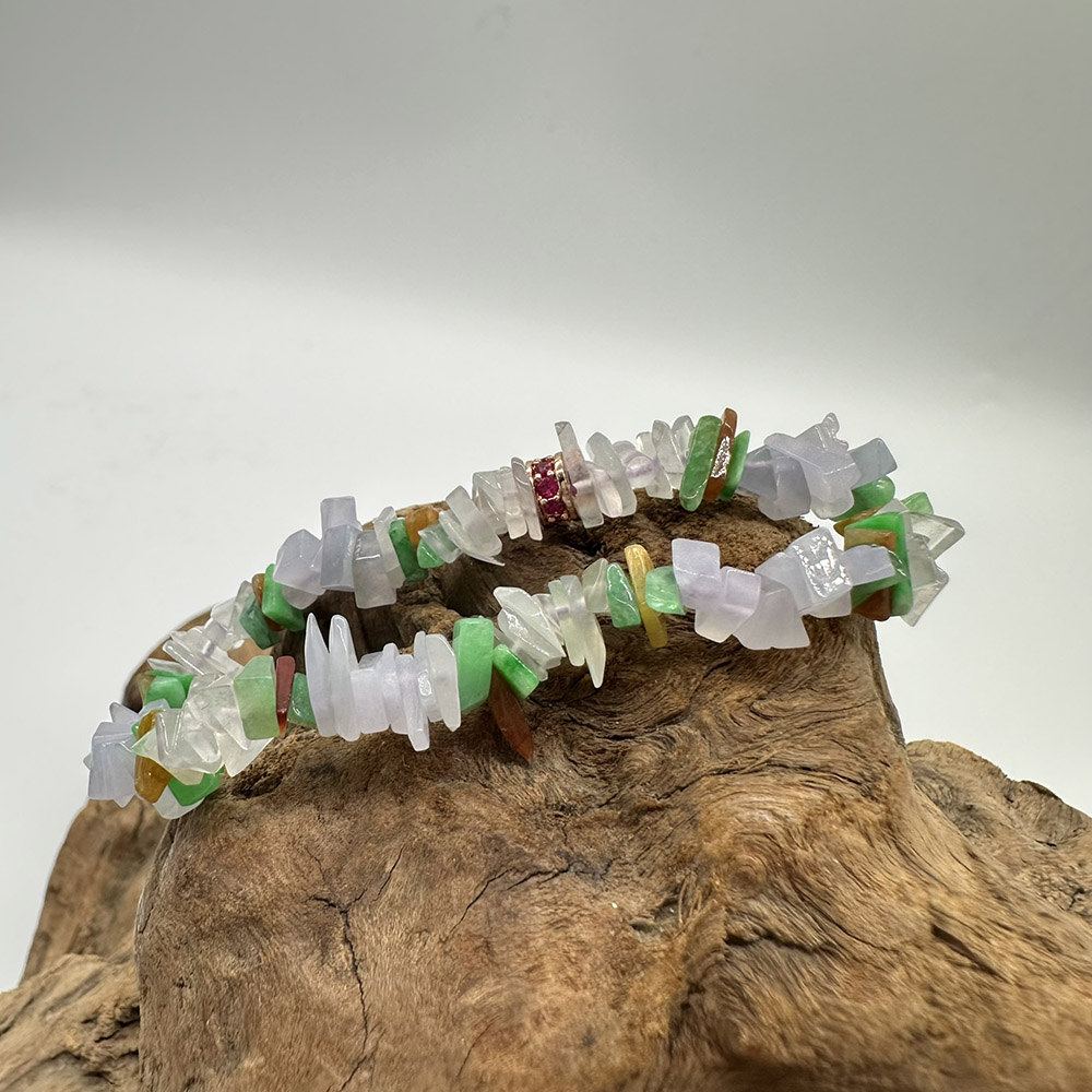 【肌容雪】天然緬甸A貨粉春多彩翡翠手串 編號74