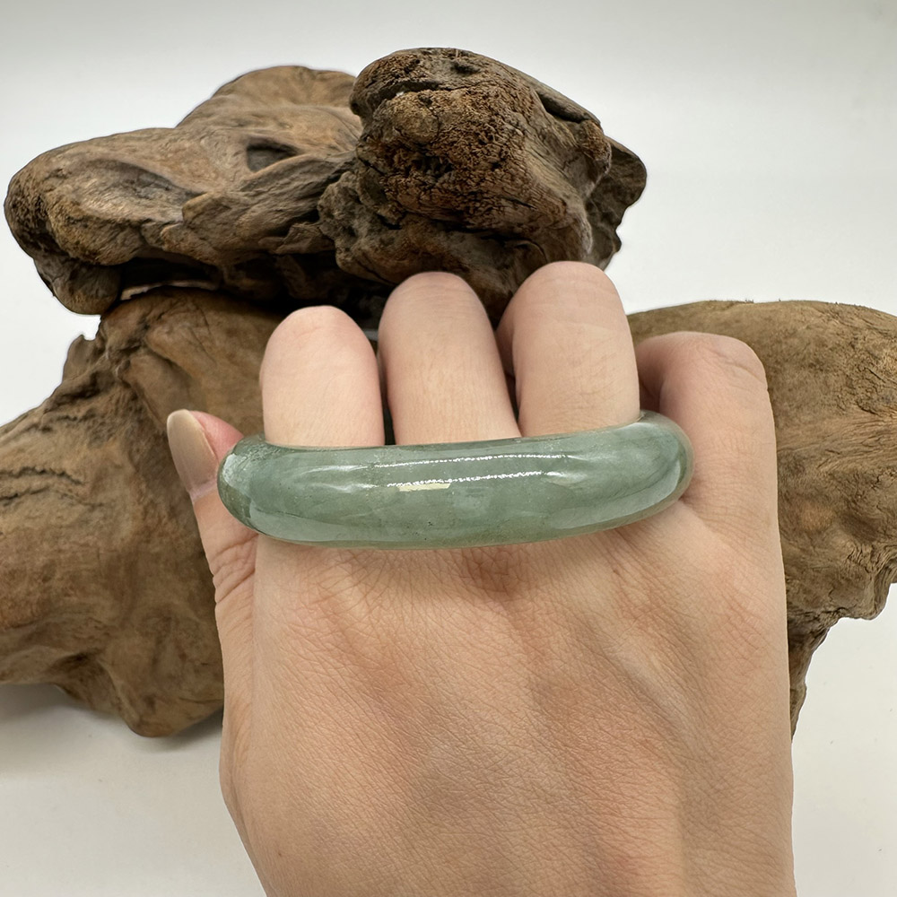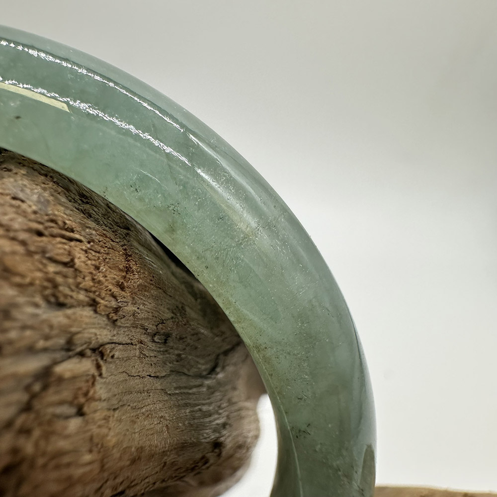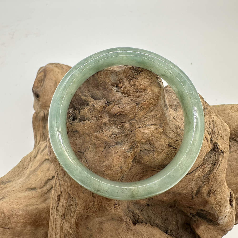 【肌容雪】緬甸天然A貨翡翠冰芹綠飄花平安鐲 編號748(鐲圍54.5mm#17號)