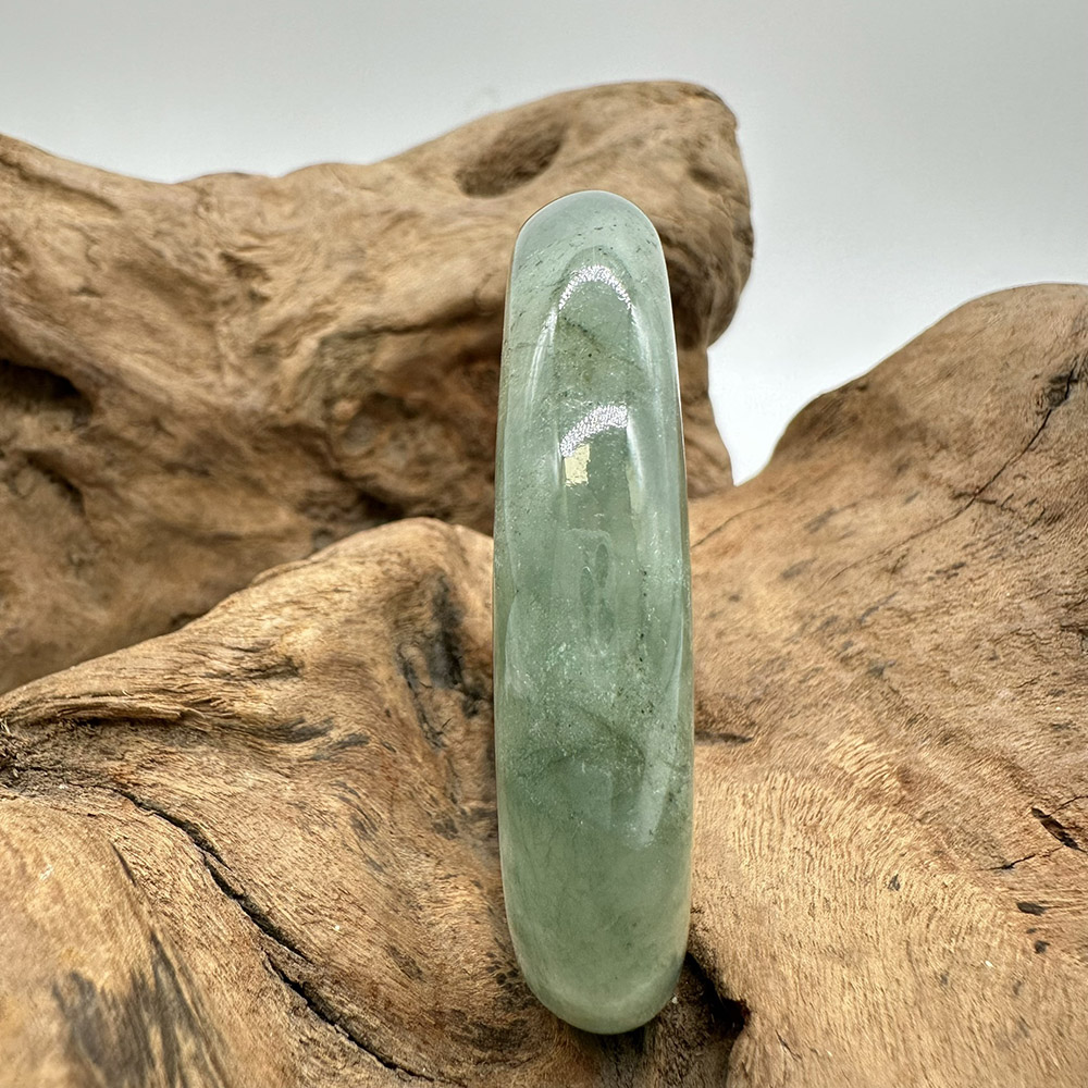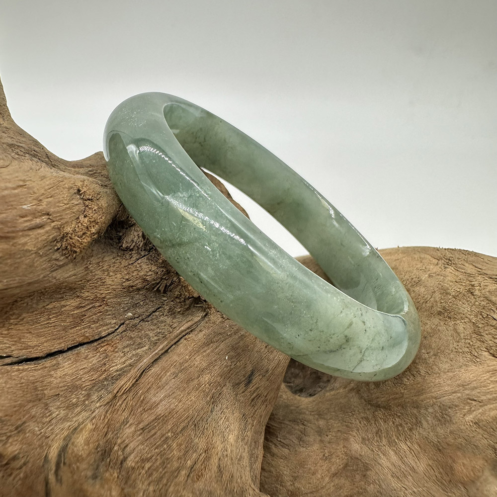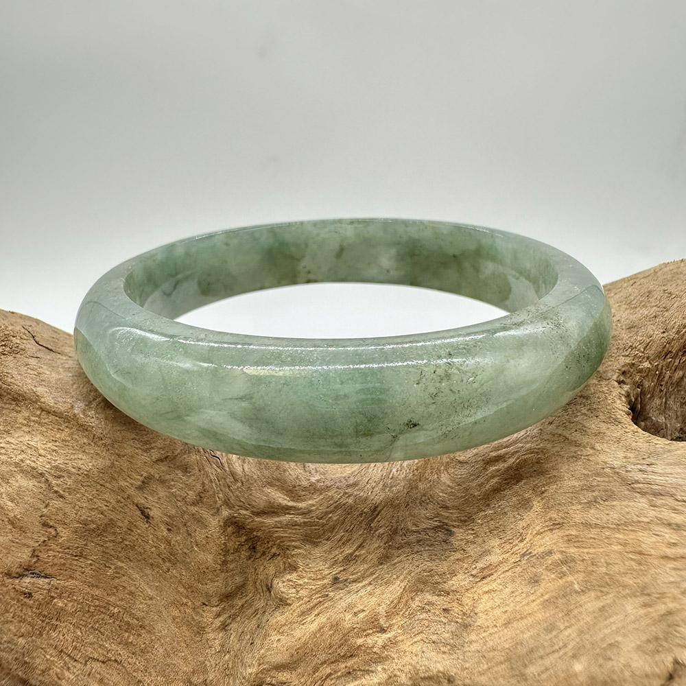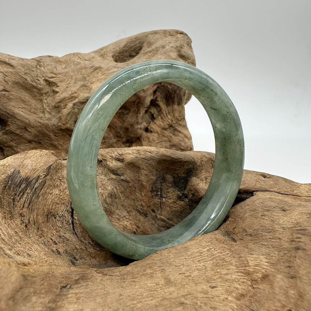 【肌容雪】緬甸天然A貨翡翠冰芹綠飄花平安鐲 編號748(鐲圍54.5mm#17號)