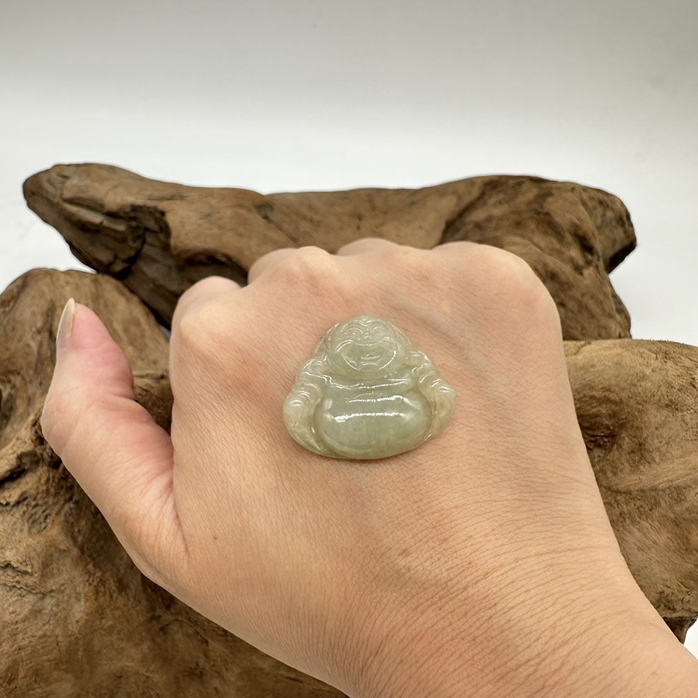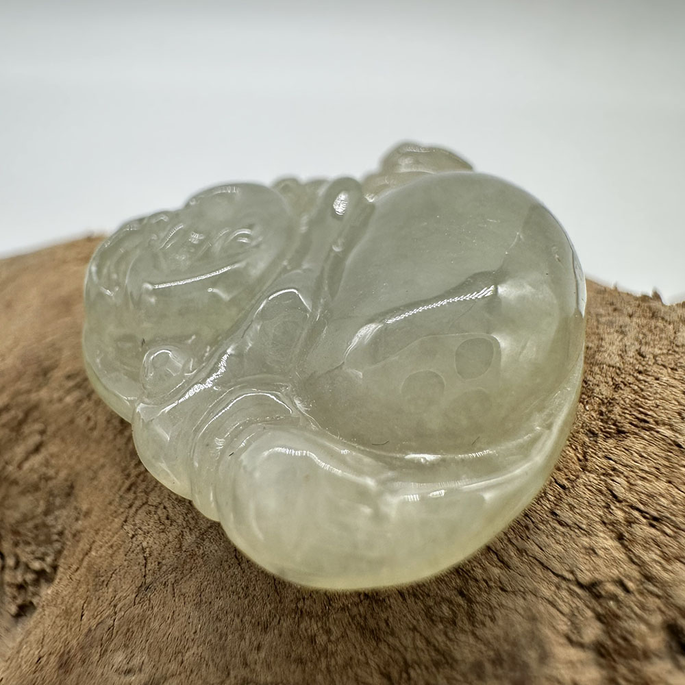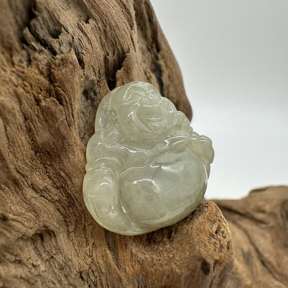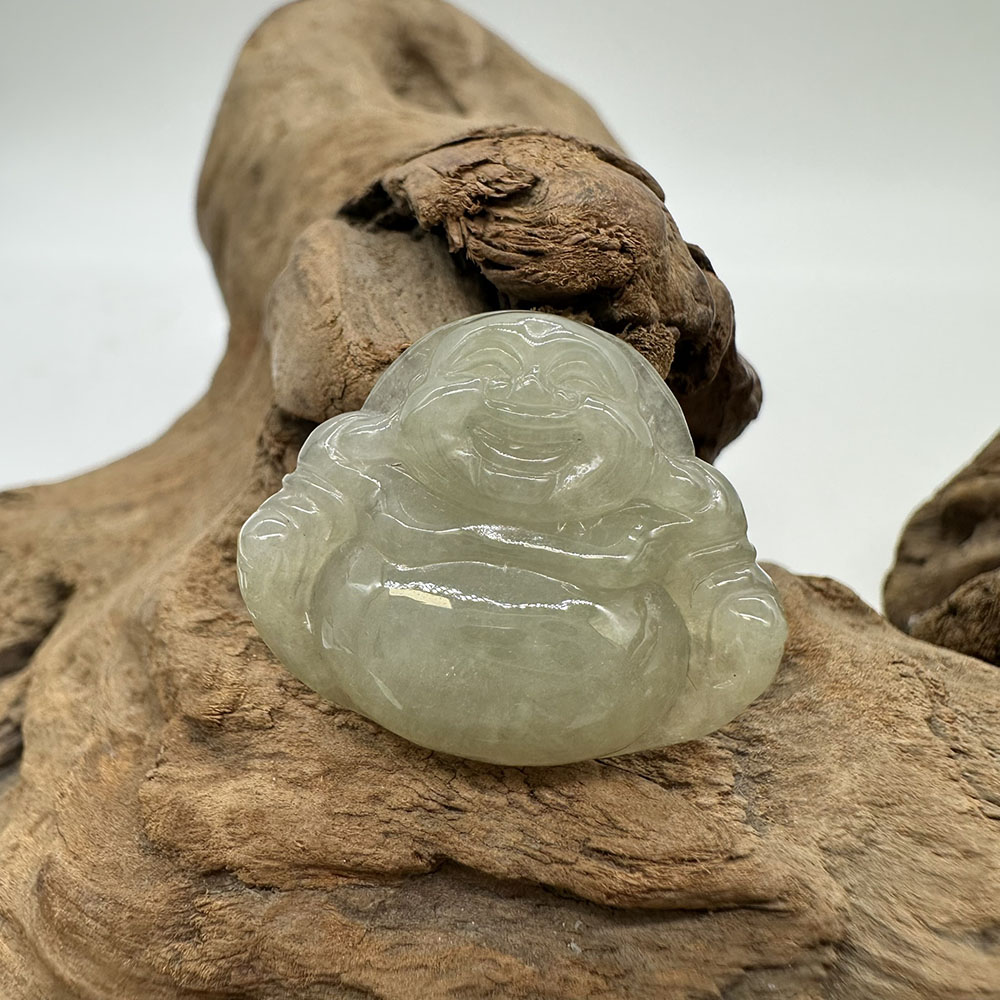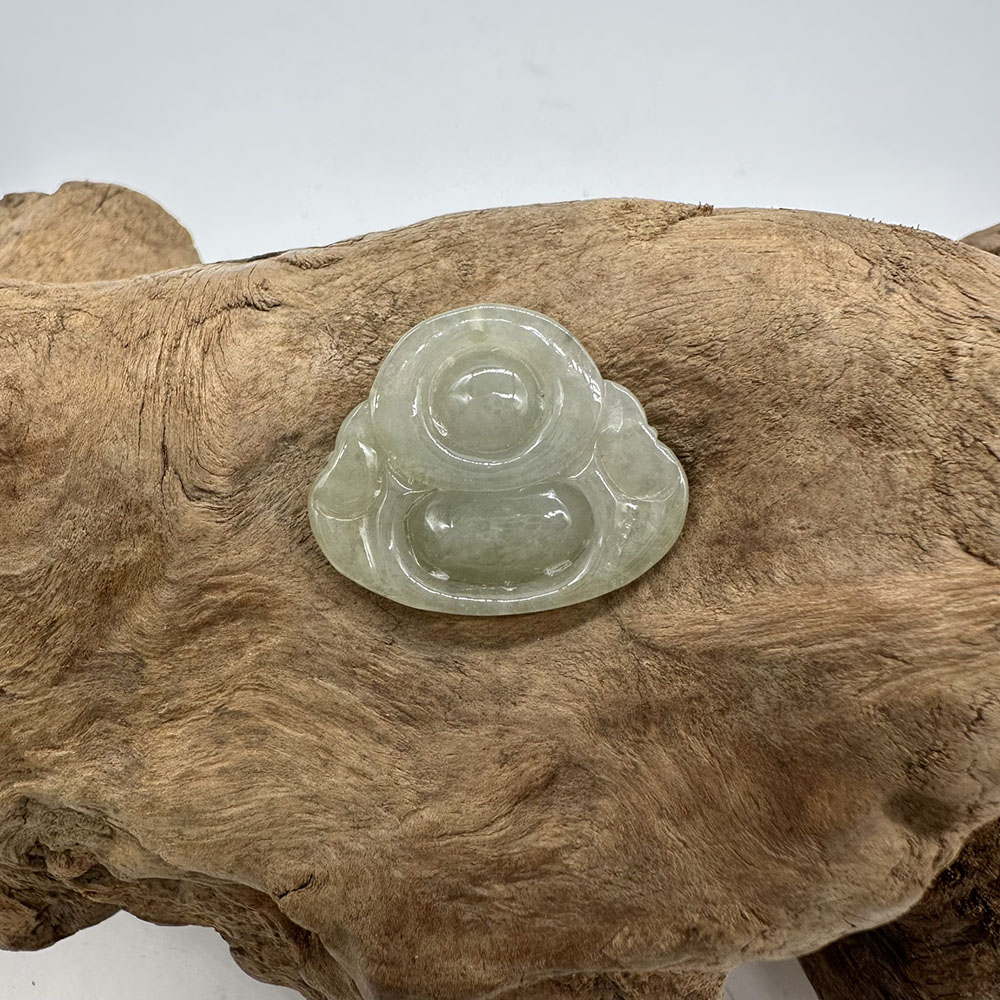 【肌容雪】天然緬甸A貨綠飄花翡翠彌勒佛造型吊墜 編號67