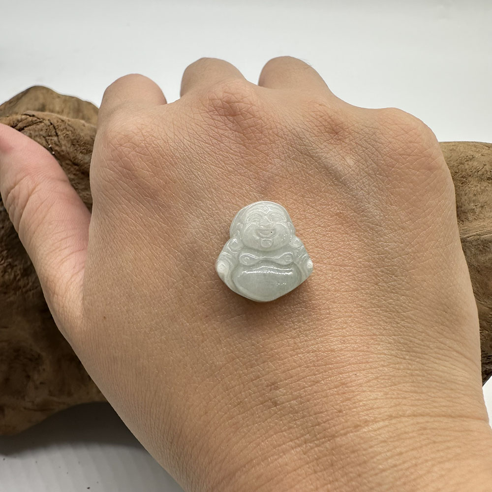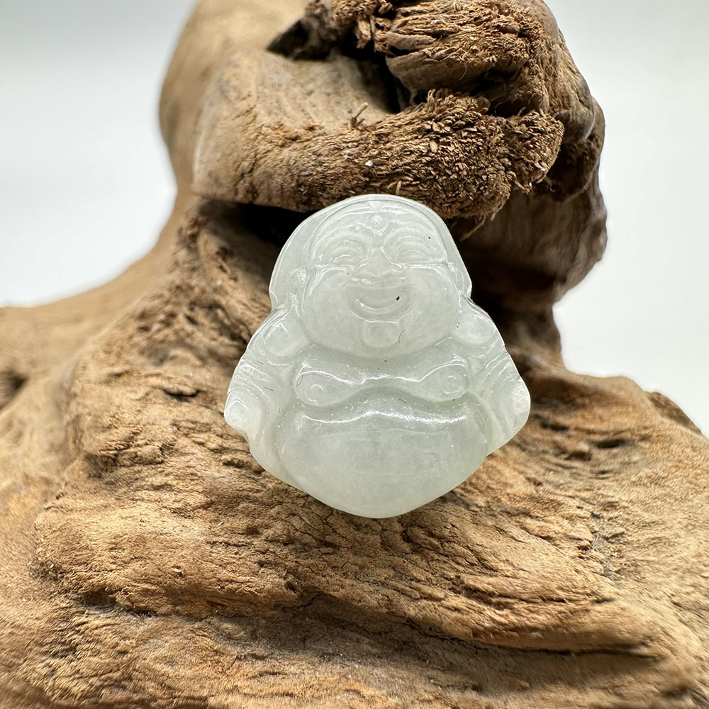 【肌容雪】天然緬甸A貨青白翡翠彌勒佛吊墜 編號68
