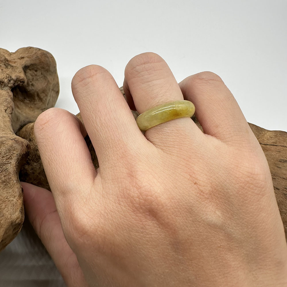 【肌容雪】天然緬甸A貨黃翡翠戒圈 編號444(戒圍16.1mm#10號)