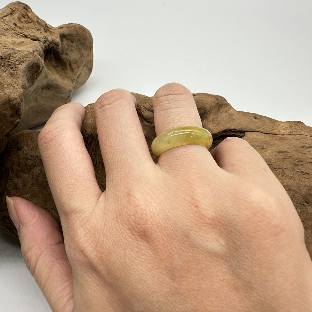 【肌容雪】天然緬甸A貨黃翡翠戒圈 編號588(戒圍16.0mm#10號)