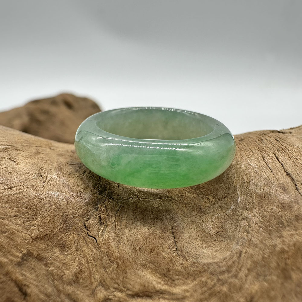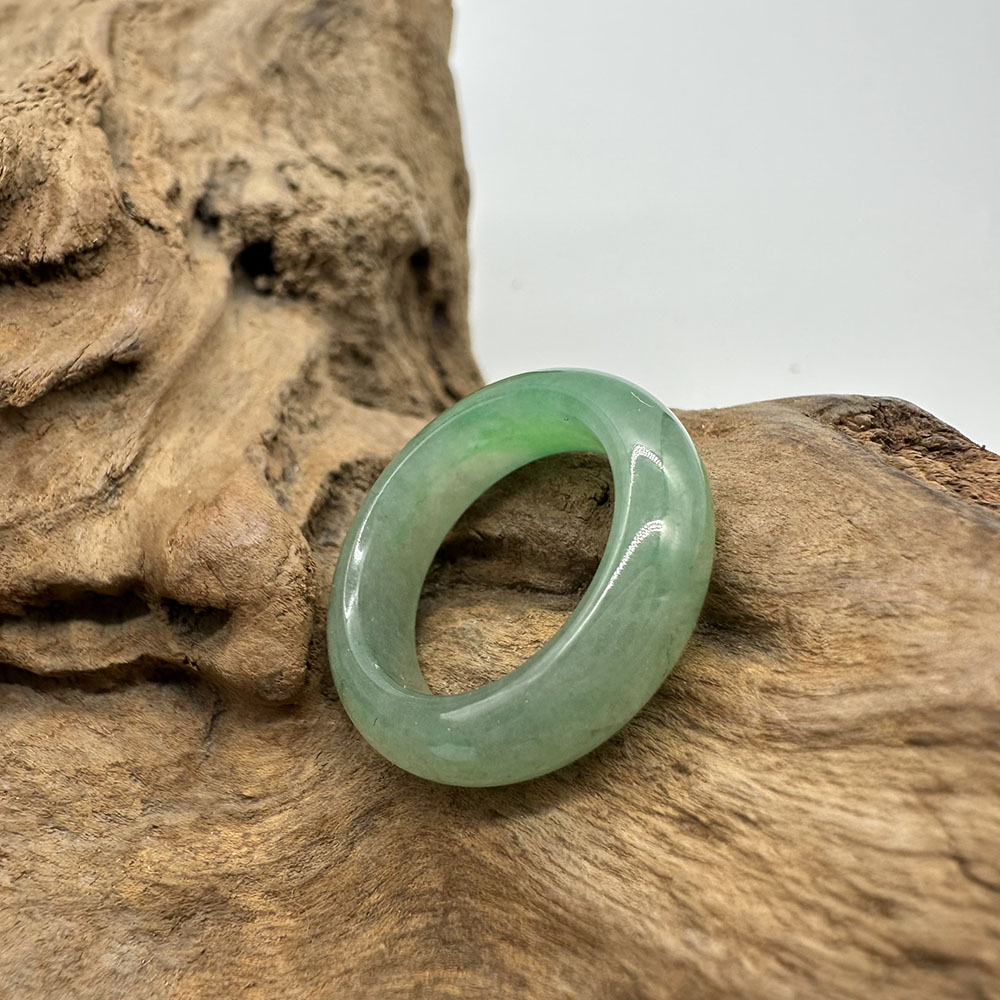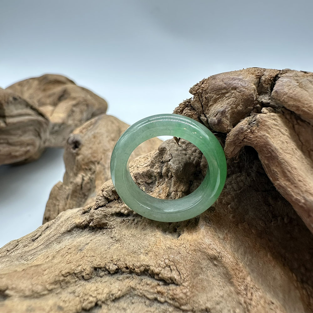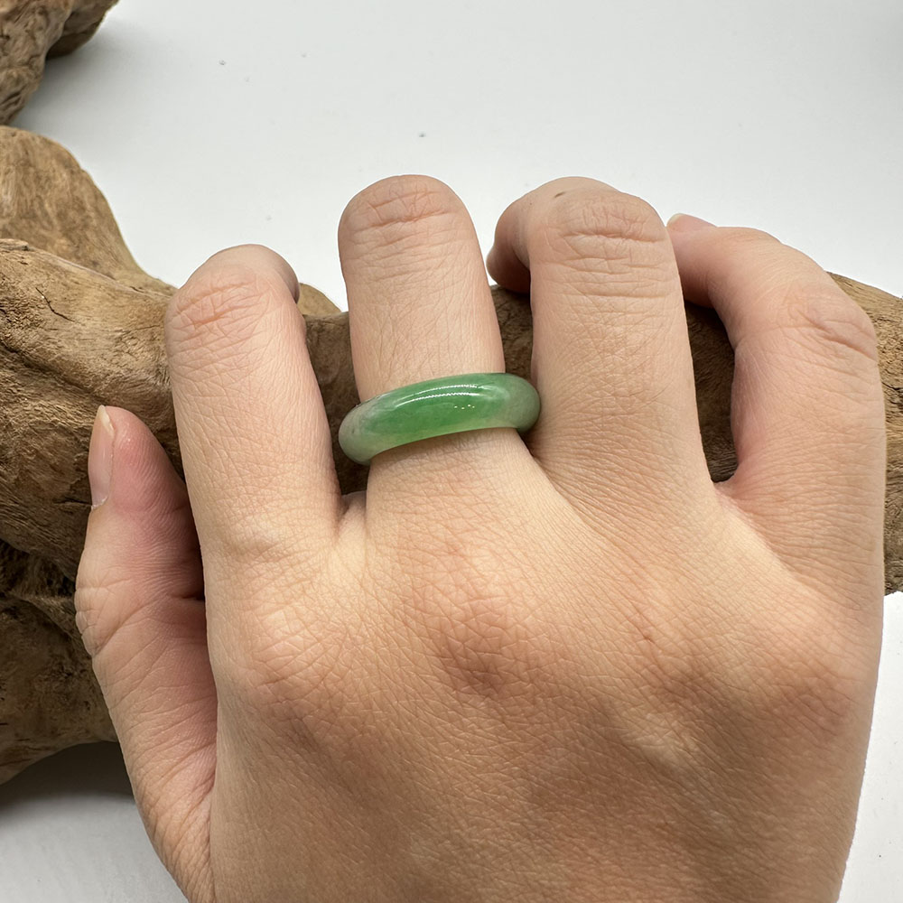 【肌容雪】天然緬甸A貨正揚綠飄花翡翠戒圈 編號419(戒圍17.2mm#10號)