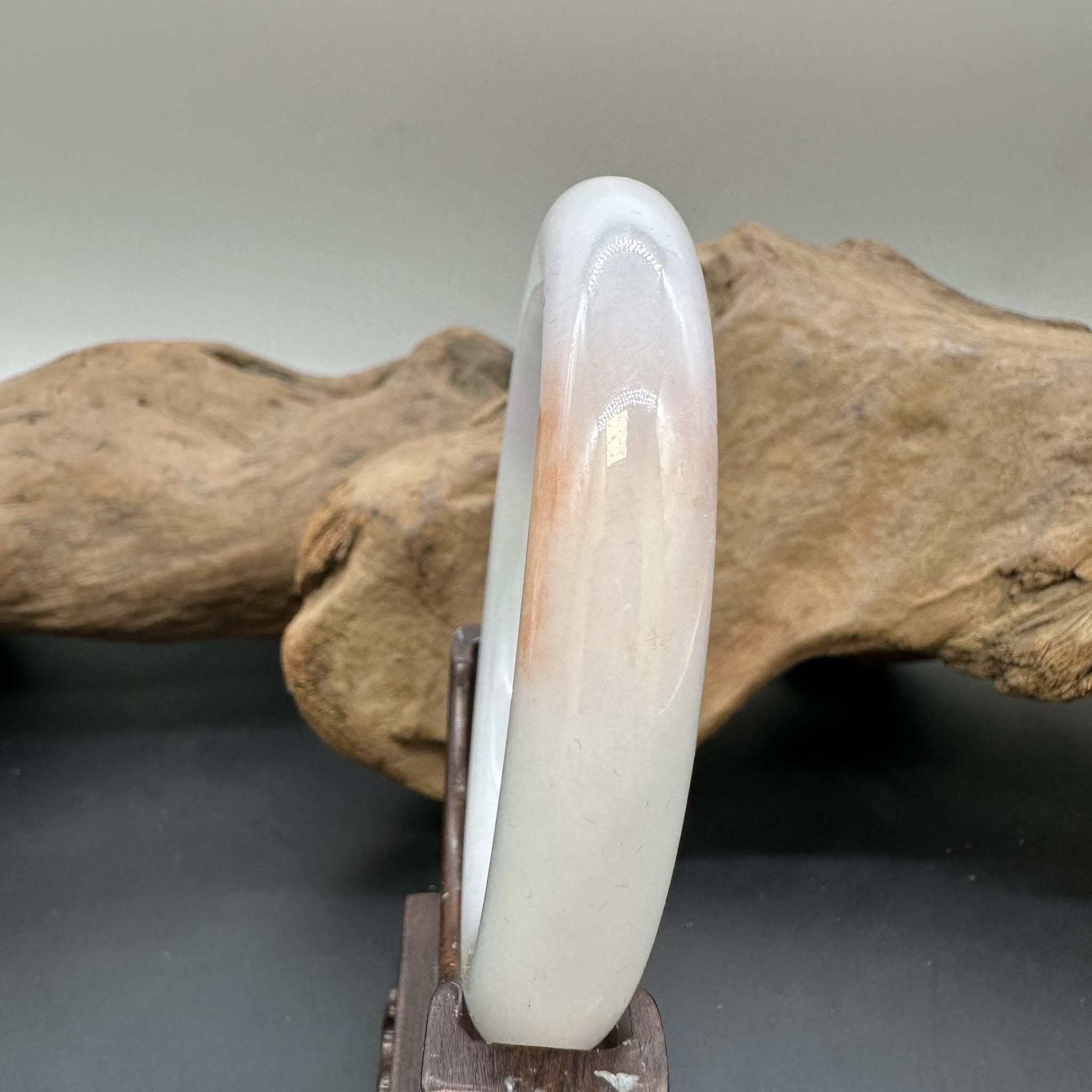 【肌容雪】天然緬甸A貨冰糯紅斑飄花翡翠圓條手鐲 編號919(鐲圍57.5mm#18號)