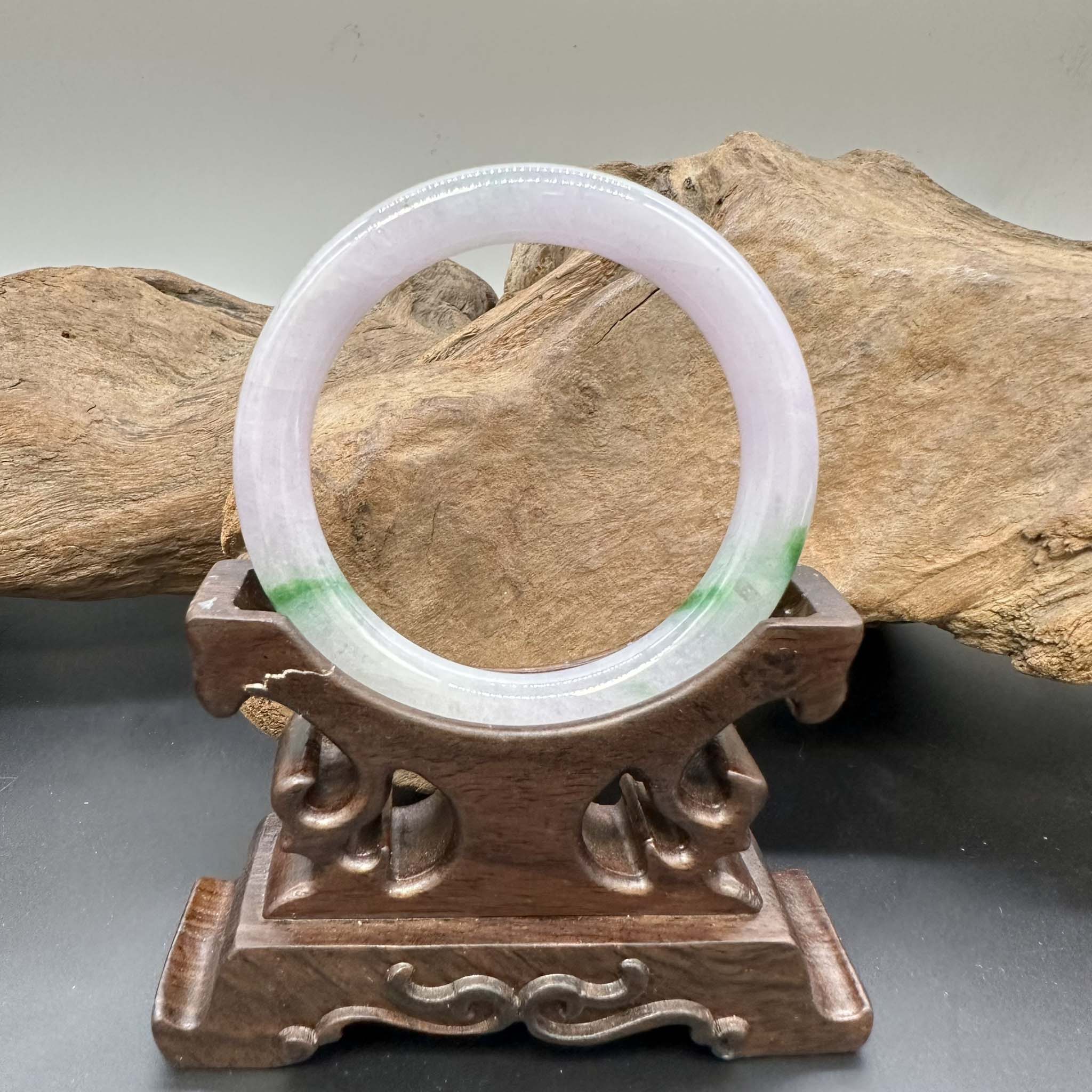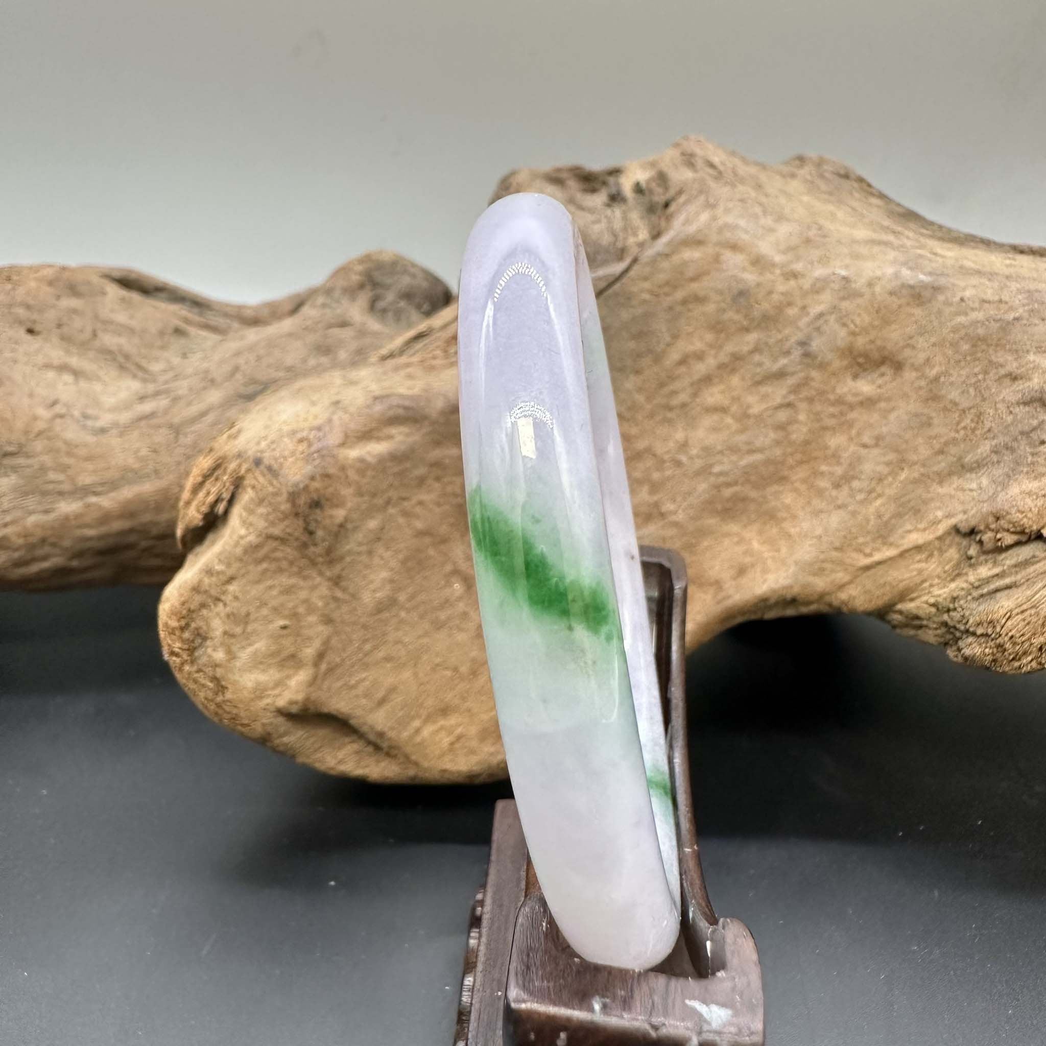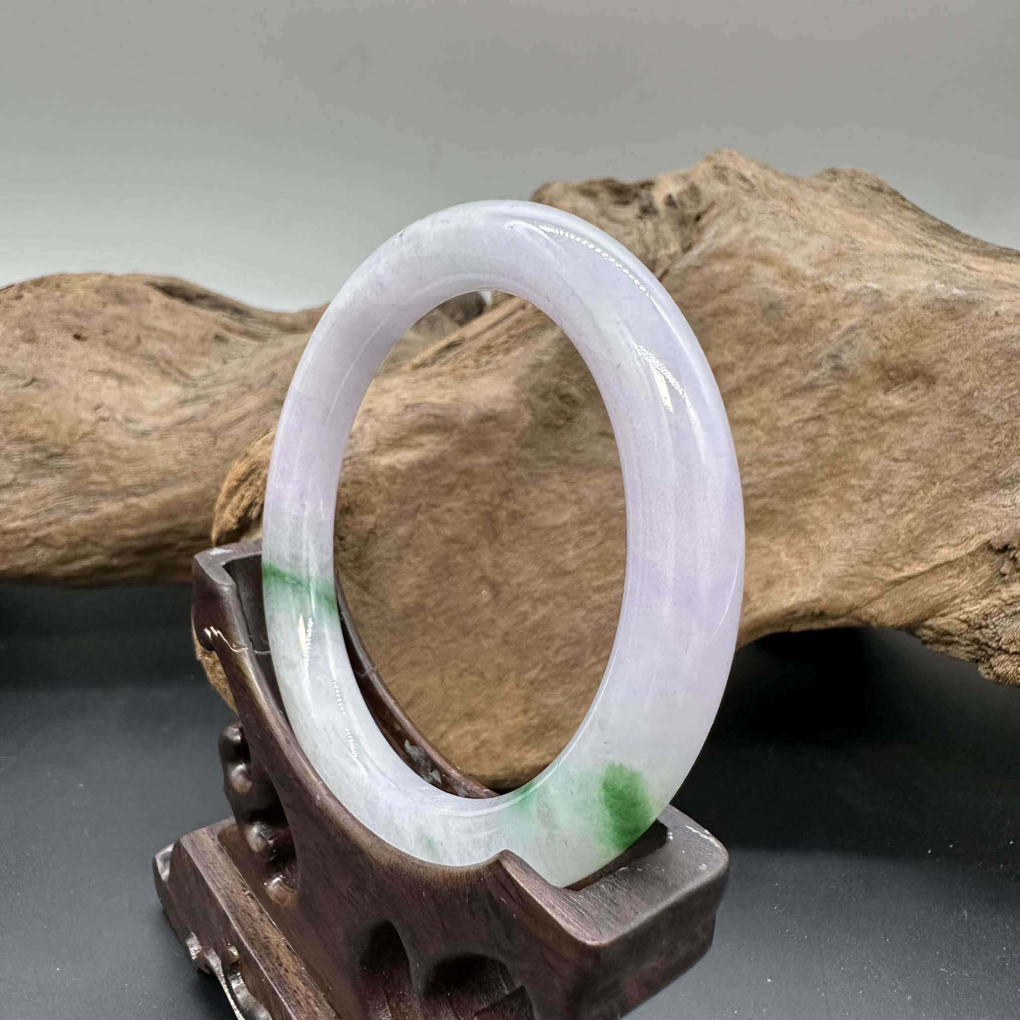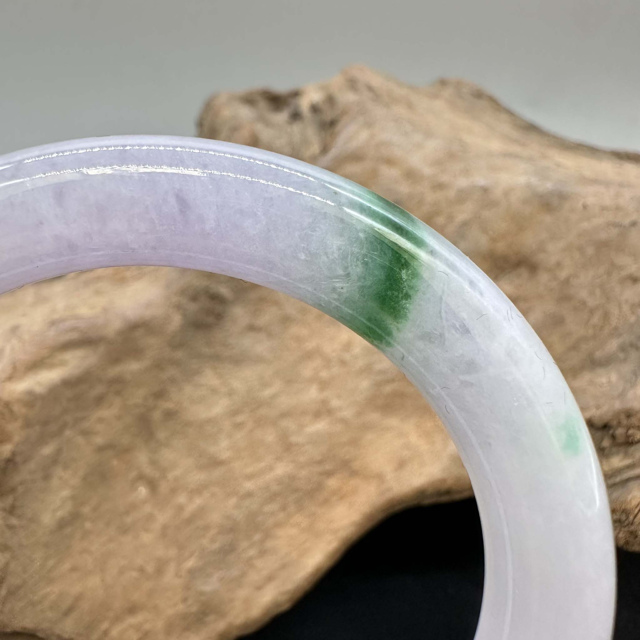 【肌容雪】天然緬甸A貨淡紫翠綠斑翡翠圓條手鐲 編號921(鐲圍55.6mm#17.5號)