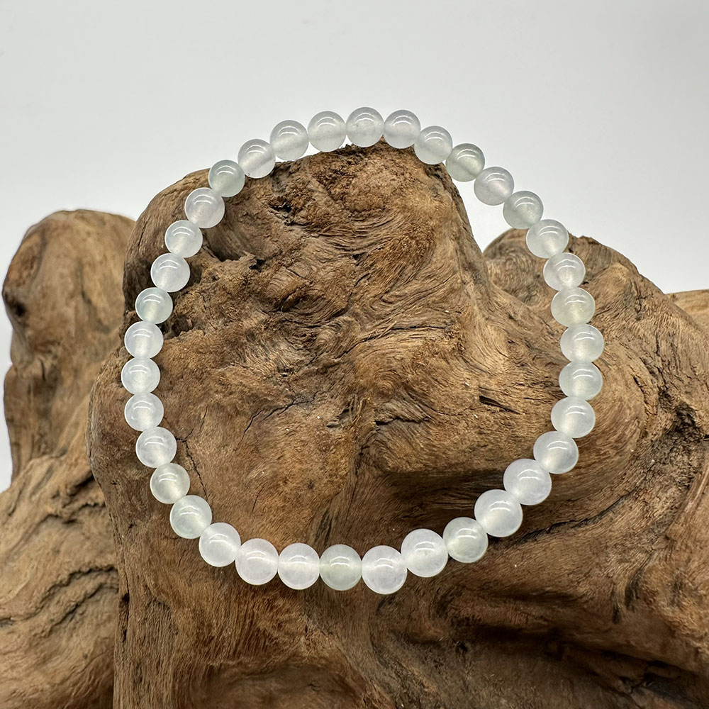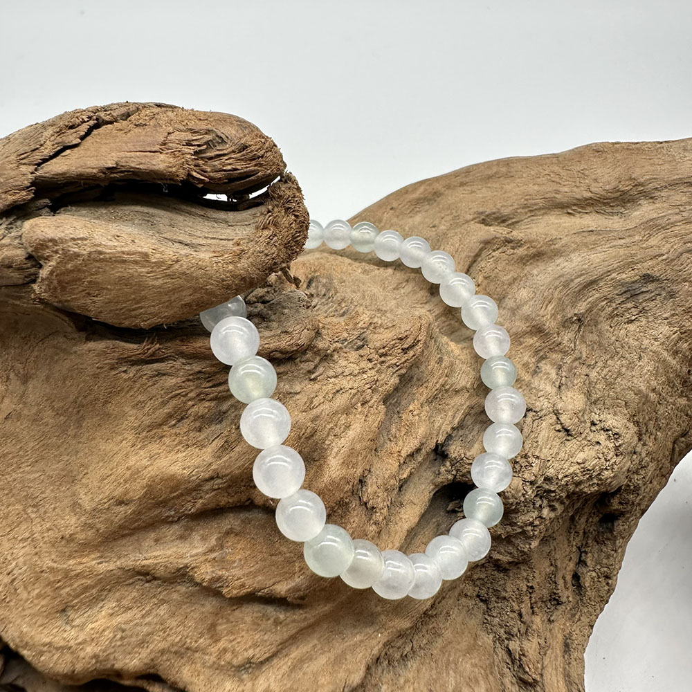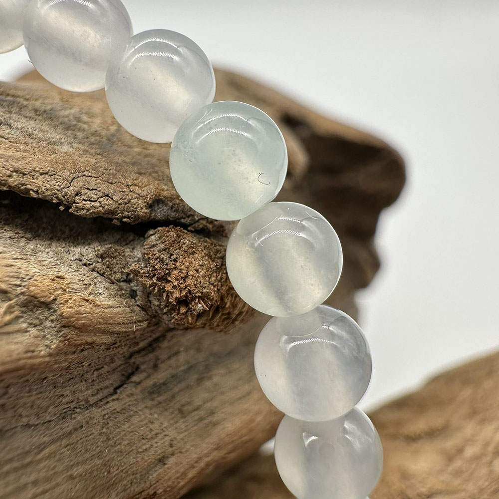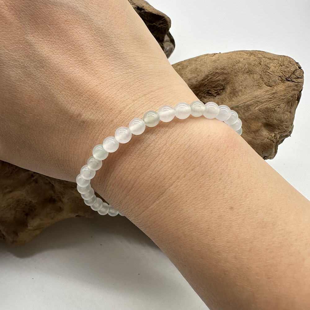 【肌容雪】天然緬甸A貨白月光淡綠翡翠圓珠單圈手串 編號425