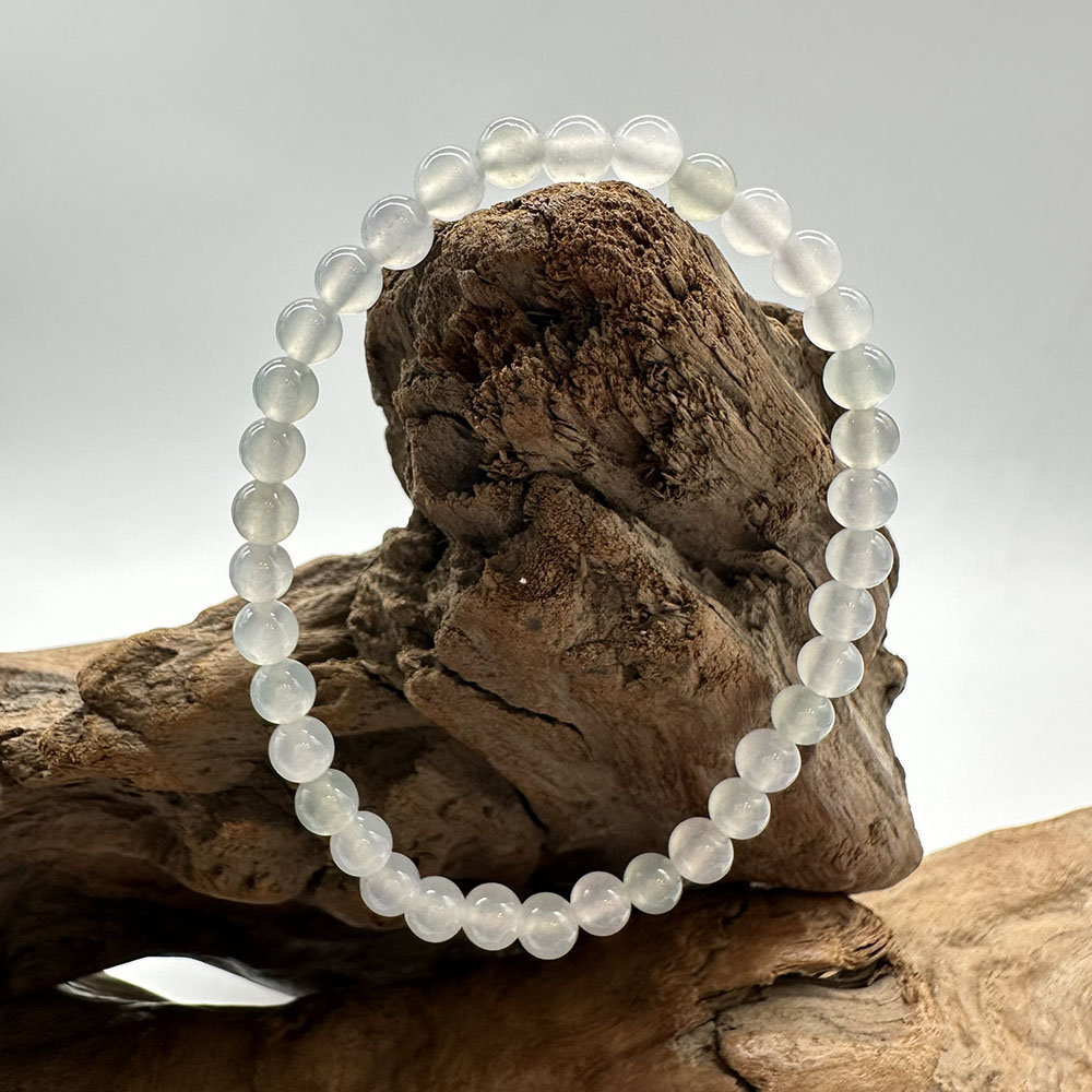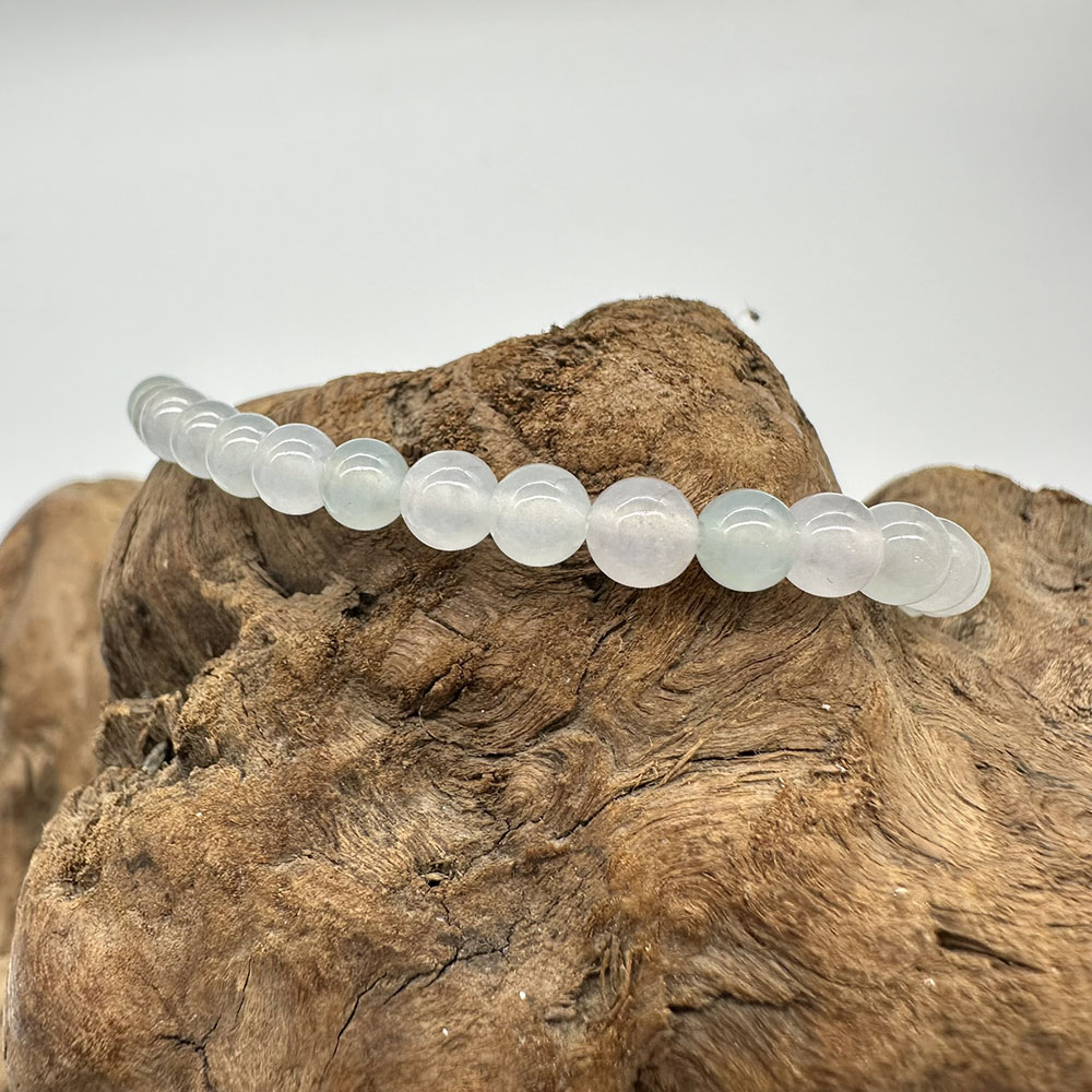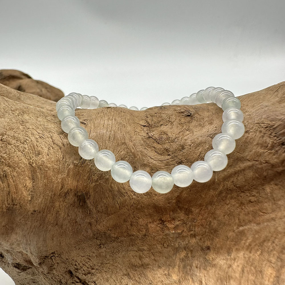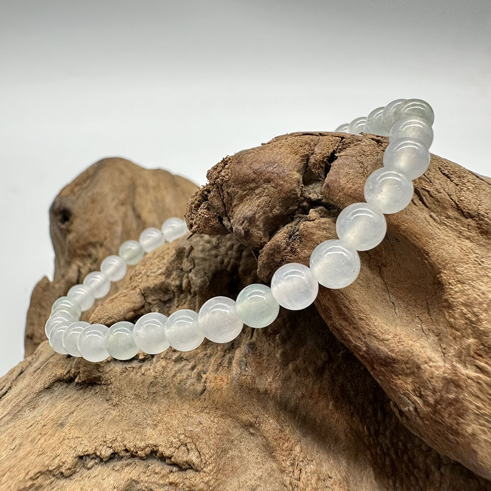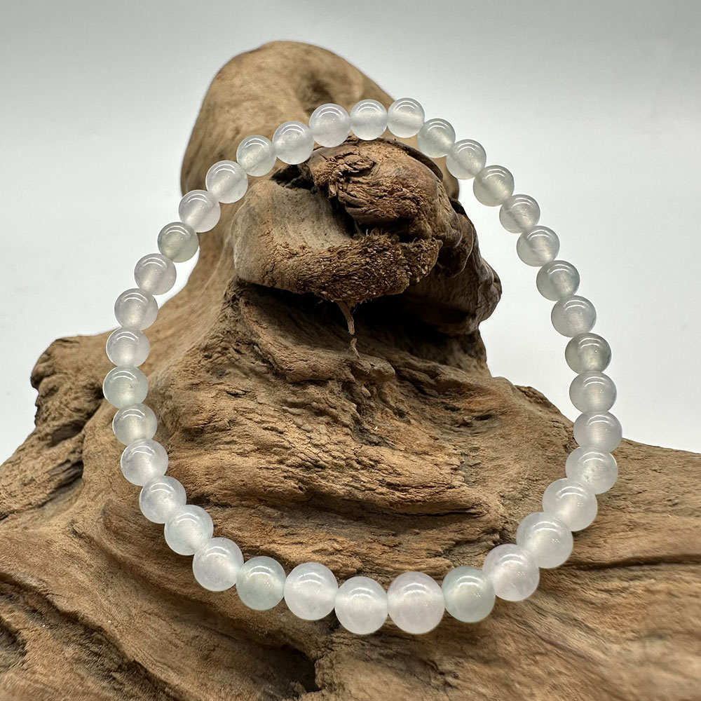 【肌容雪】天然緬甸A貨白月光淡綠翡翠圓珠單圈手串 編號425