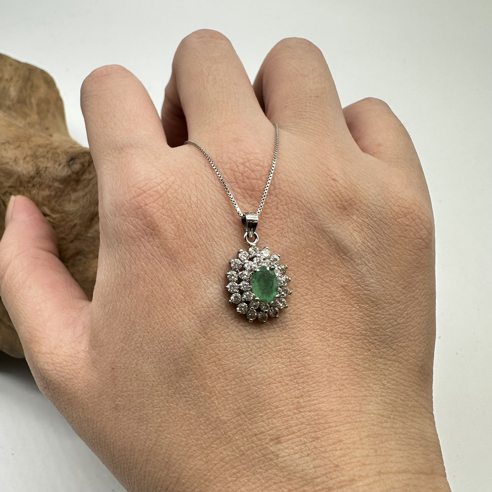 【肌容雪】天然緬甸A貨鑲鑽綠翡翠吊墜 編號323