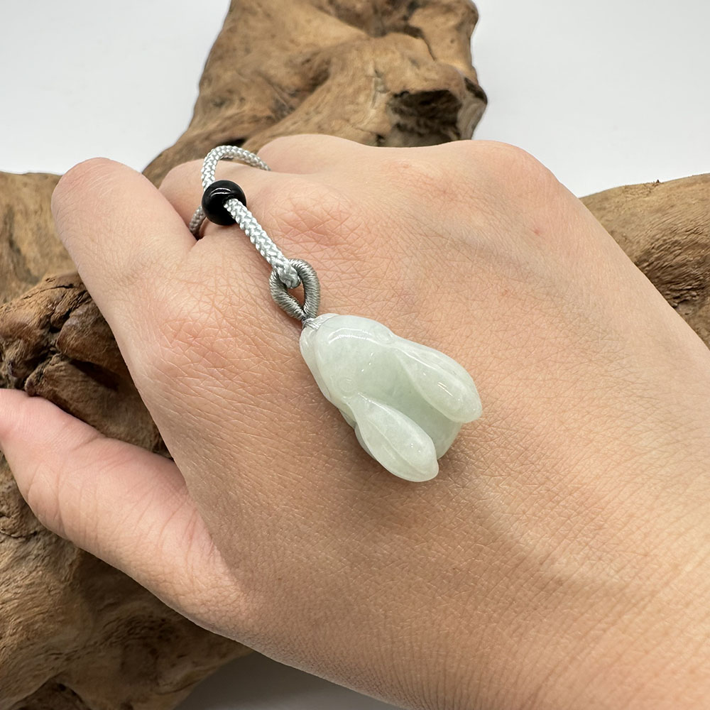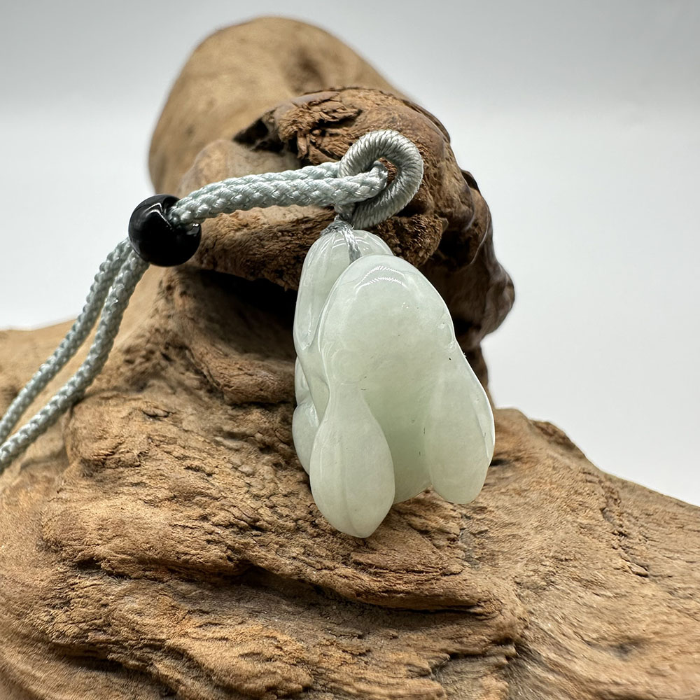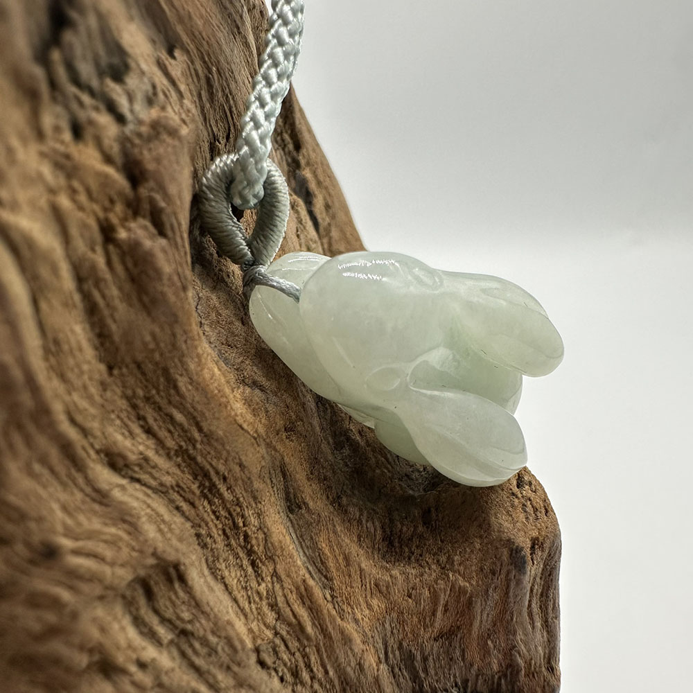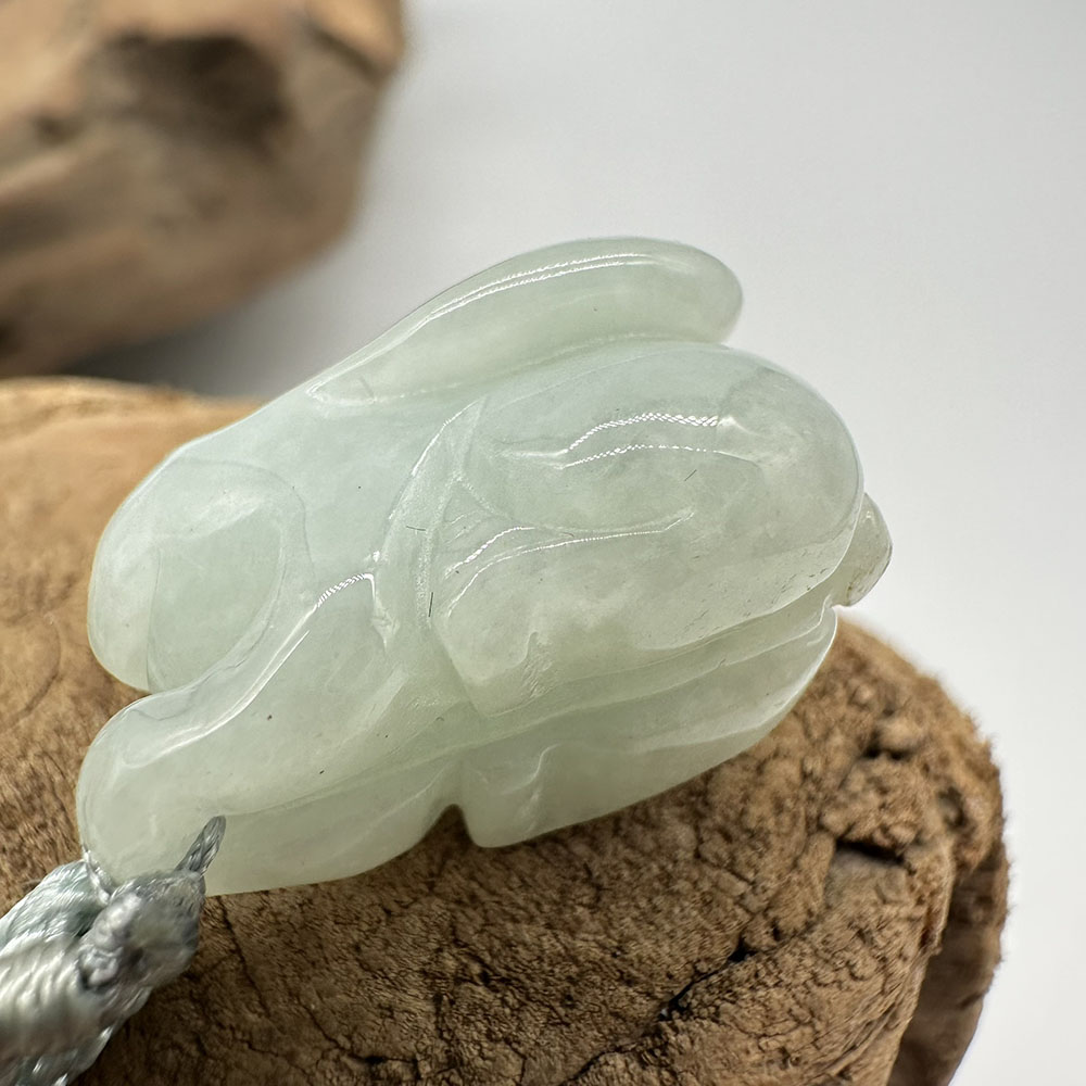 【肌容雪】天然緬甸A貨翡翠糯冰玉兔造型吊墜繩 編號333