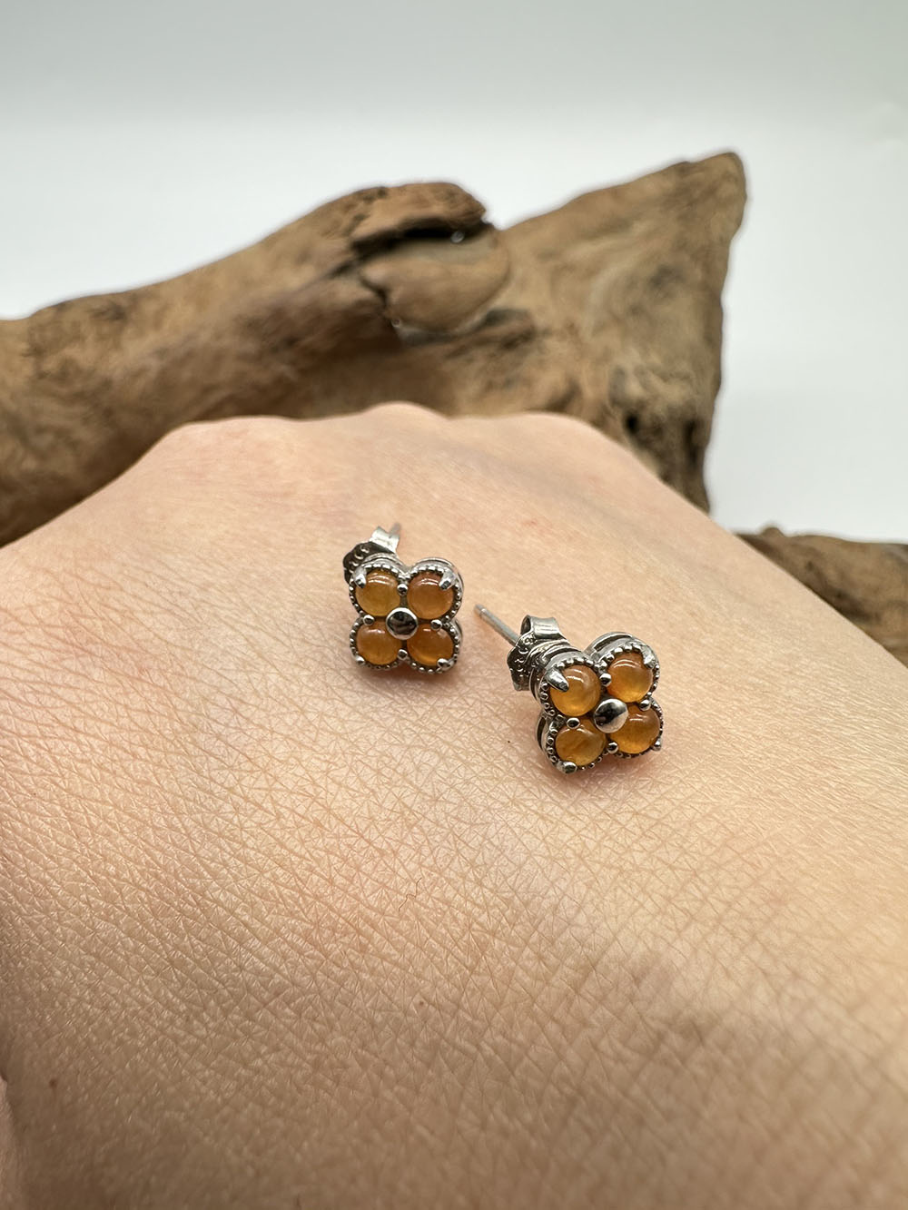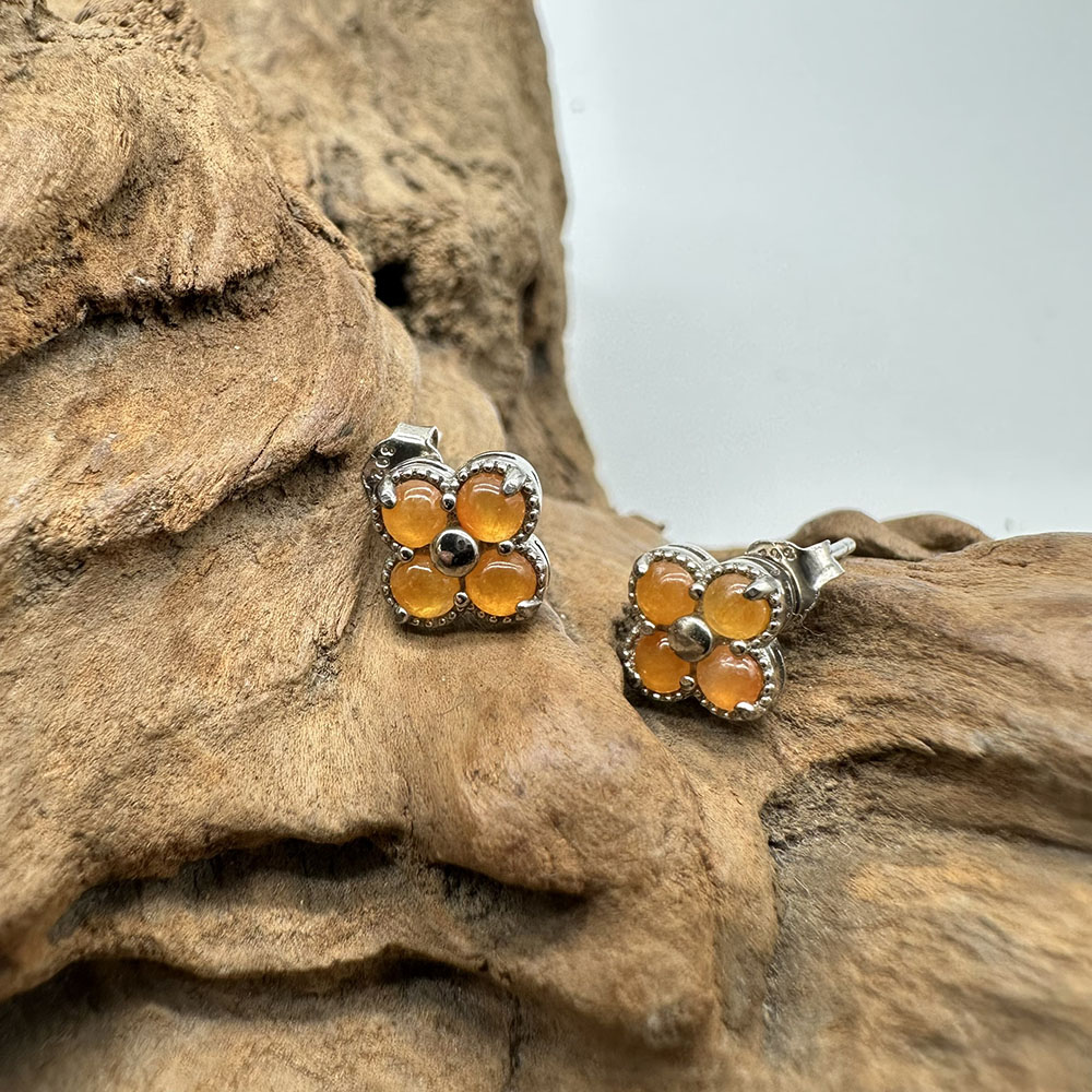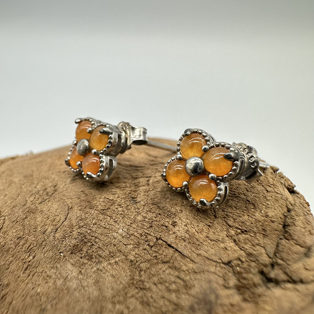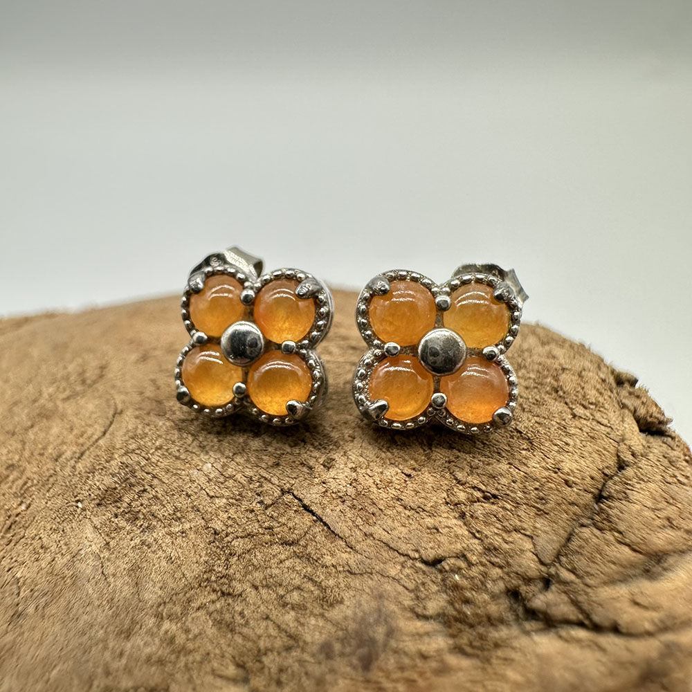 【肌容雪】天然緬甸A貨紅翡四葉草造型耳針 編號334