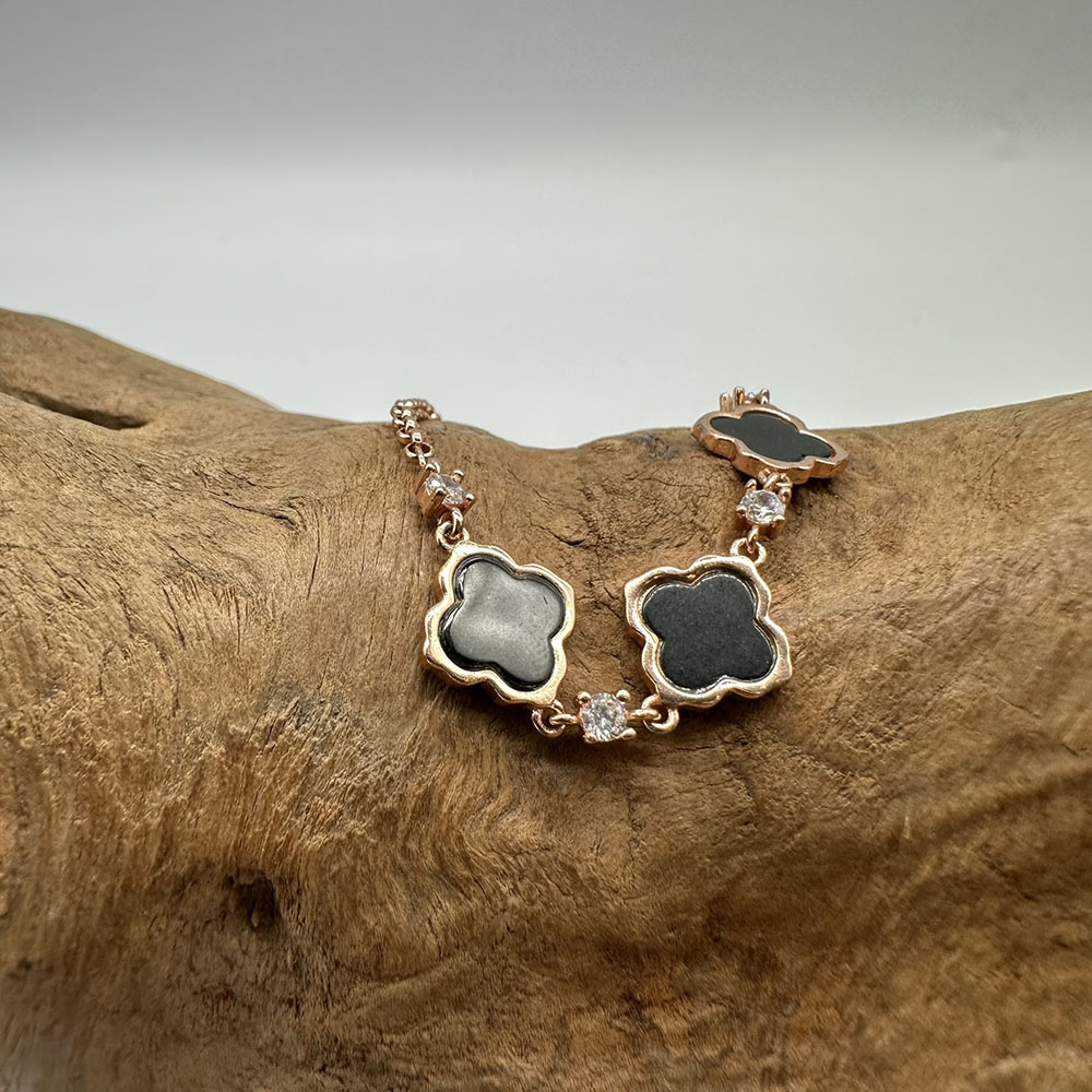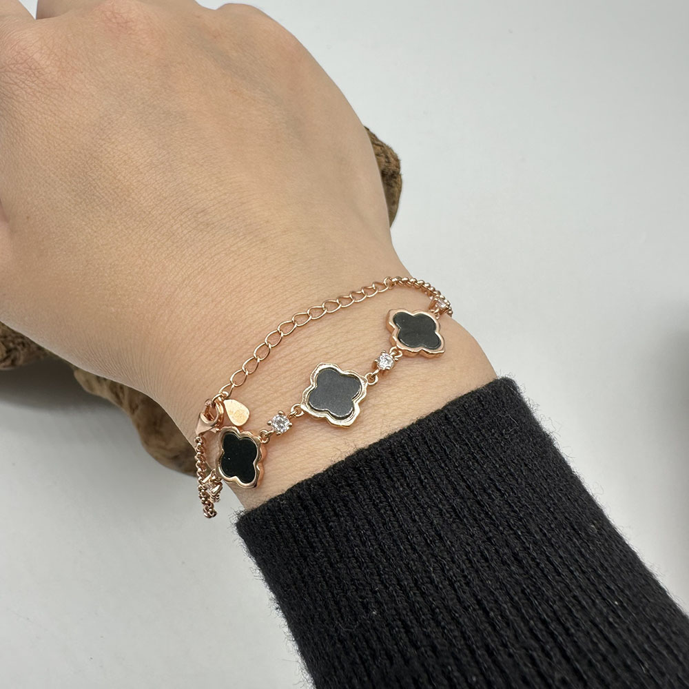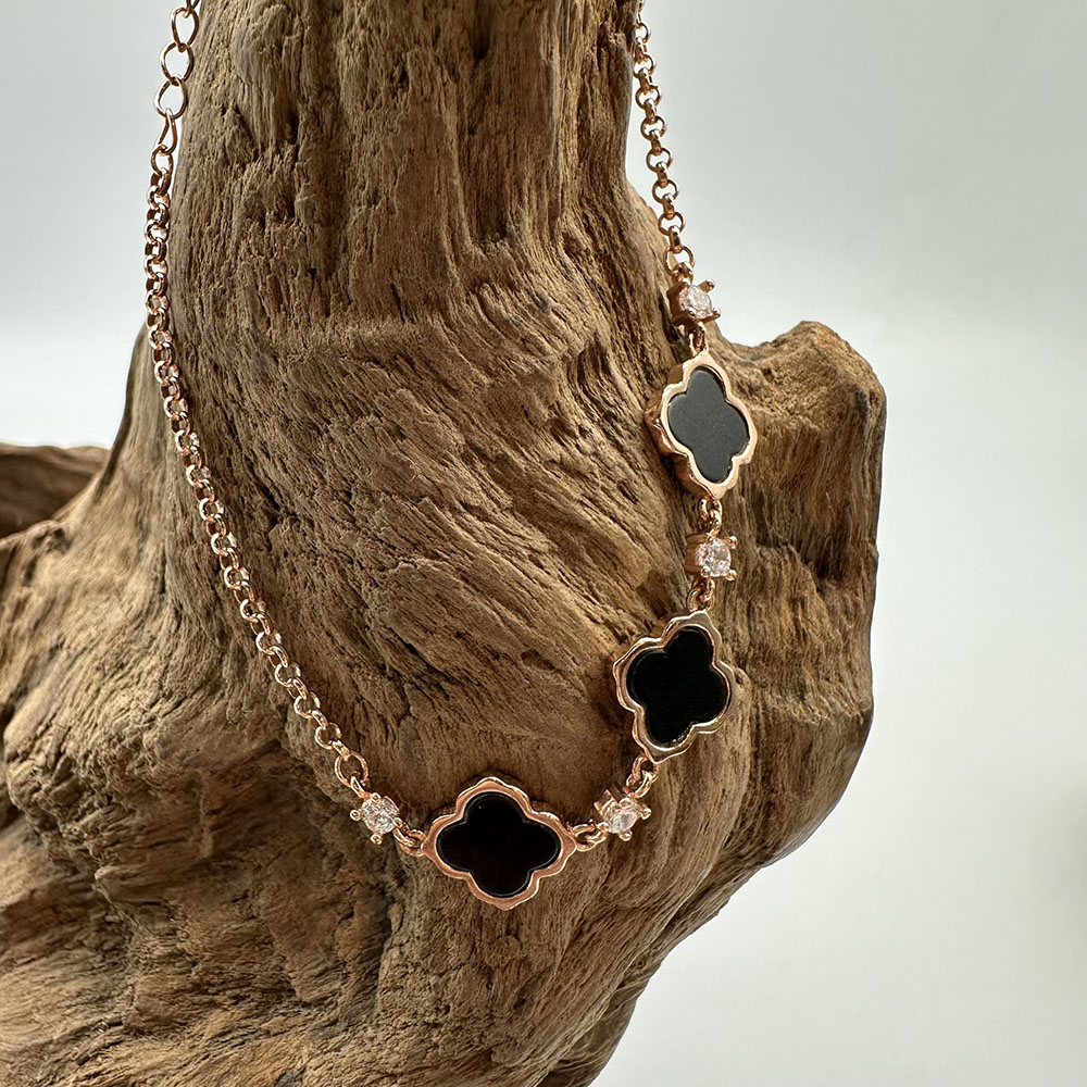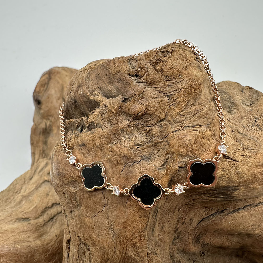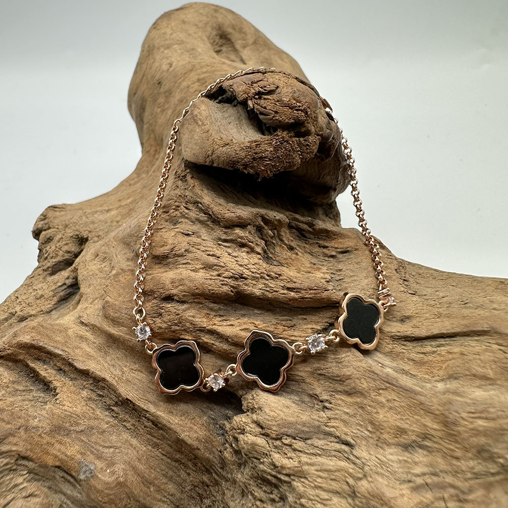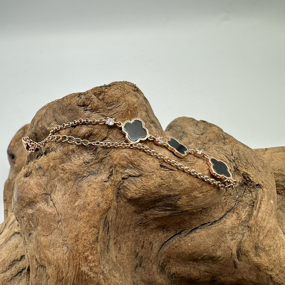 【肌容雪】天然緬甸A貨翡翠墨綠四葉草手鍊 編號455