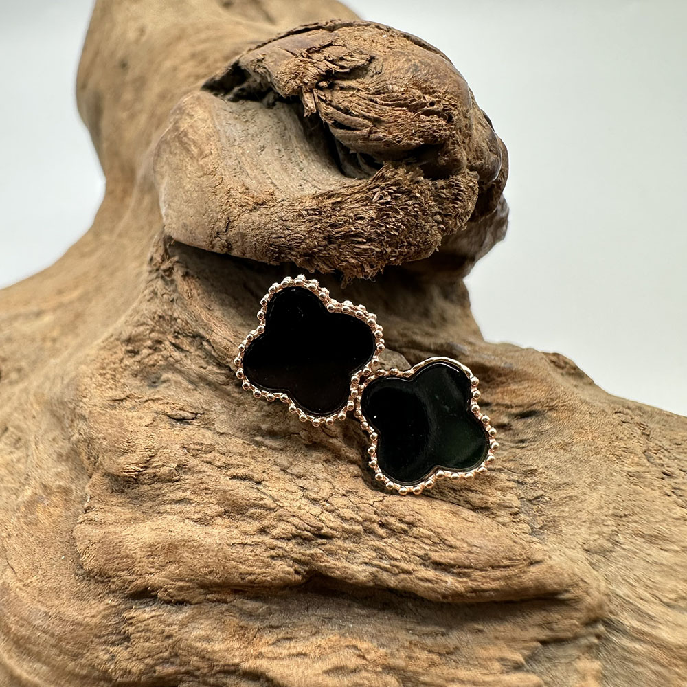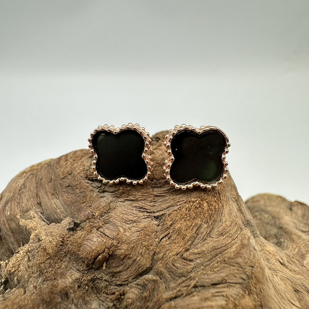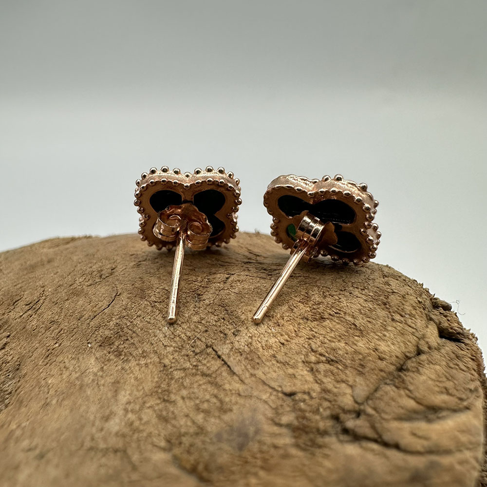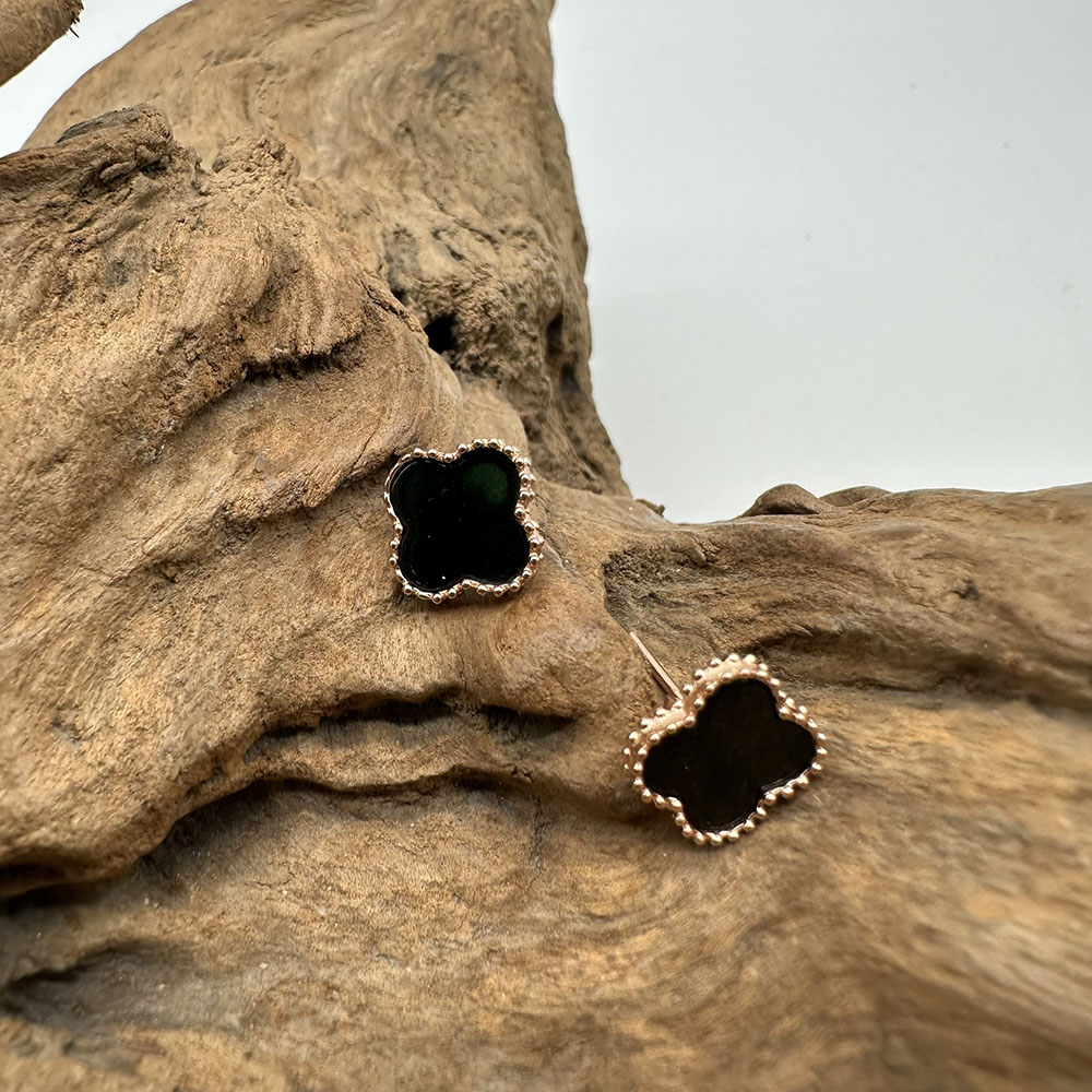 【肌容雪】天然緬甸A貨翡翠墨綠四葉草造型耳針 編號506