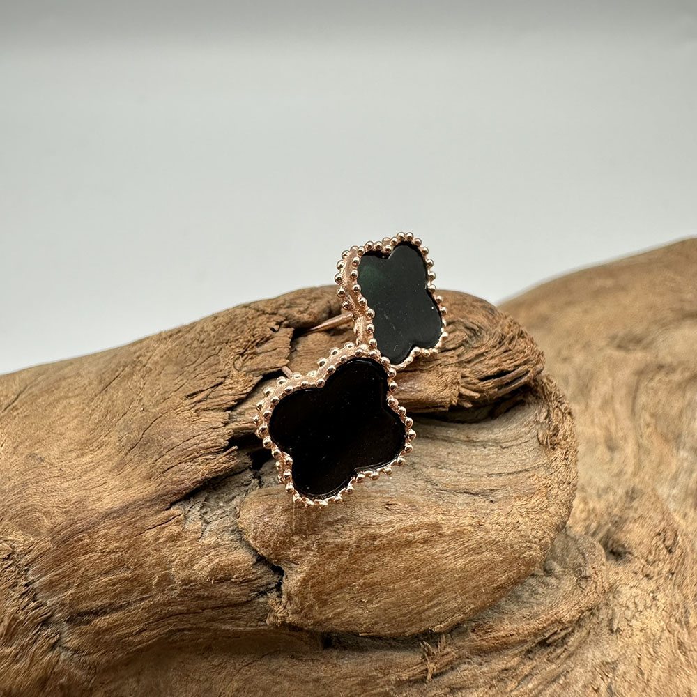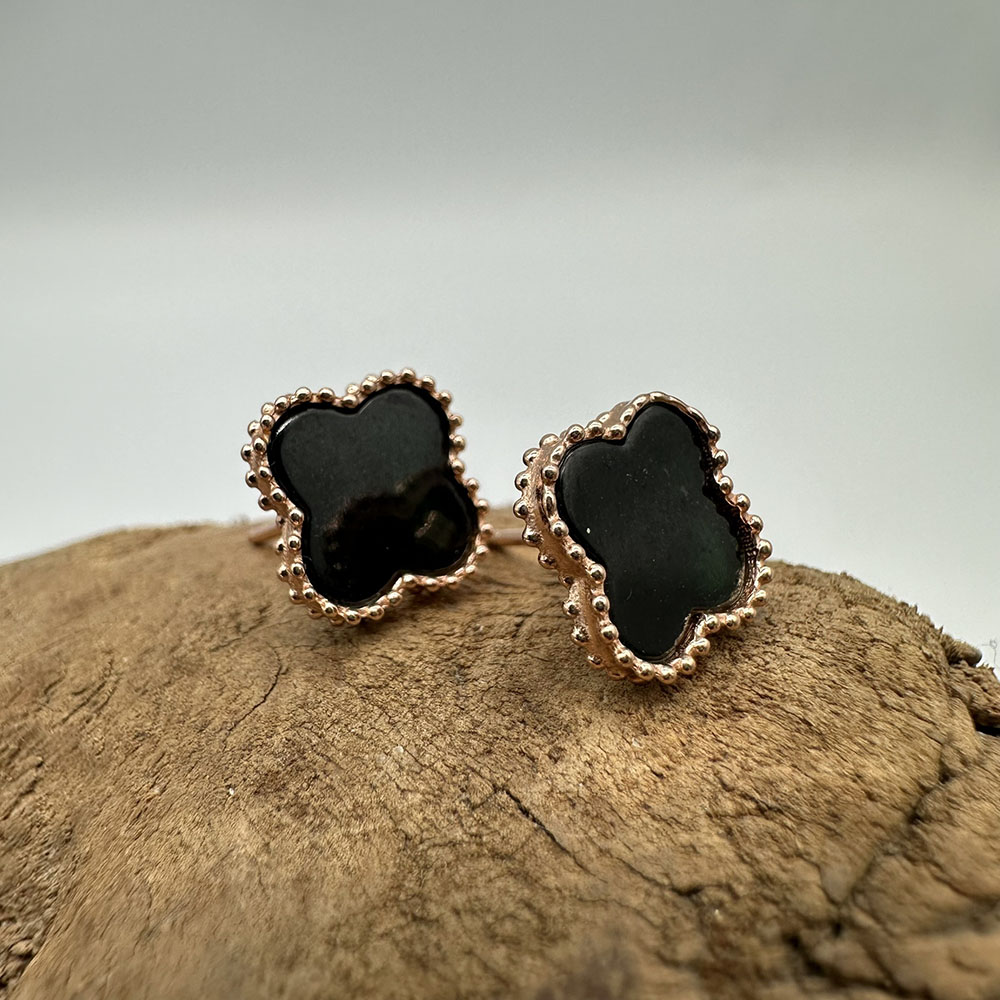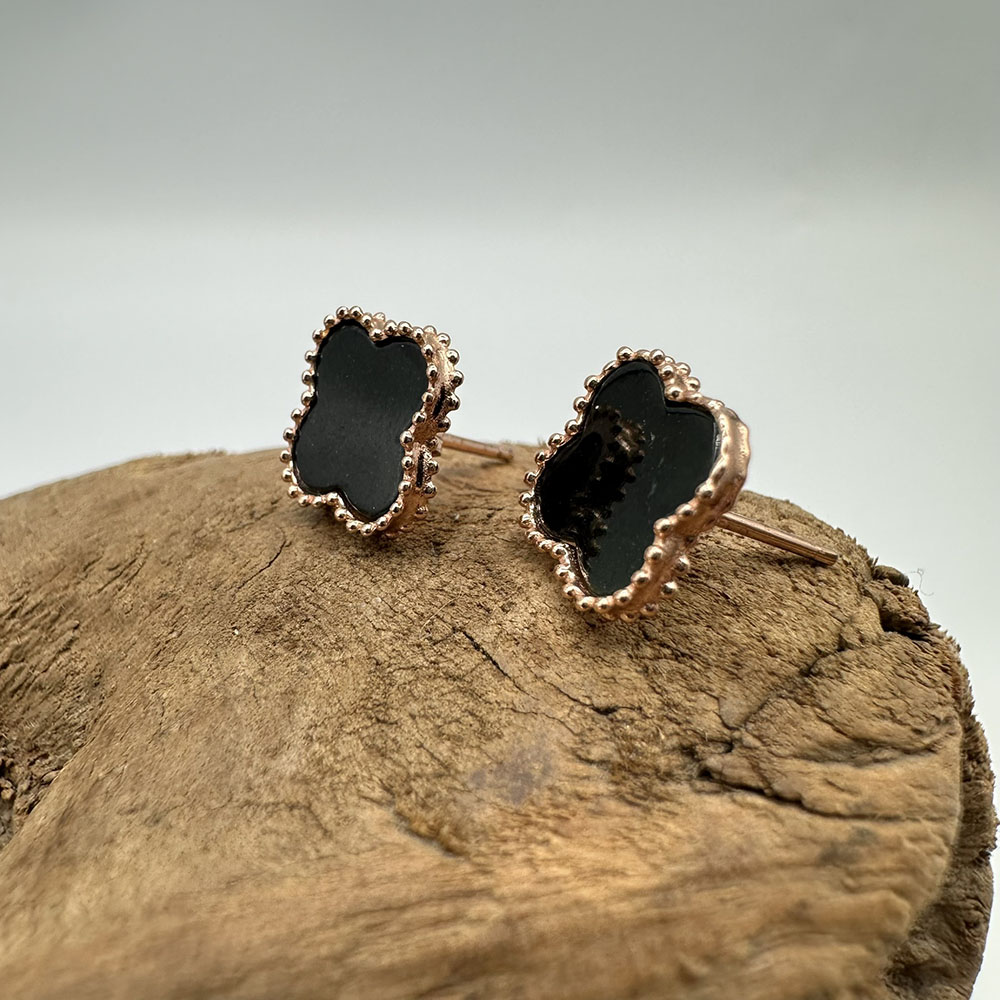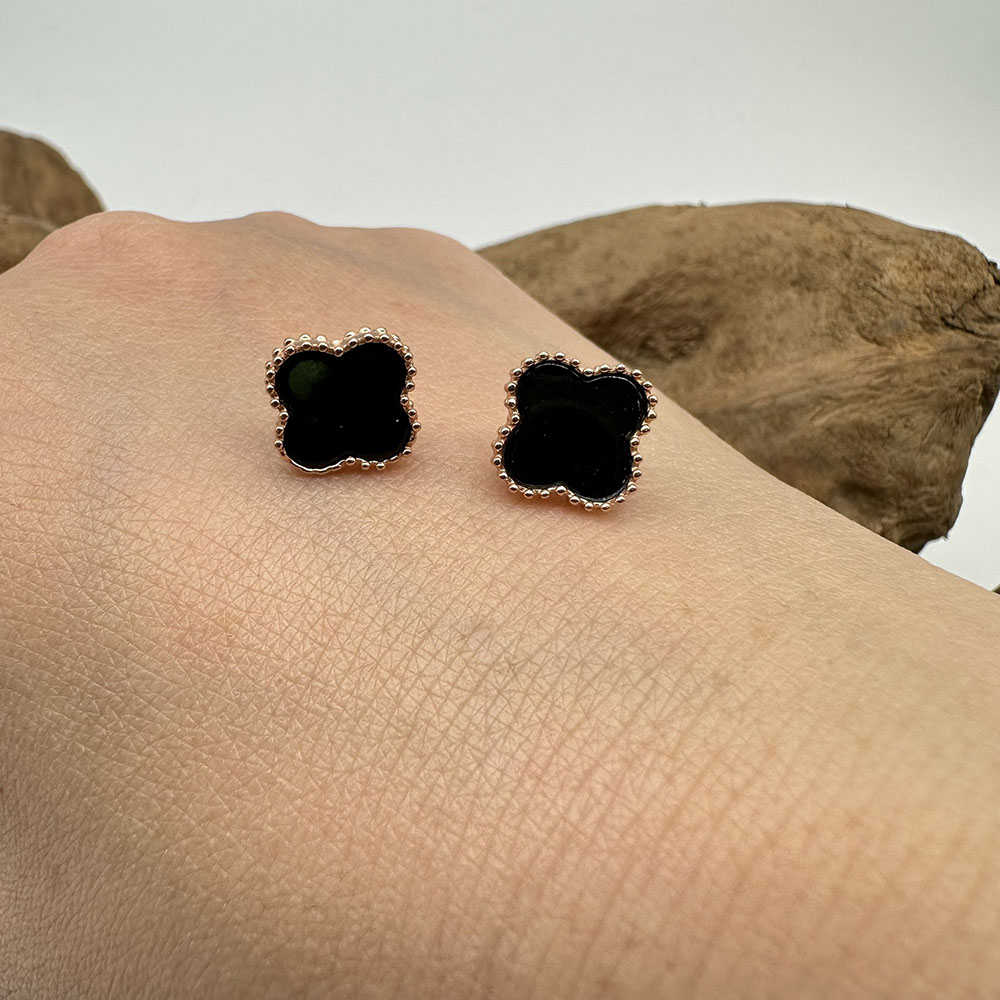 【肌容雪】天然緬甸A貨翡翠墨綠四葉草造型耳針 編號506