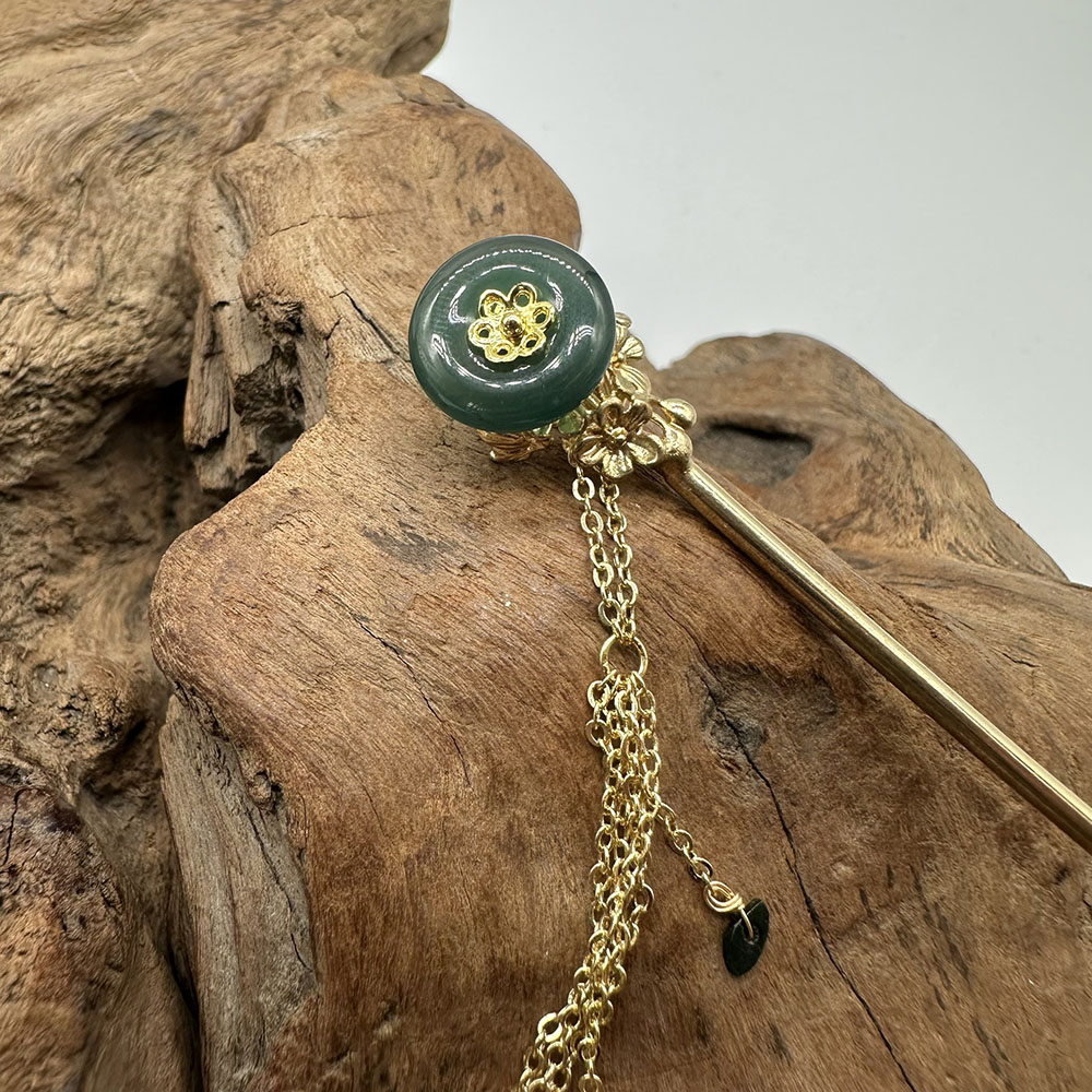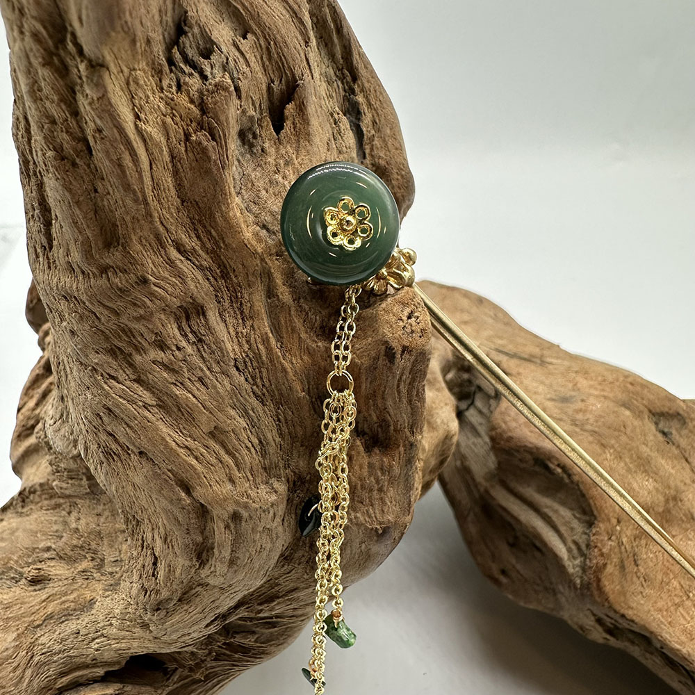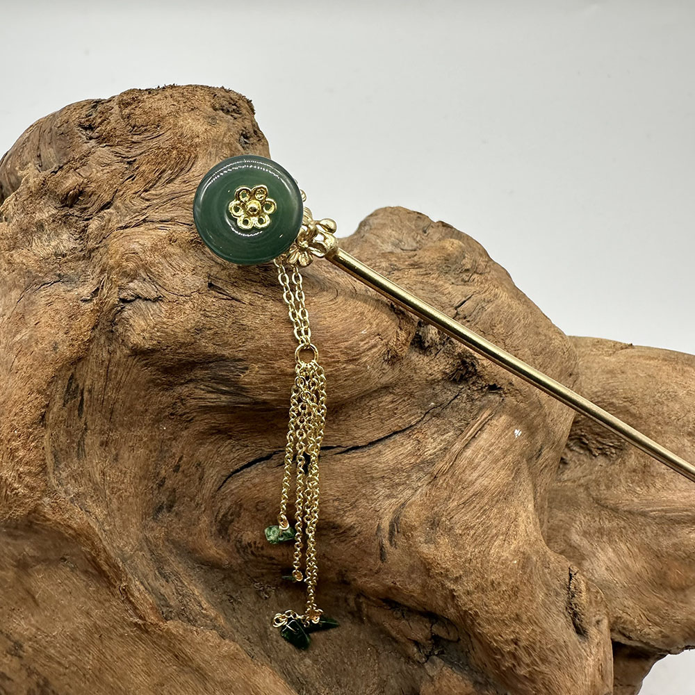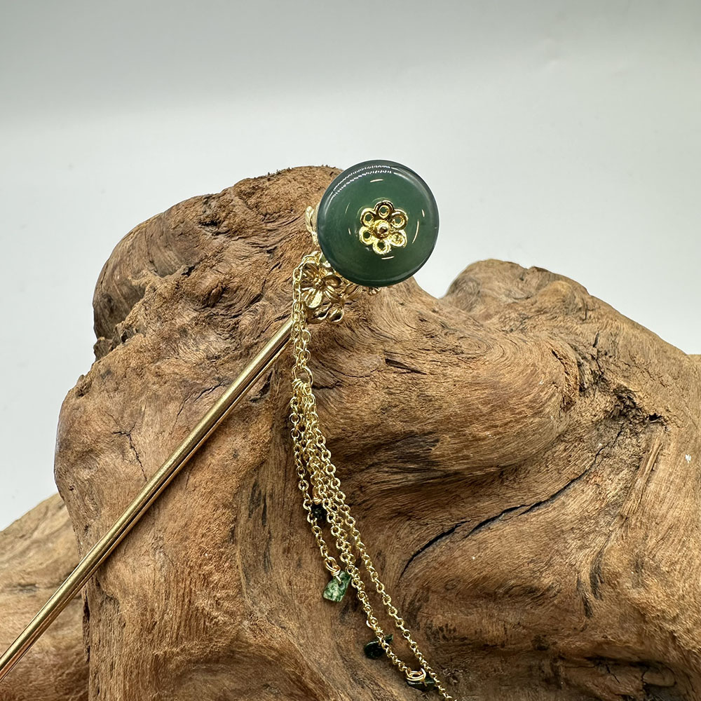 【肌容雪】天然緬甸A貨翡翠綠玉圓牌梅花流蘇髮簪 編號566