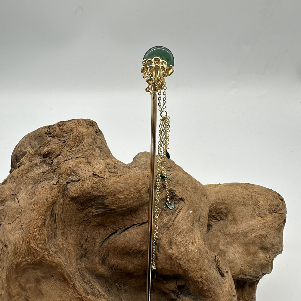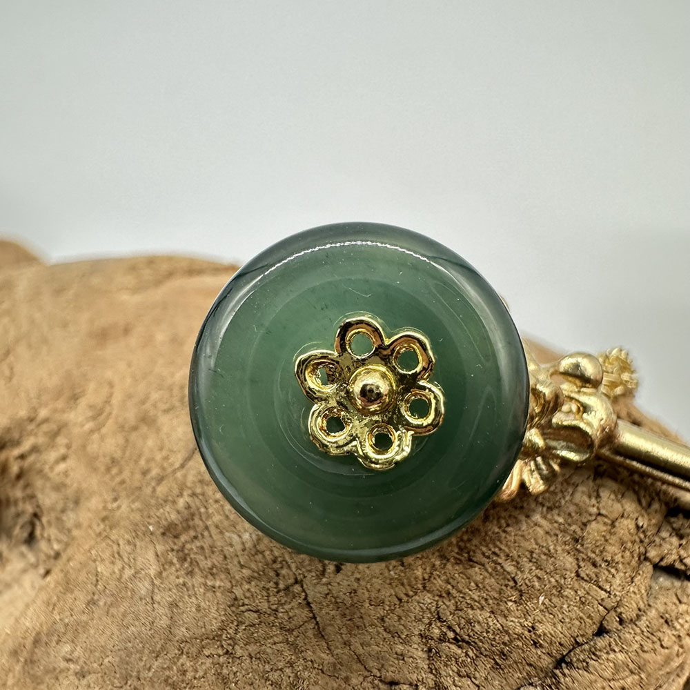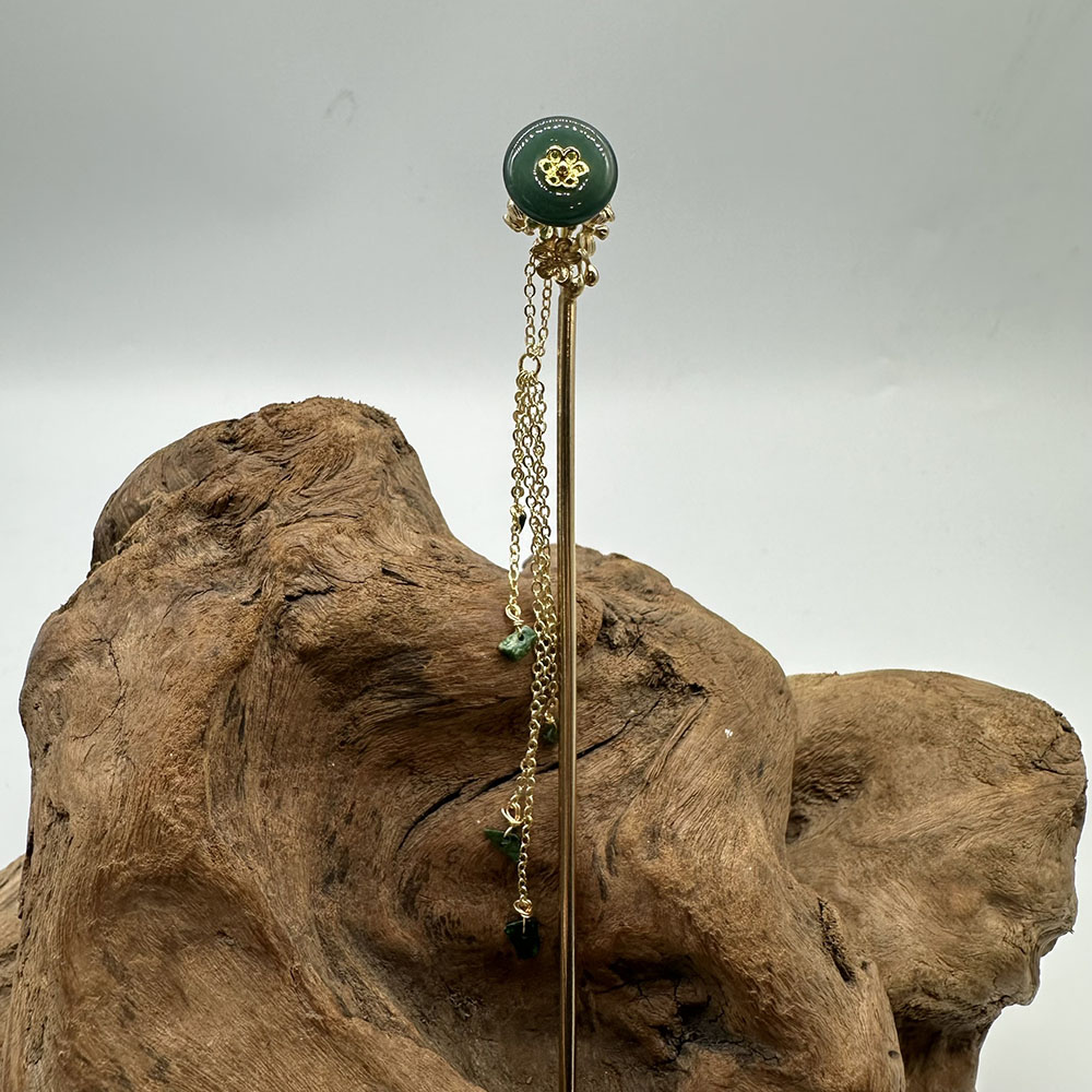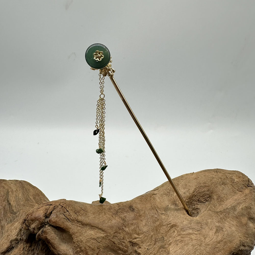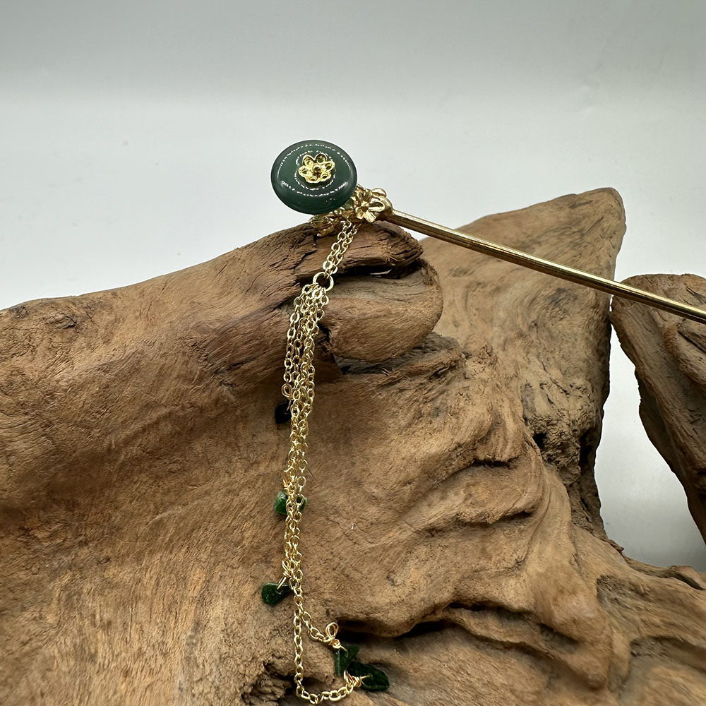 【肌容雪】天然緬甸A貨翡翠綠玉圓牌梅花流蘇髮簪 編號566