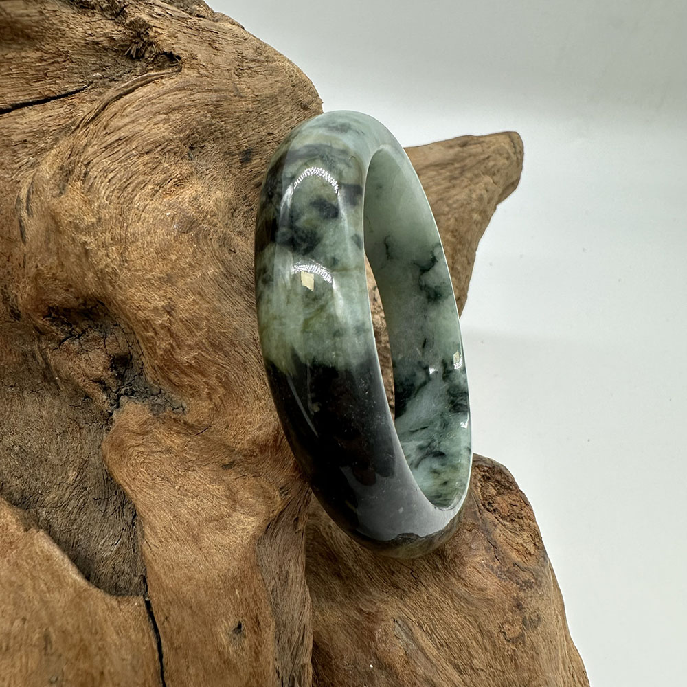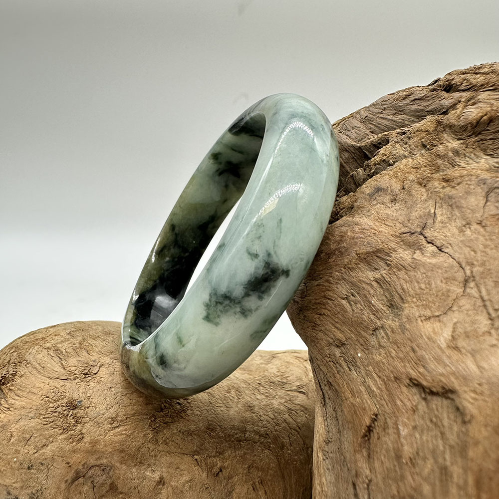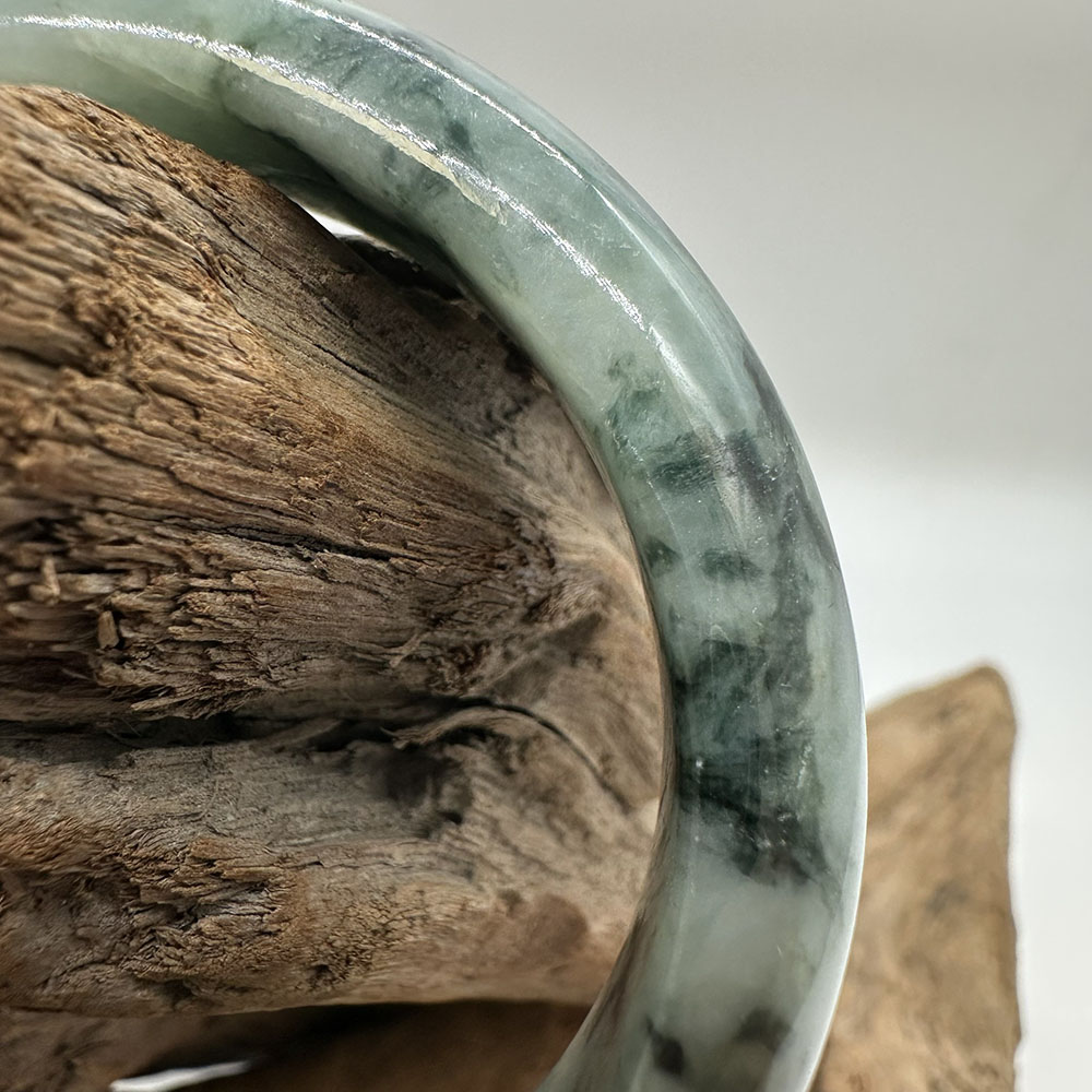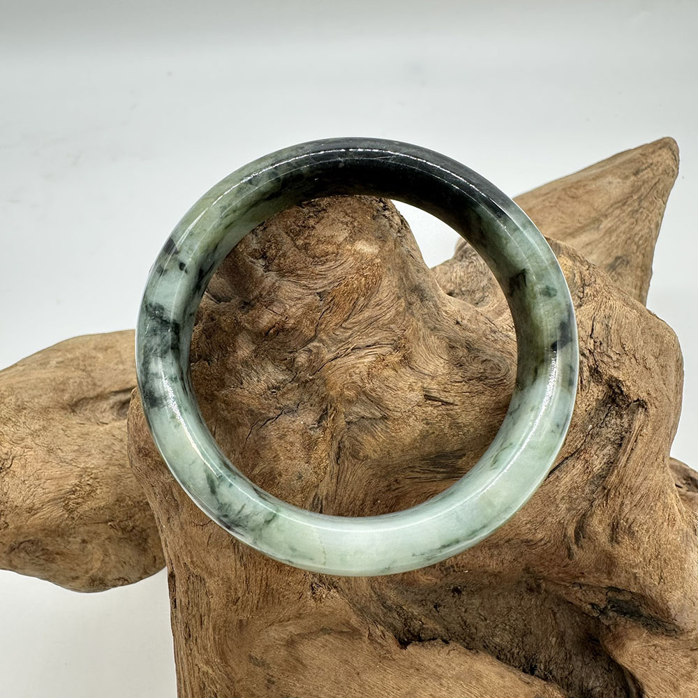 【肌容雪】天然緬甸A貨綠飄花翡翠平安鐲 編號75(鐲圍54.7mm#17號)
