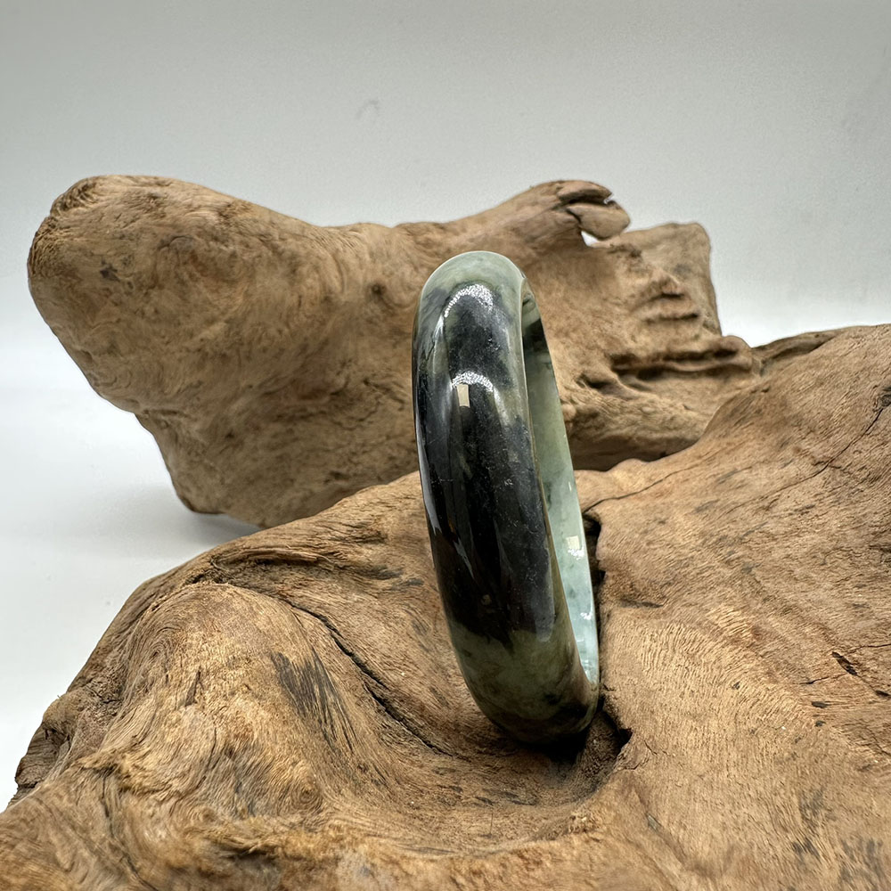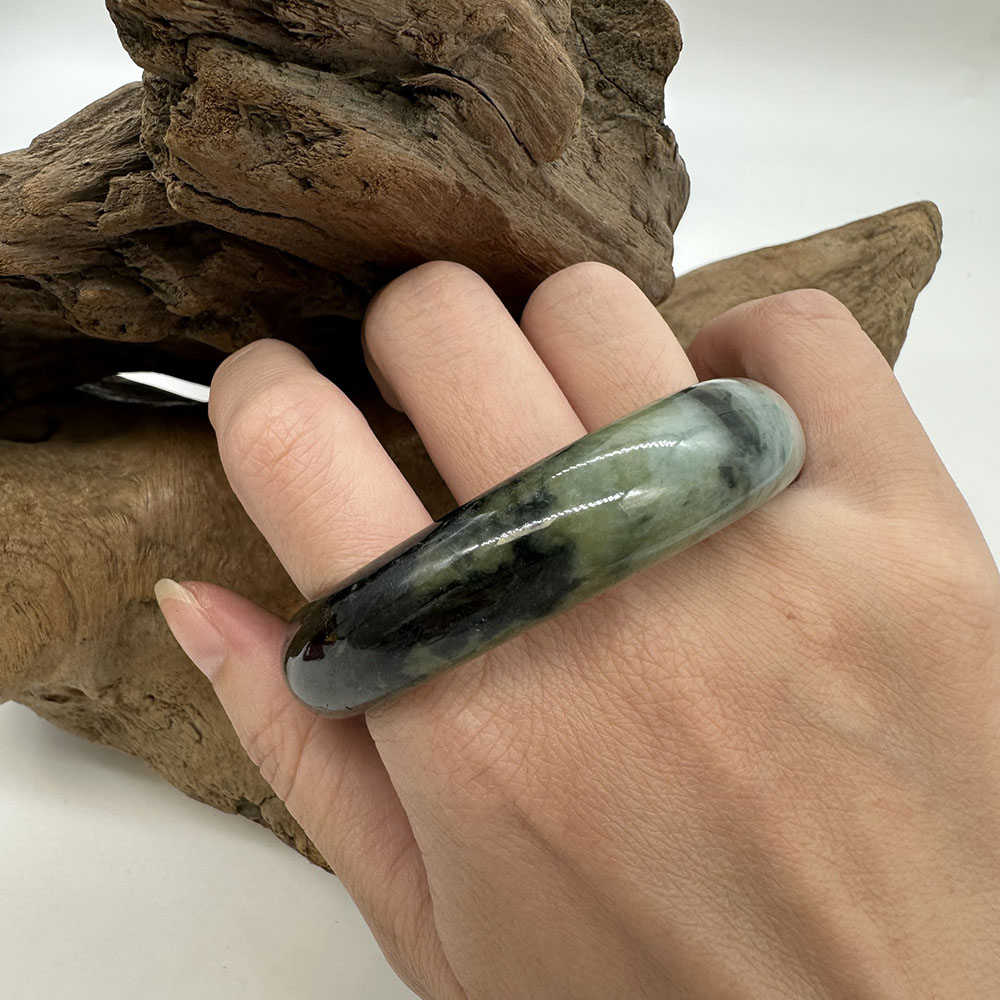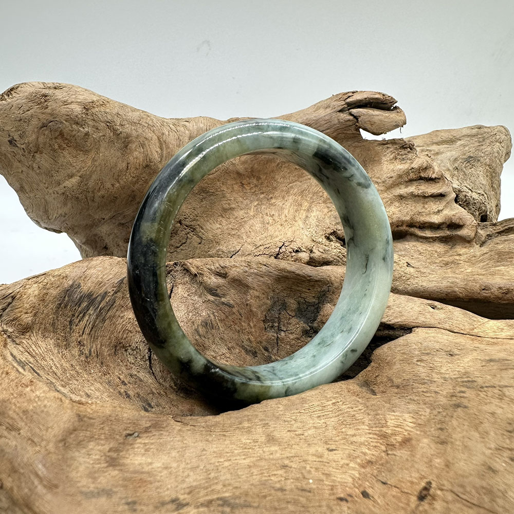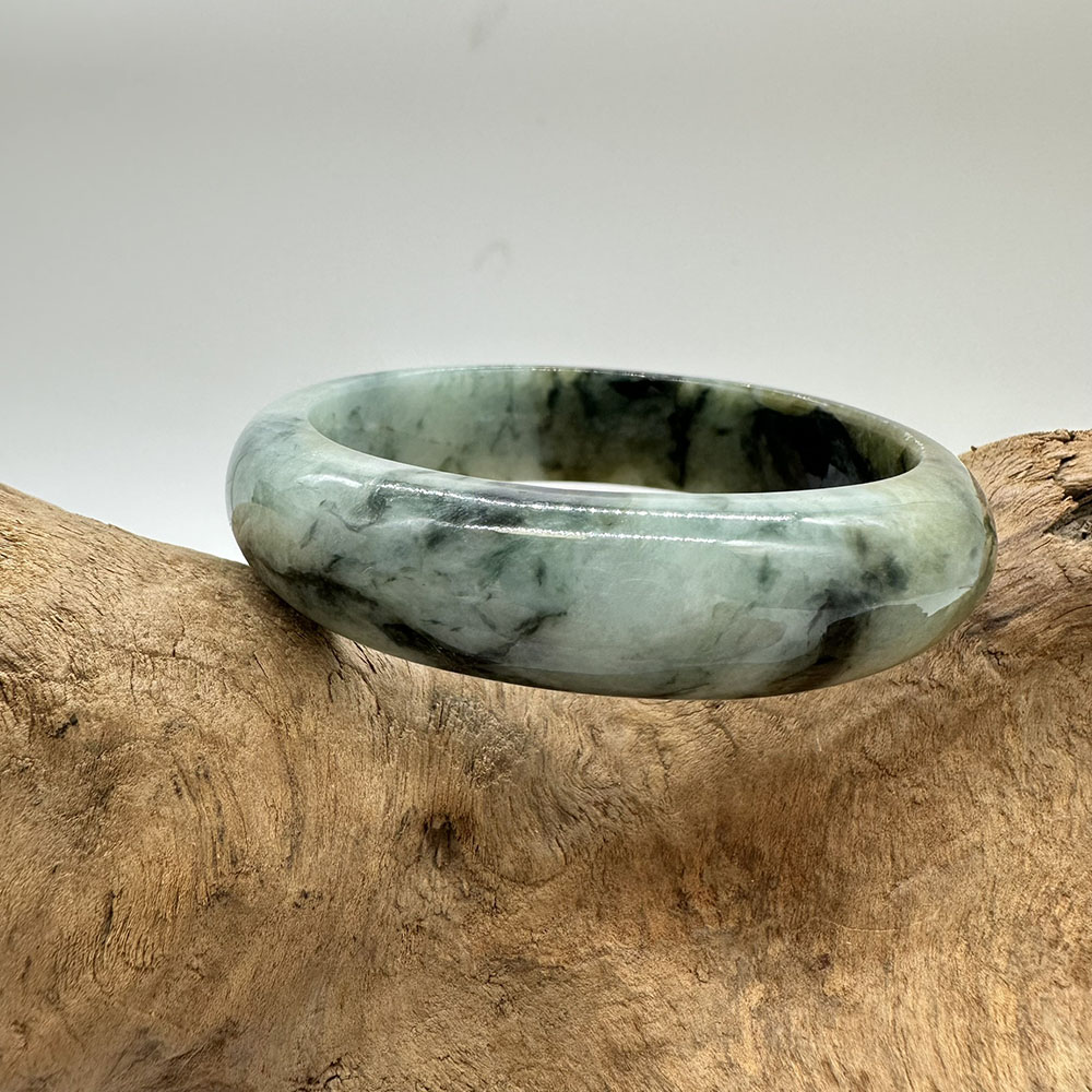 【肌容雪】天然緬甸A貨綠飄花翡翠平安鐲 編號75(鐲圍54.7mm#17號)