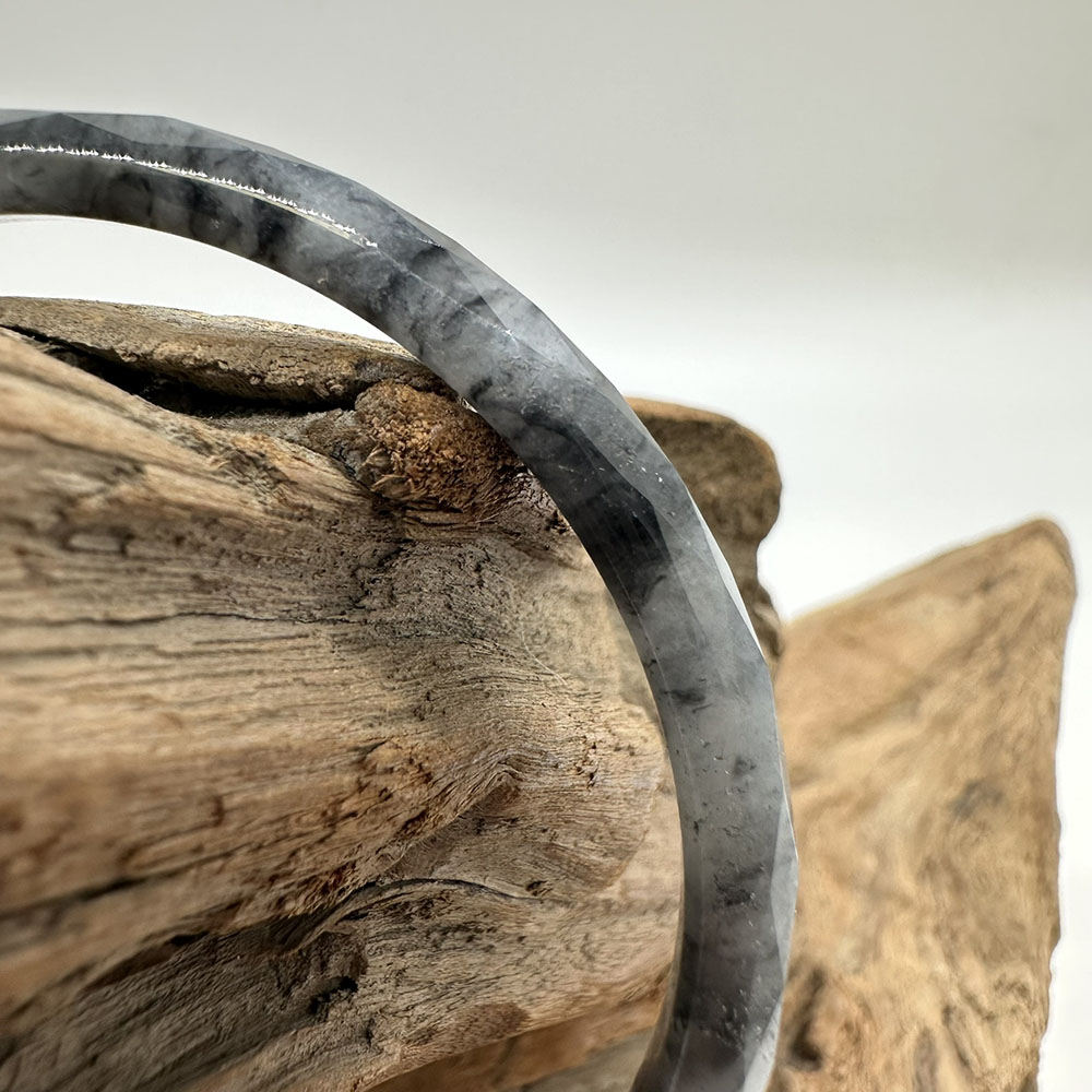 【肌容雪】天然緬甸A貨翡翠冰烏機叮噹手鐲 編號76(鐲圍58.3mm#18.5號)