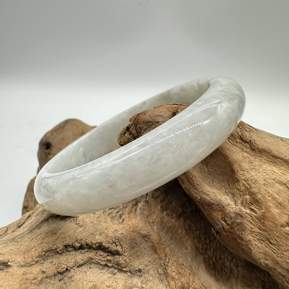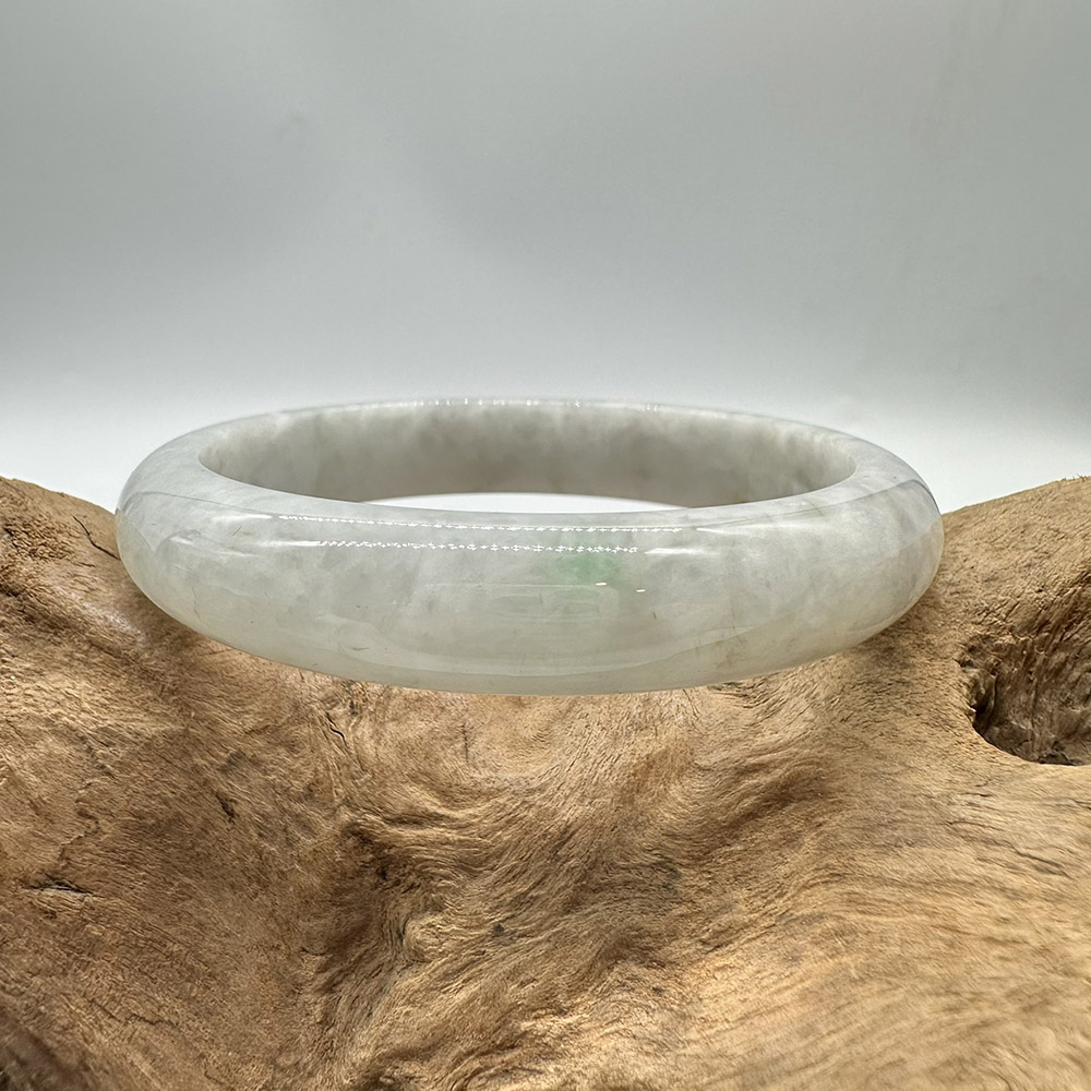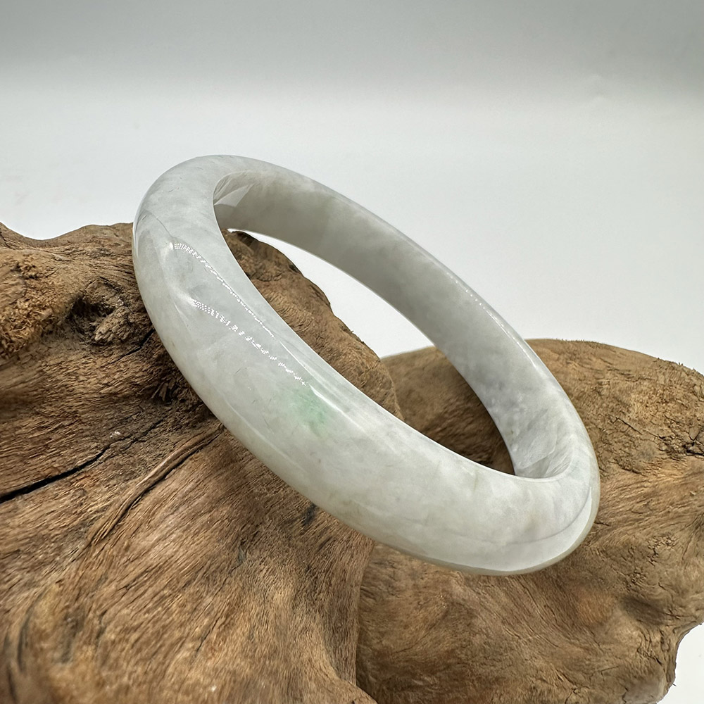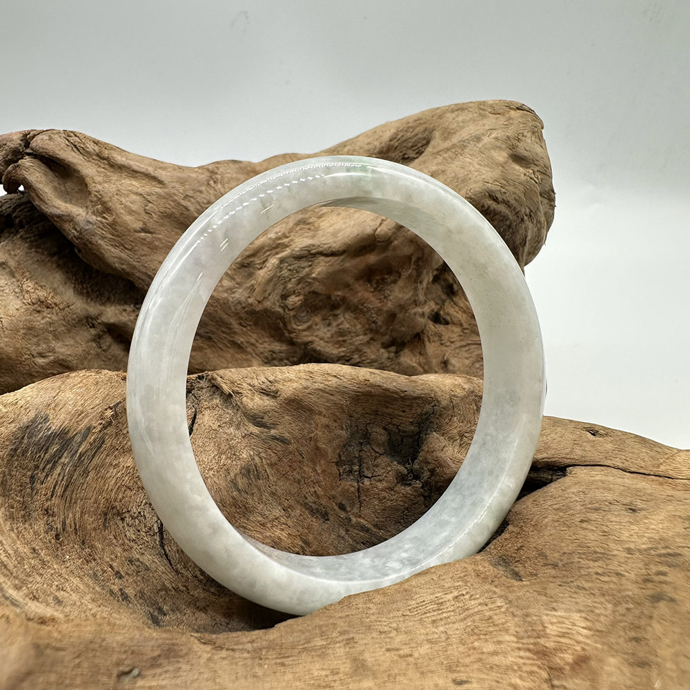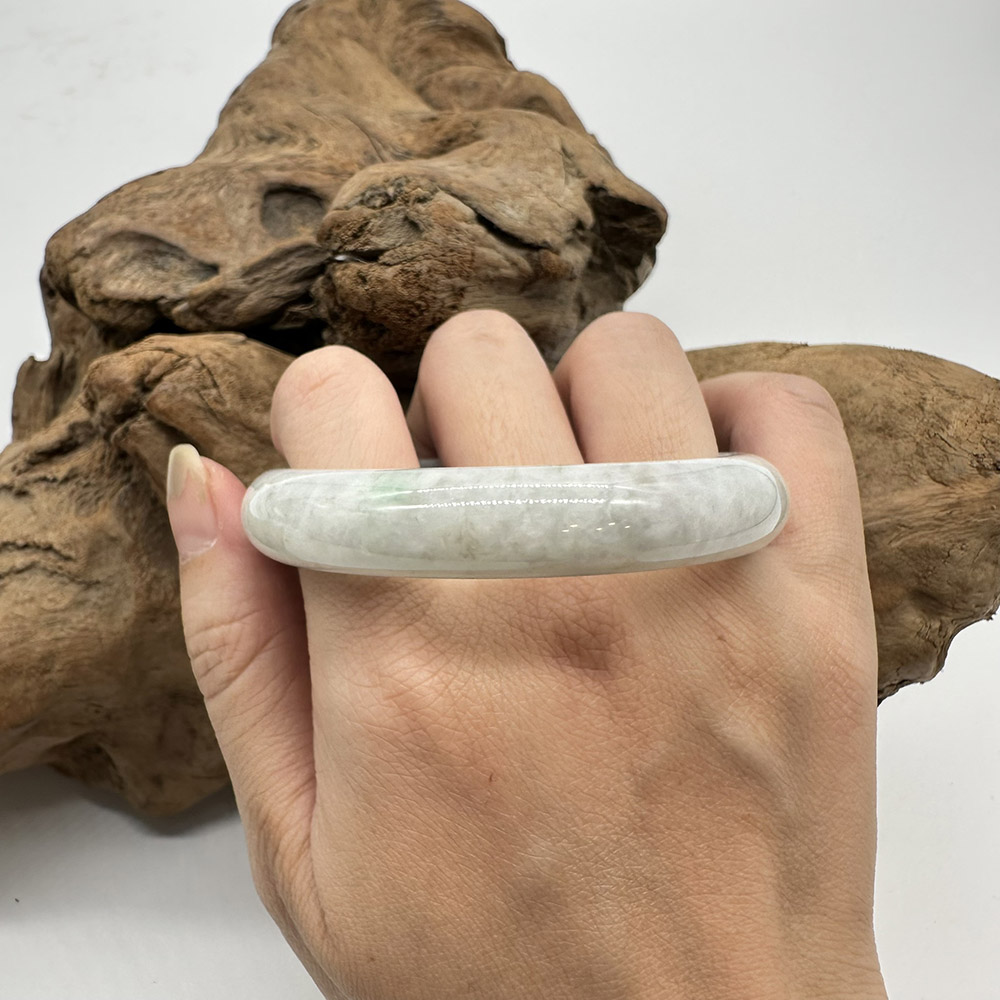 【肌容雪】天然緬甸A貨翡翠粉春飄花平安鐲 編號80(鐲圍57.9mm#18號)