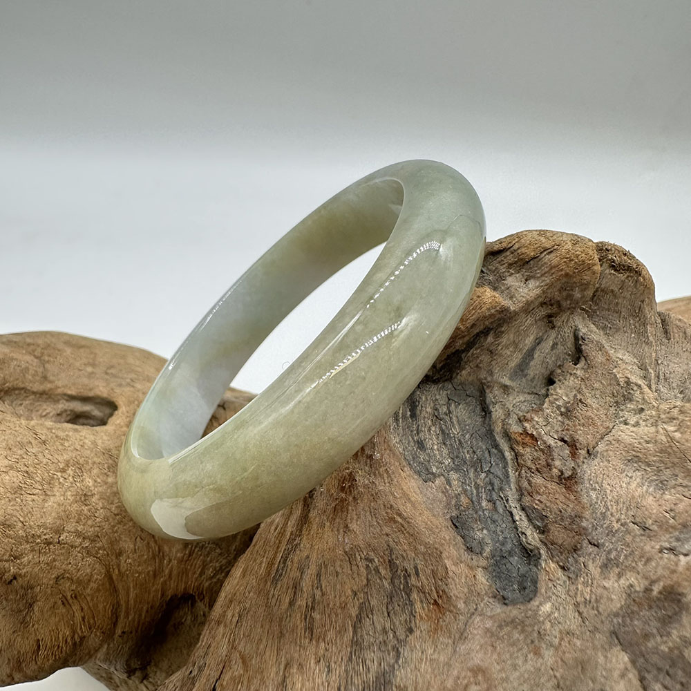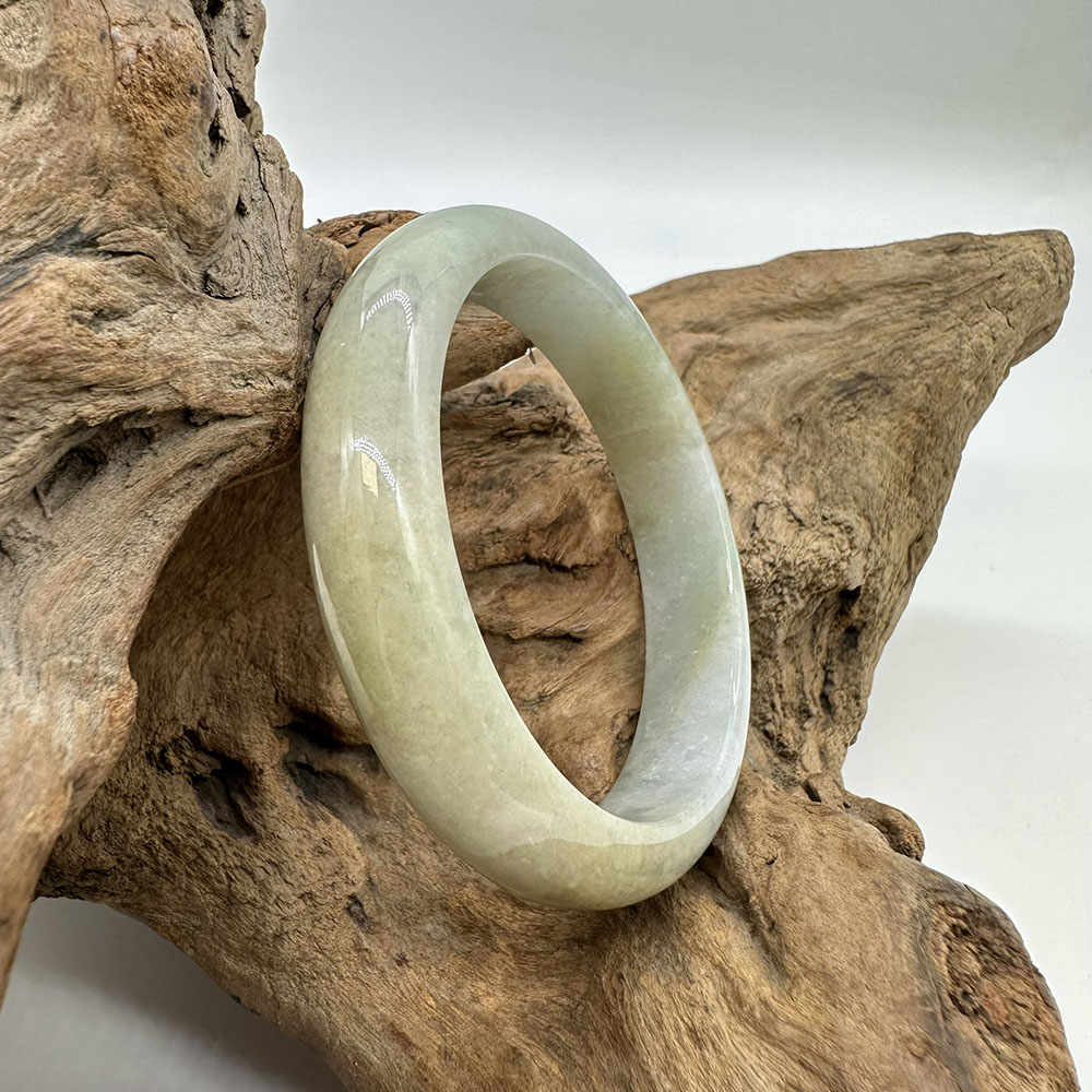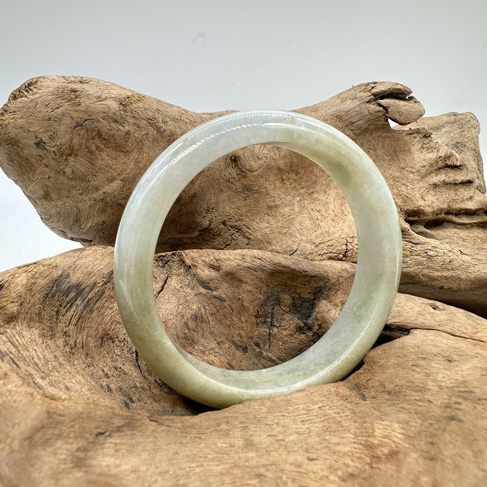 【肌容雪】天然緬甸A貨翡翠飄花平安鐲 編號84(鐲圍57.3mm#18號)