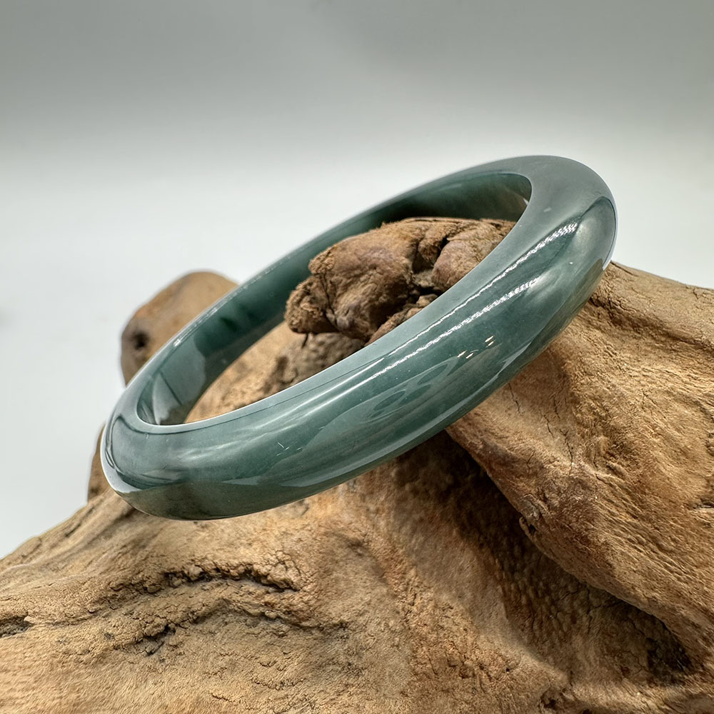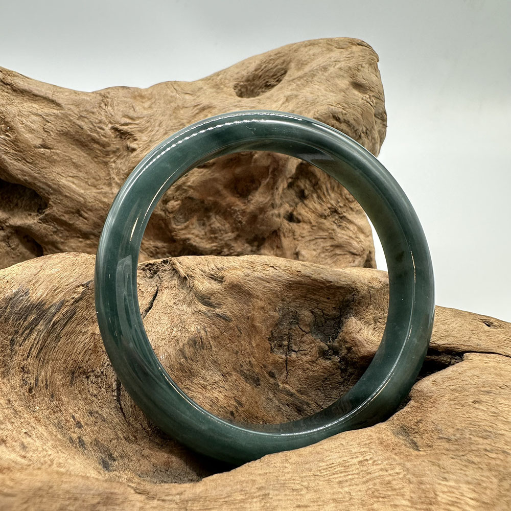 【肌容雪】天然緬甸A貨湖水綠翡翠平安鐲 編號183(鐲圍56.6mm#18號)