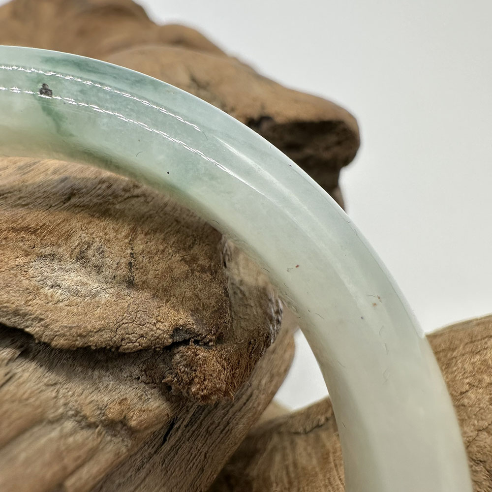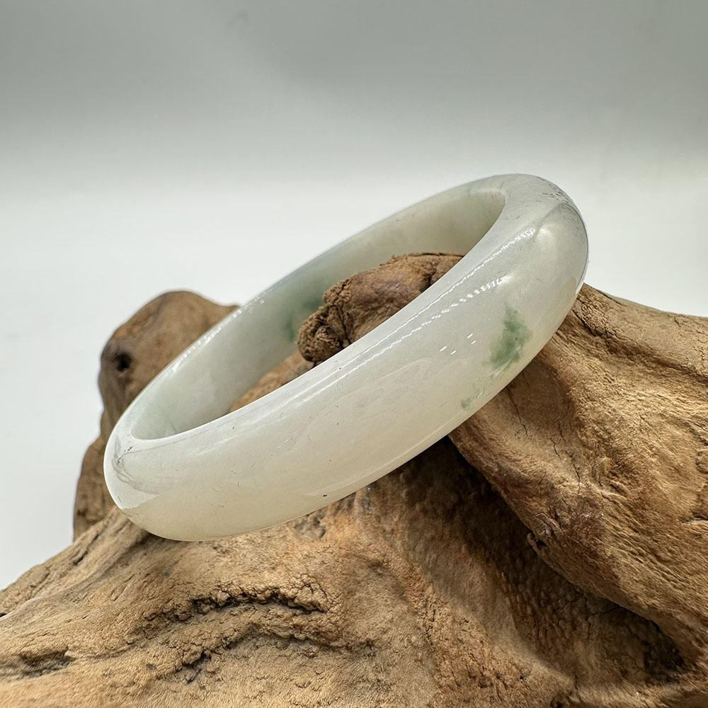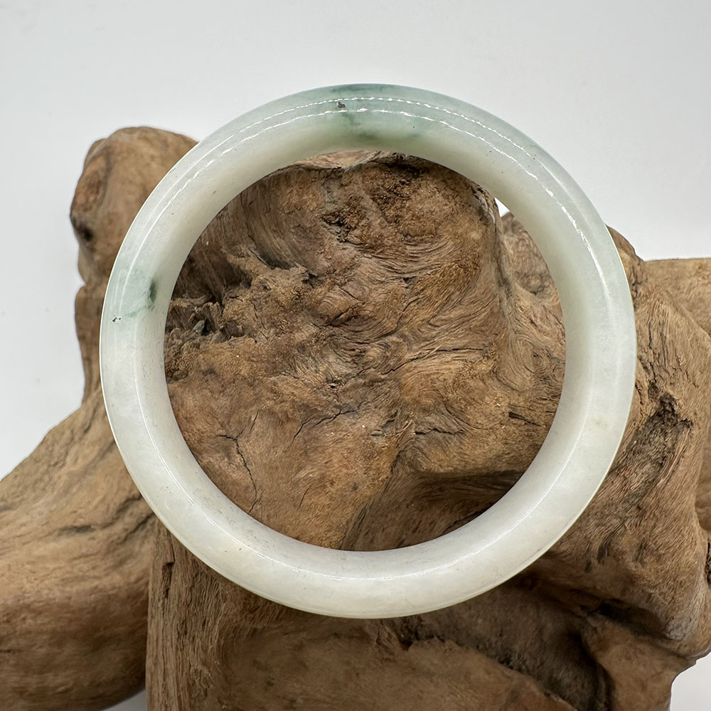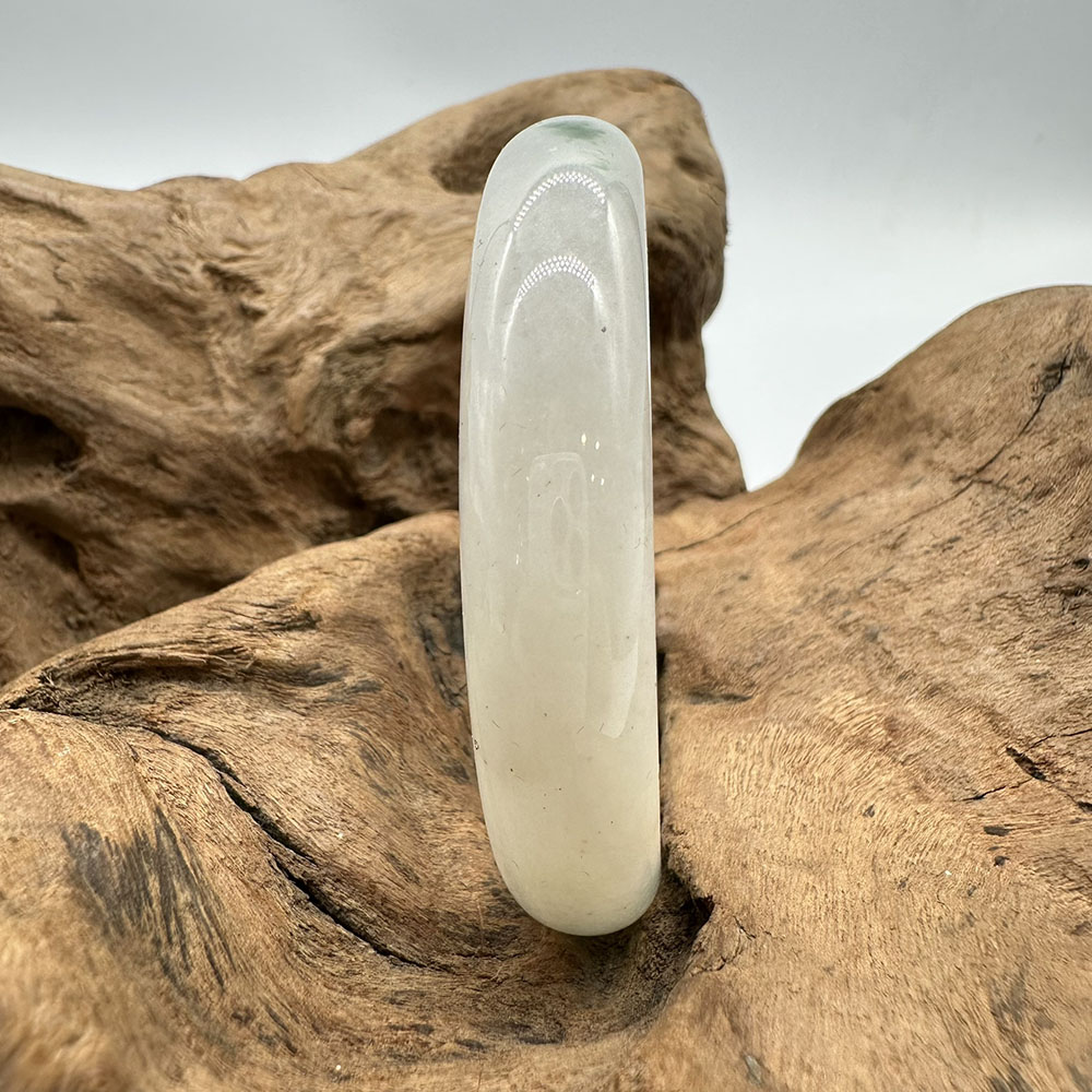 【肌容雪】天然緬甸A貨白底綠飄花翡翠平安鐲 編號185(鐲圍58.3mm#18.5號)