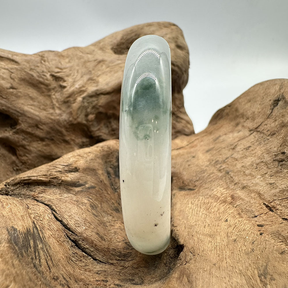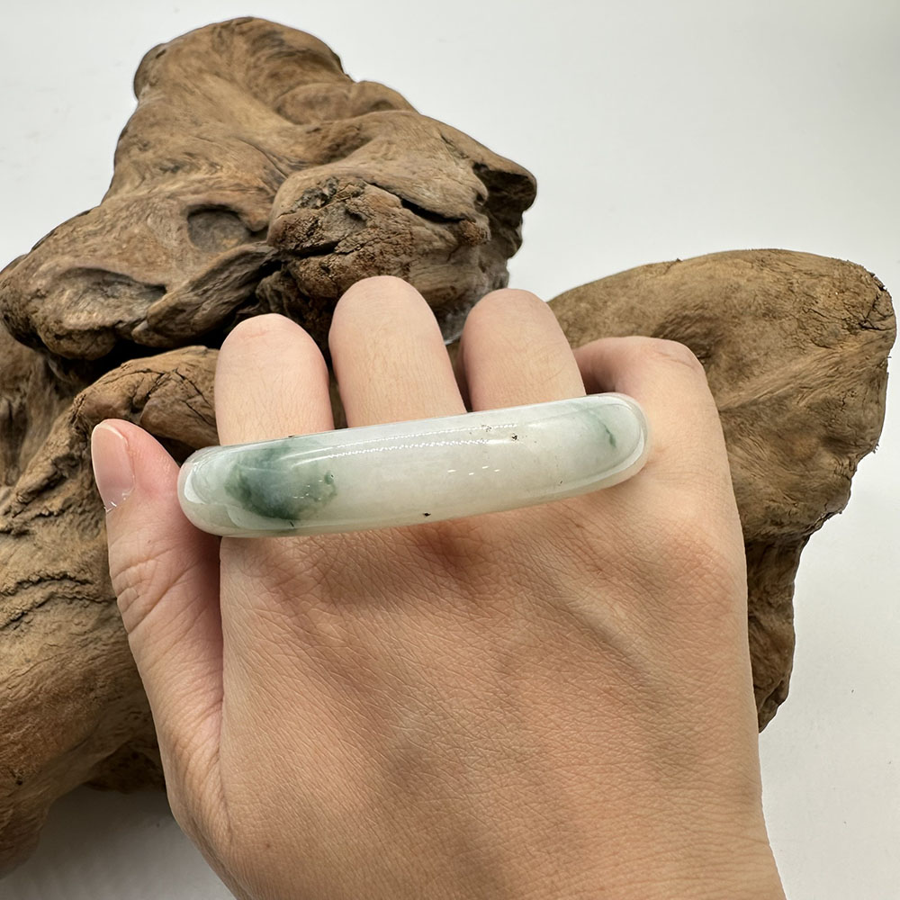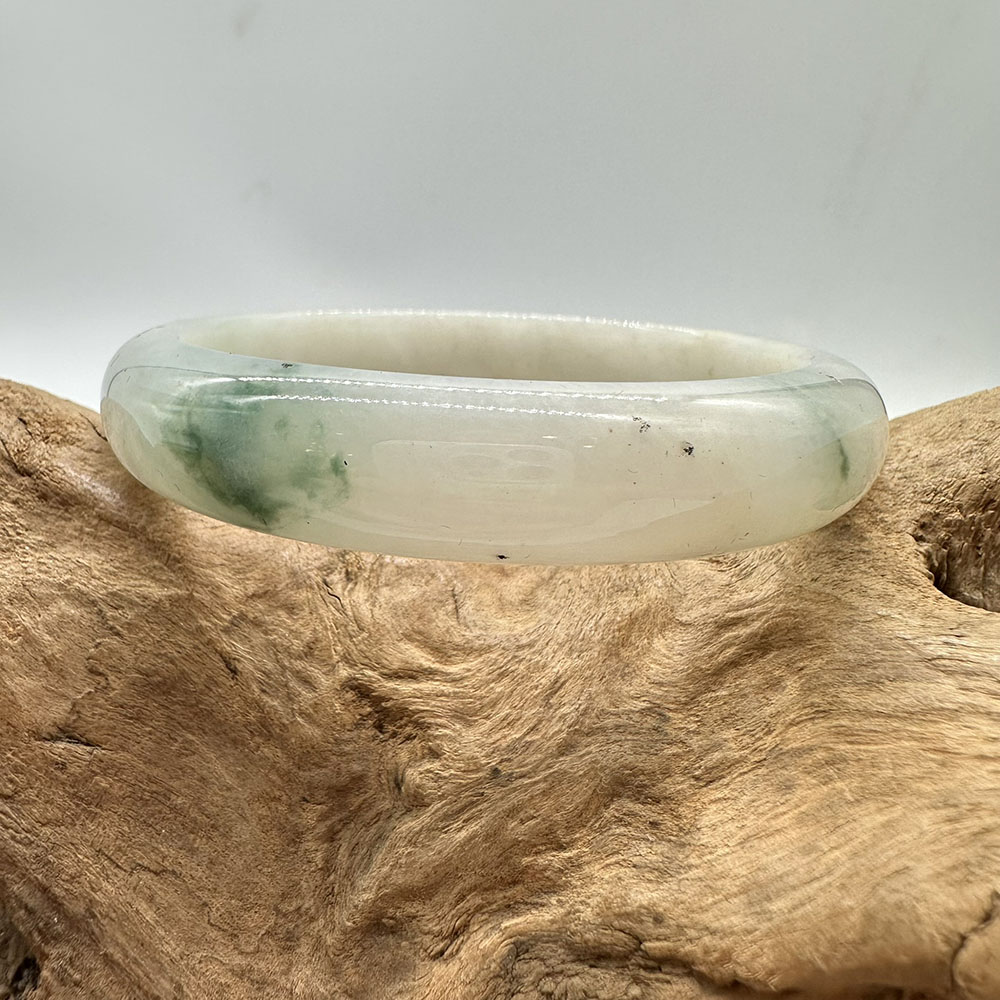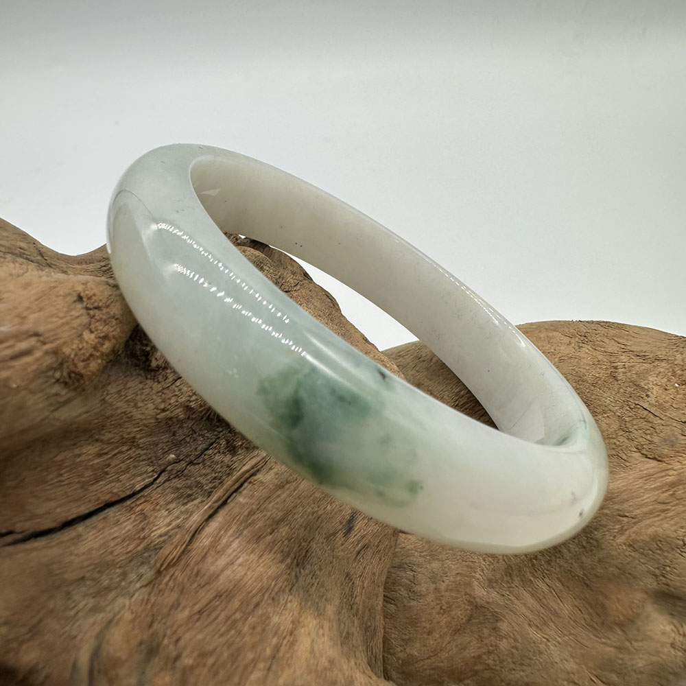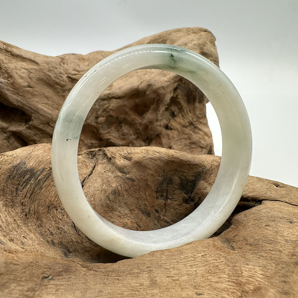 【肌容雪】天然緬甸A貨白底綠飄花翡翠平安鐲 編號185(鐲圍58.3mm#18.5號)