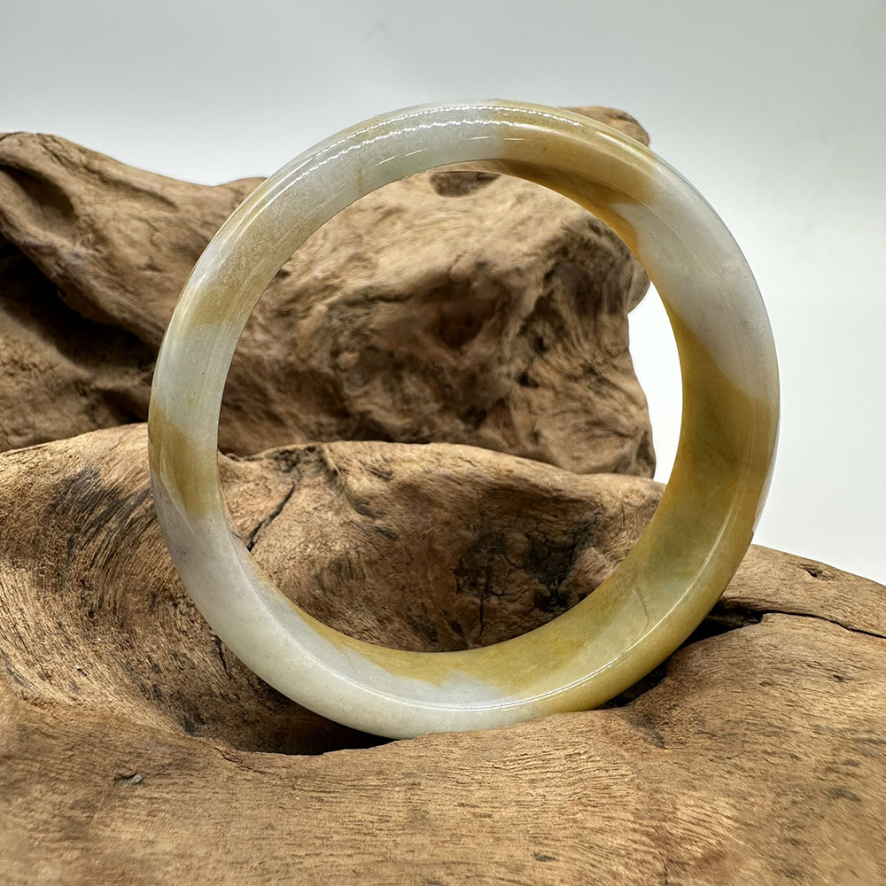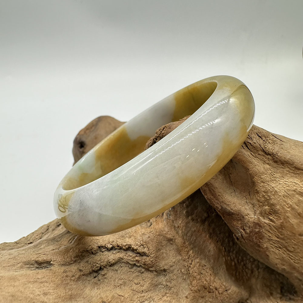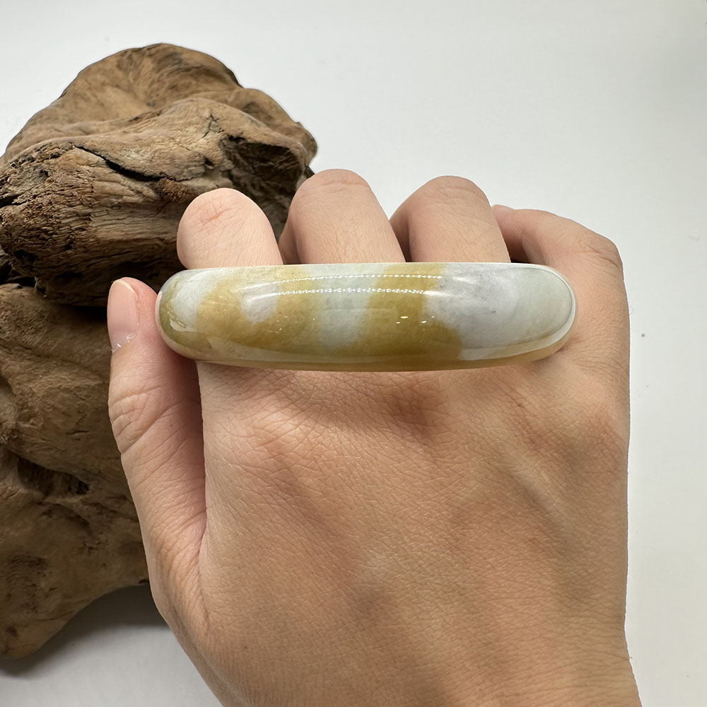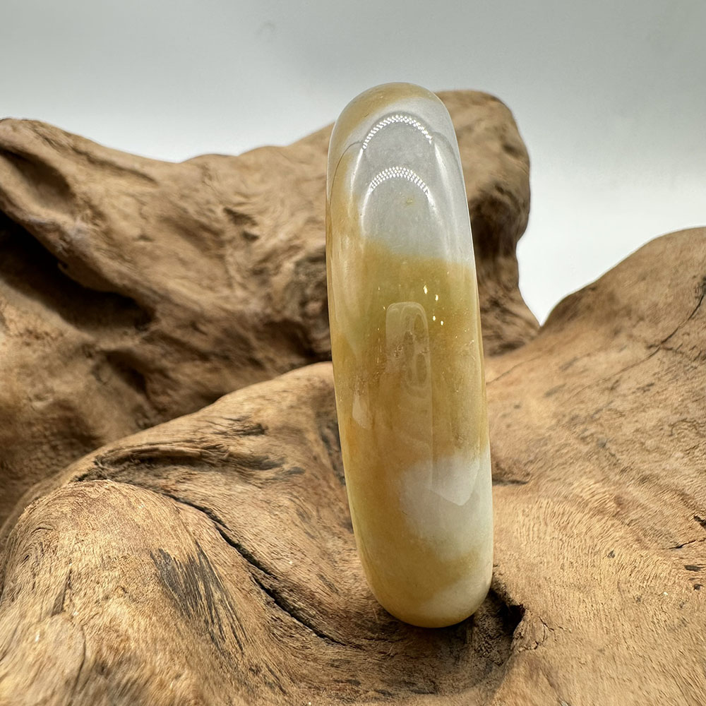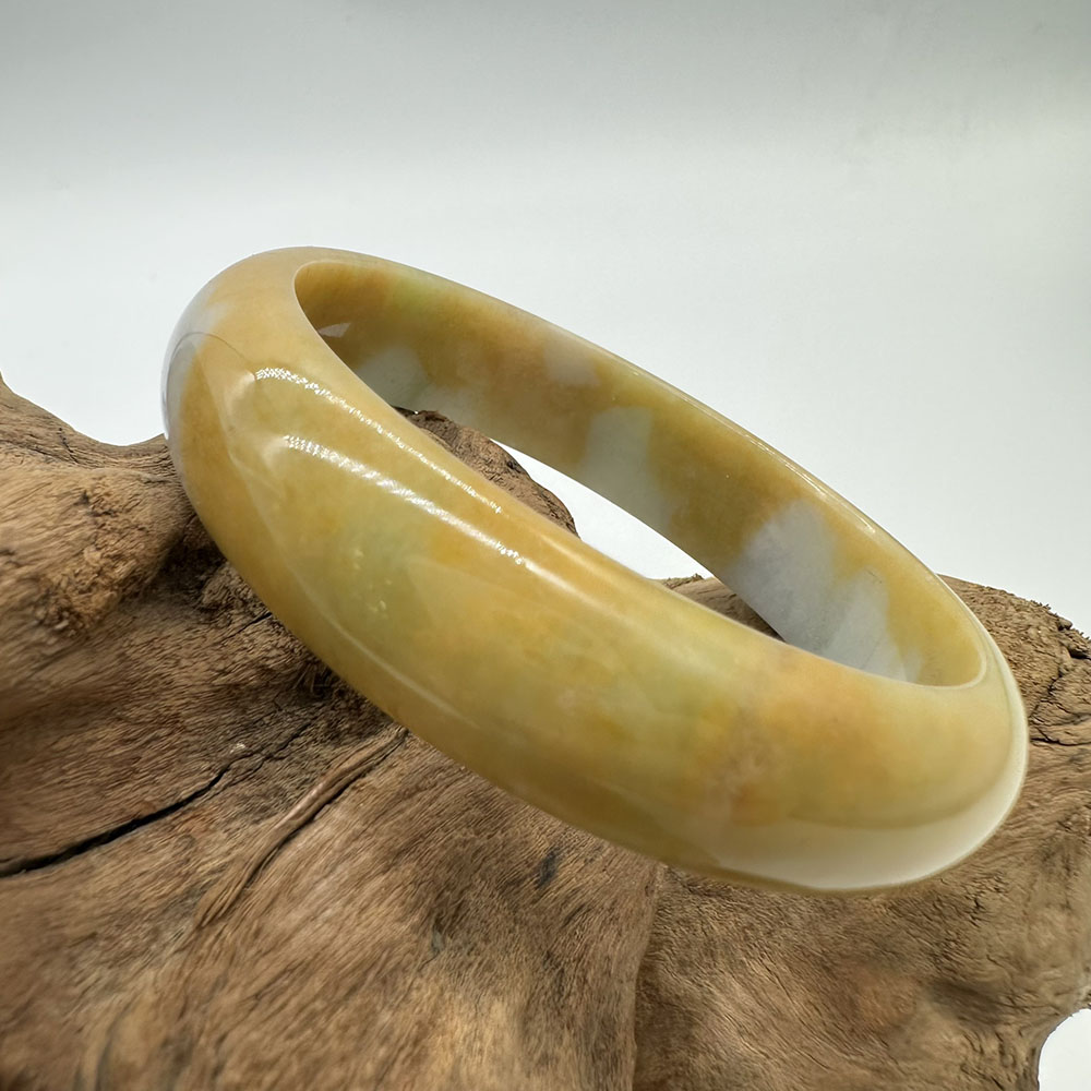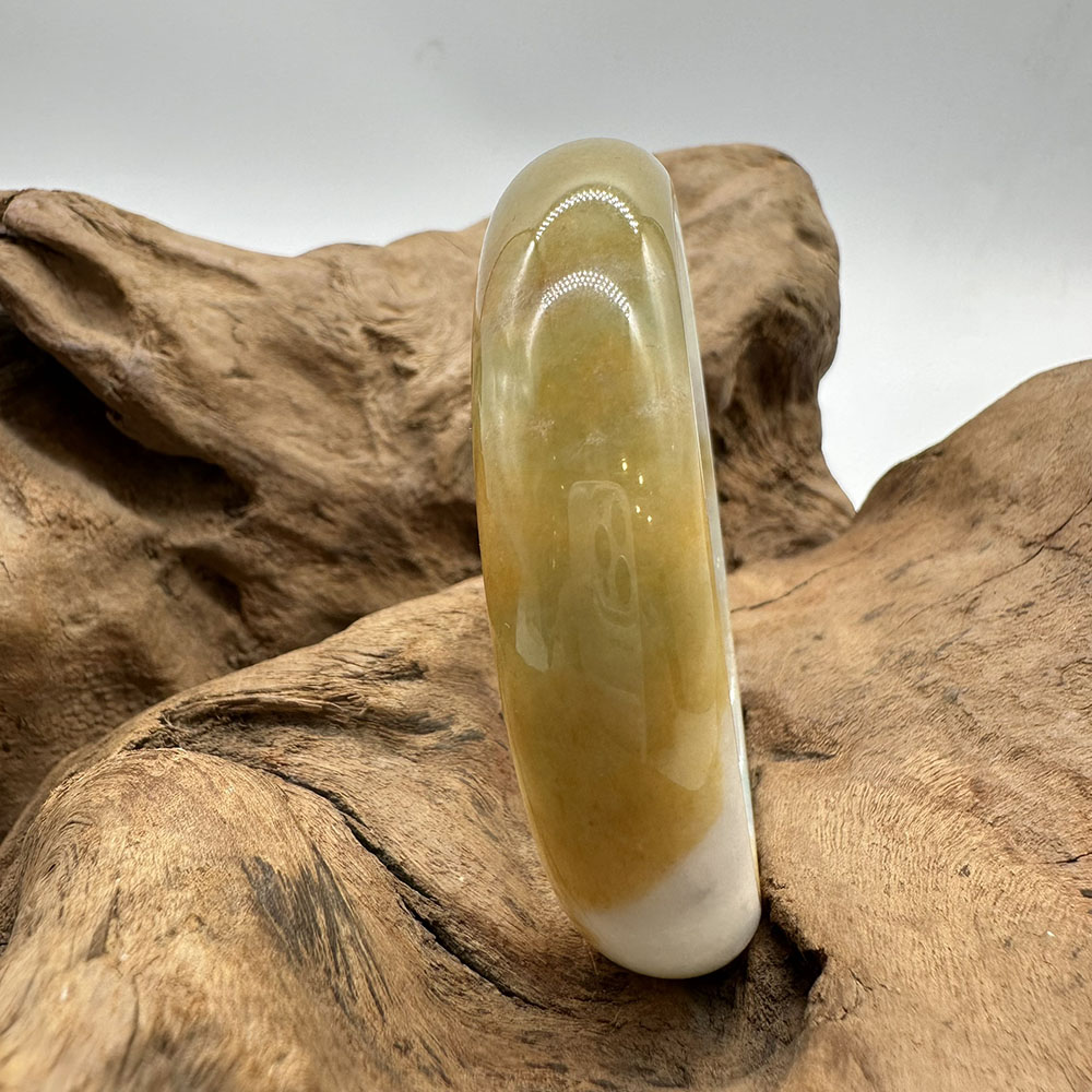 【肌容雪】天然緬甸A貨黃翡翠平安鐲 編號189(鐲圍62.3mm#19.5號)