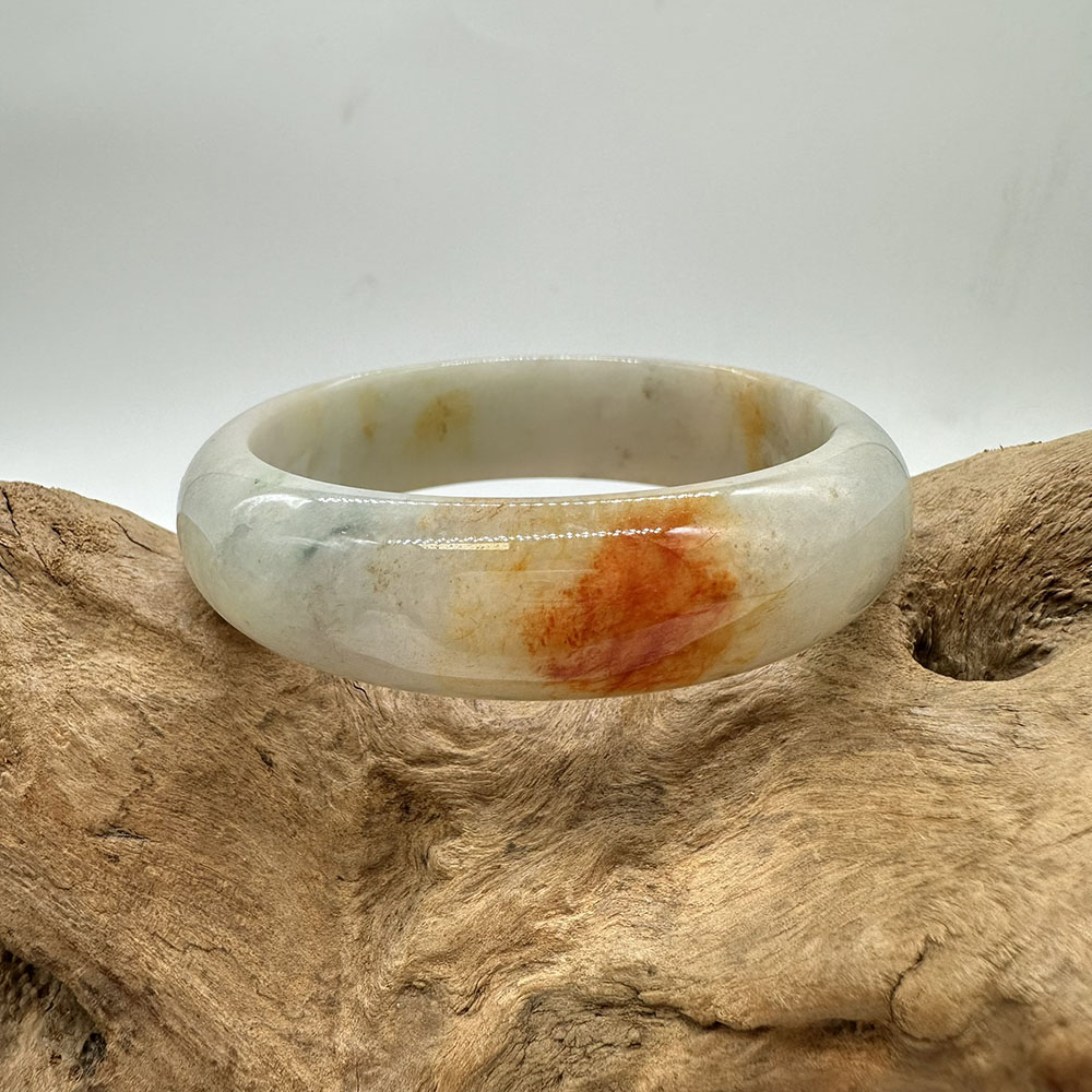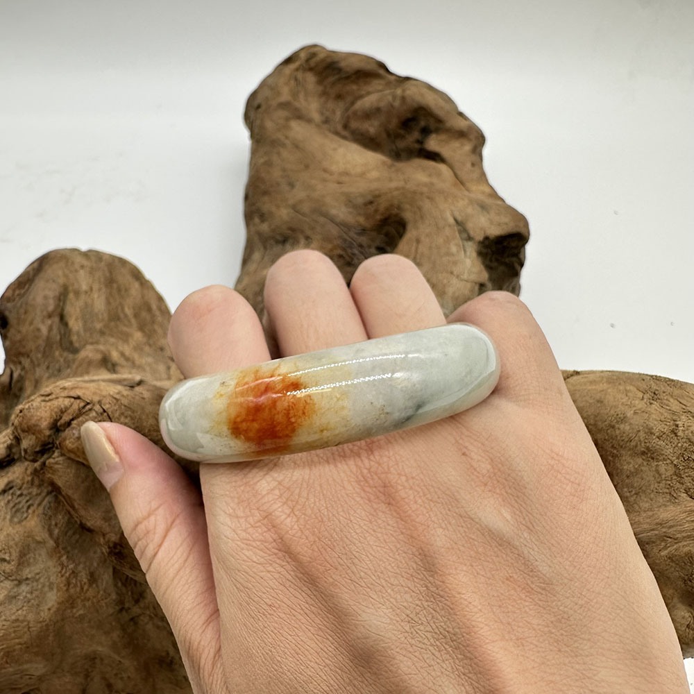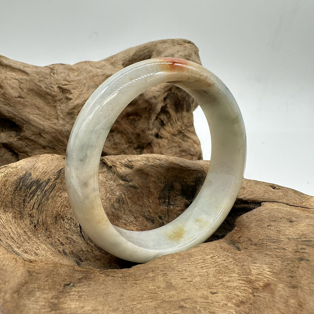 【肌容雪】天然緬甸A貨淺綠飄花帶紅翡翠平安鐲 編號57(鐲圍55.2mm#17.5號)