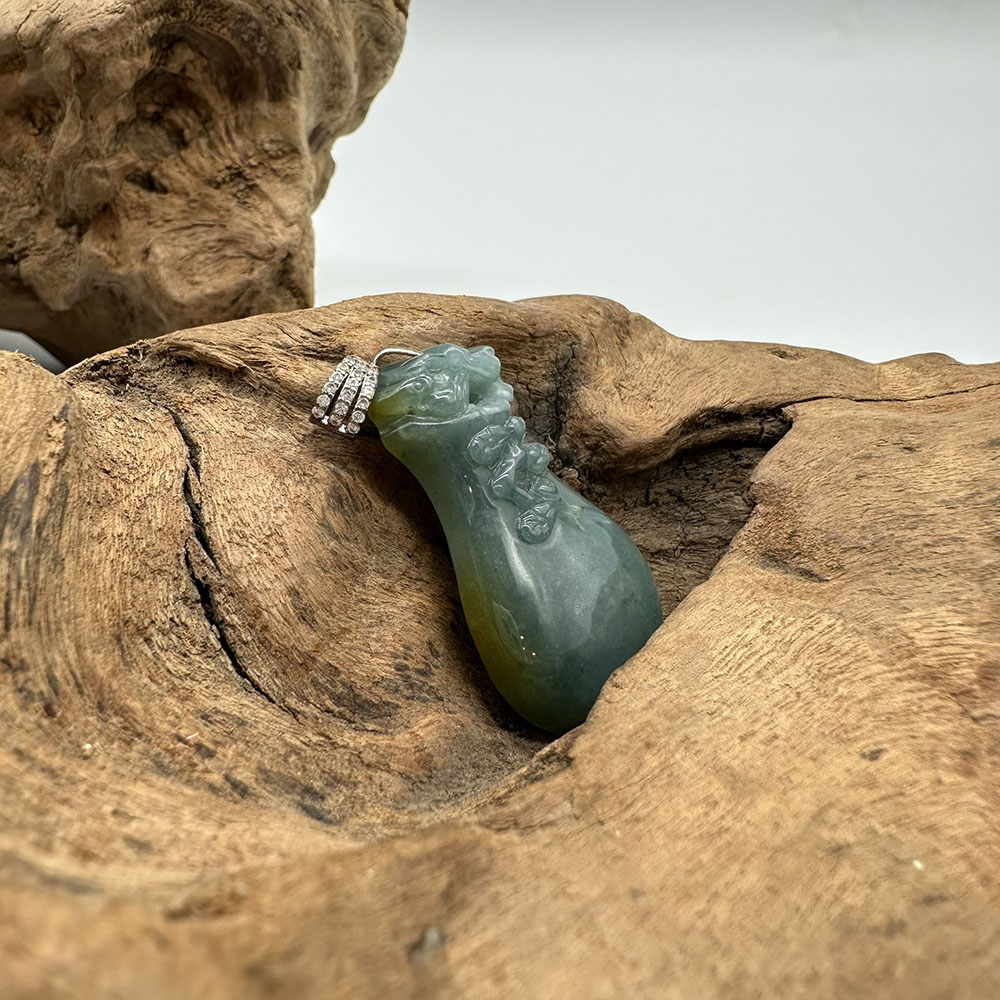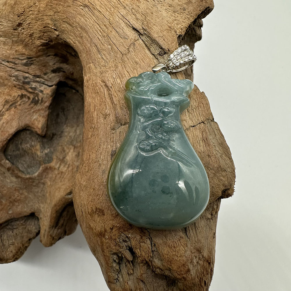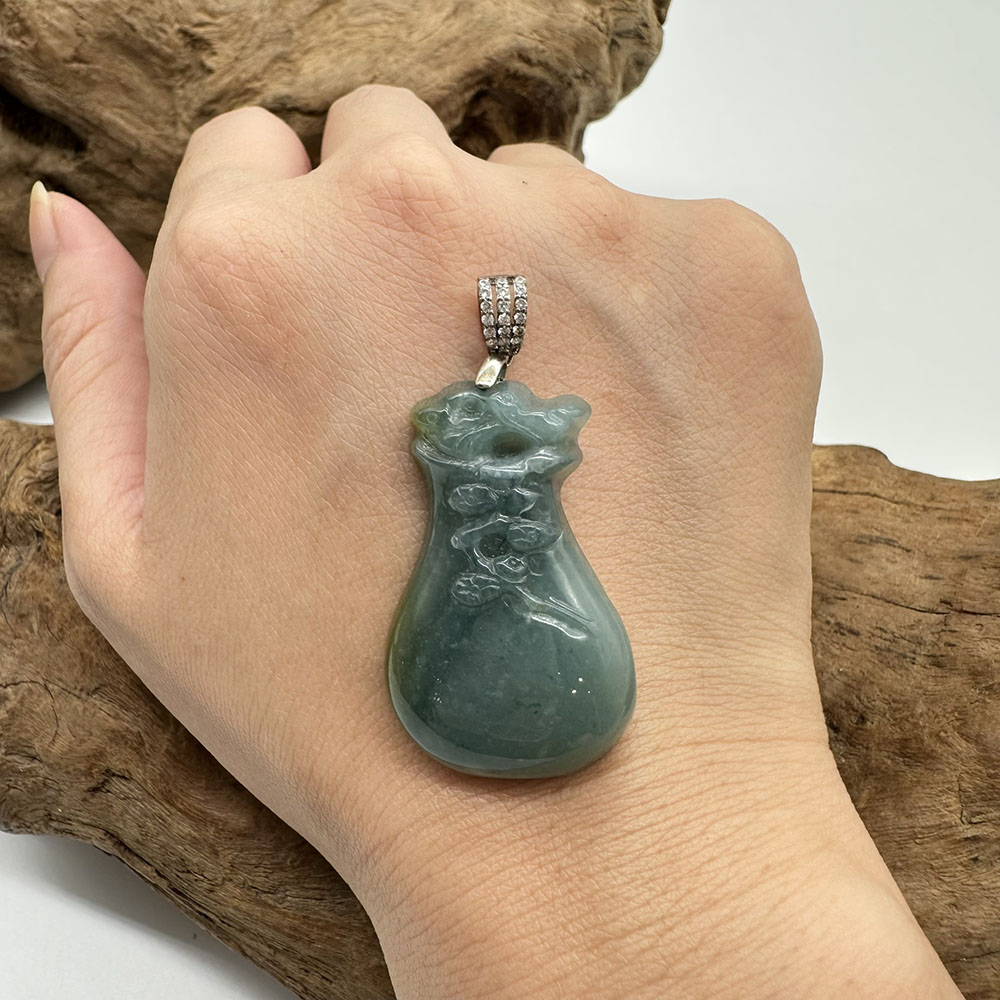 【肌容雪】天然緬甸A貨代代有錢翡翠錢袋吊墜 編號96