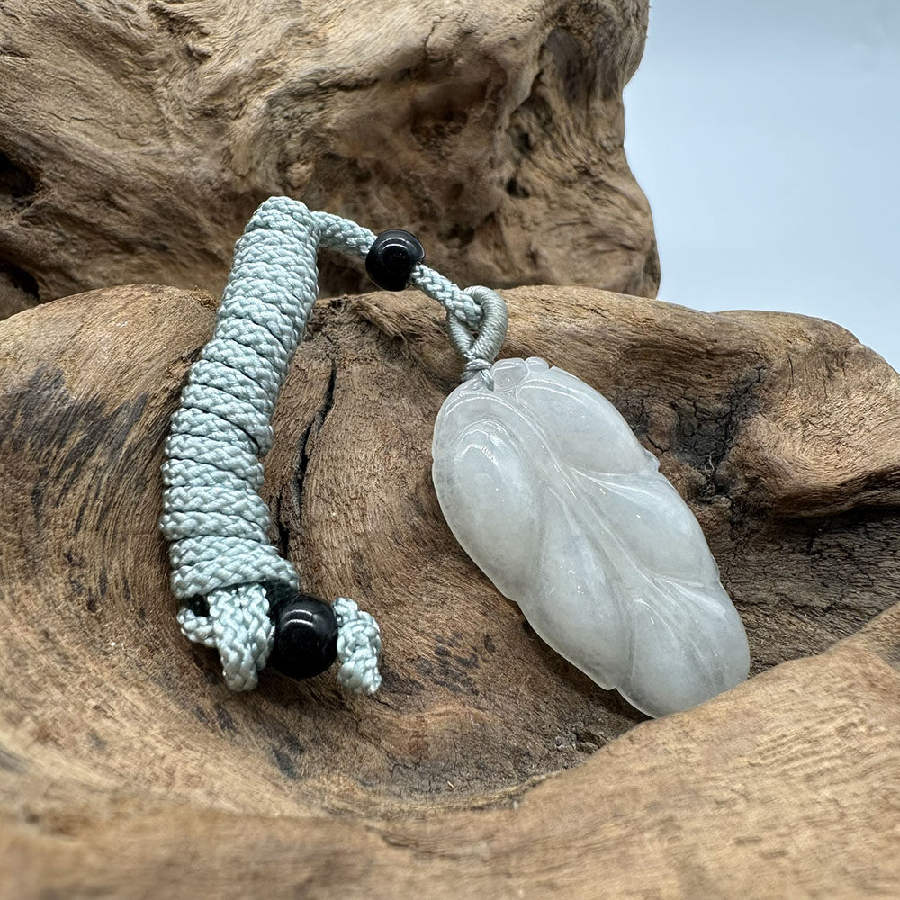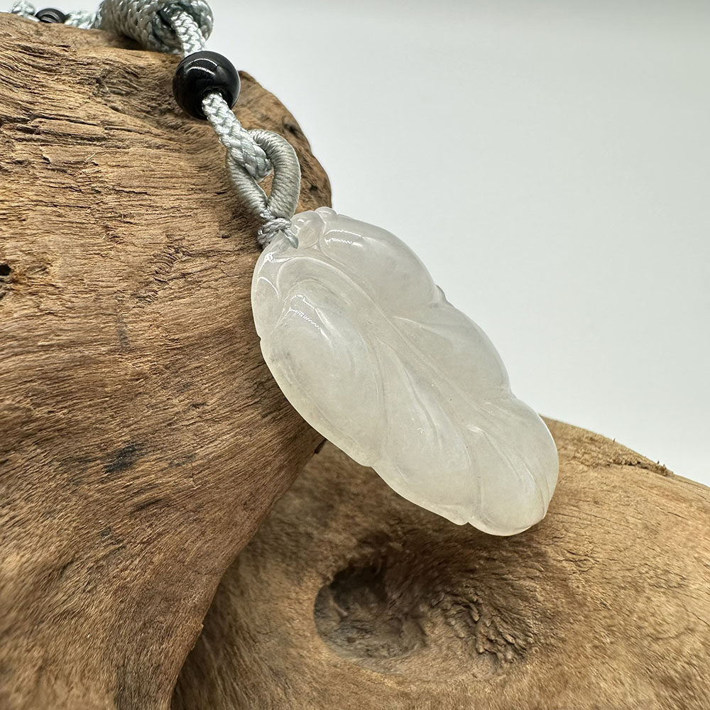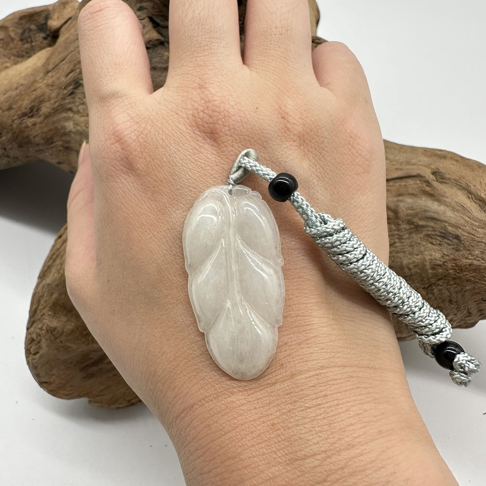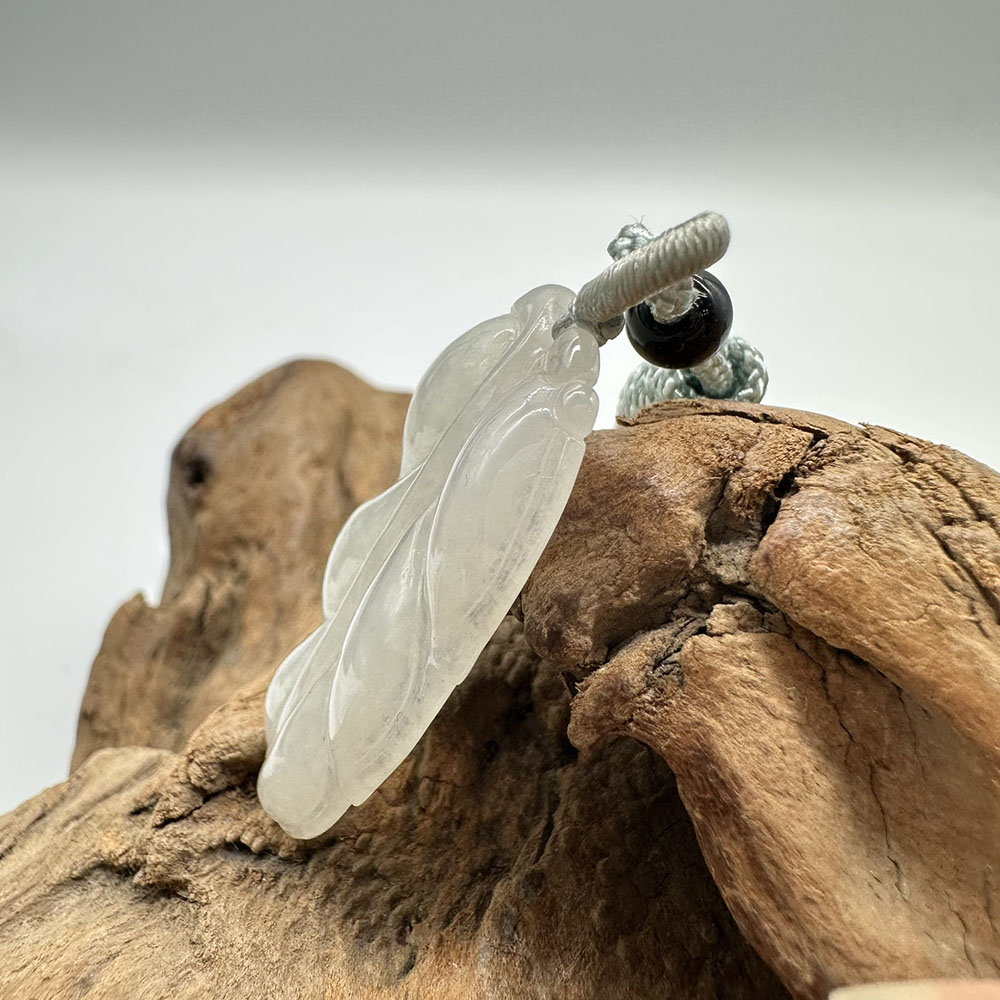 【肌容雪】天然緬甸A貨白月光翡翠葉子吊飾 編號97