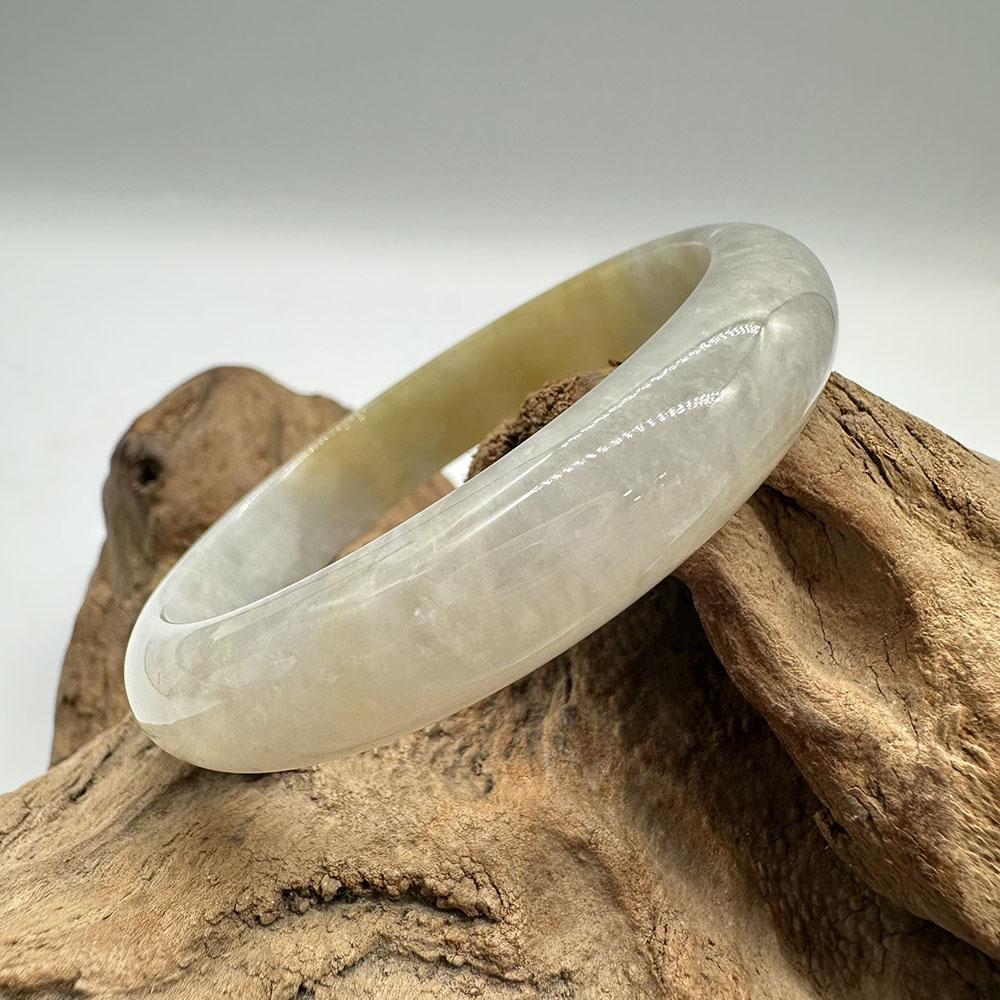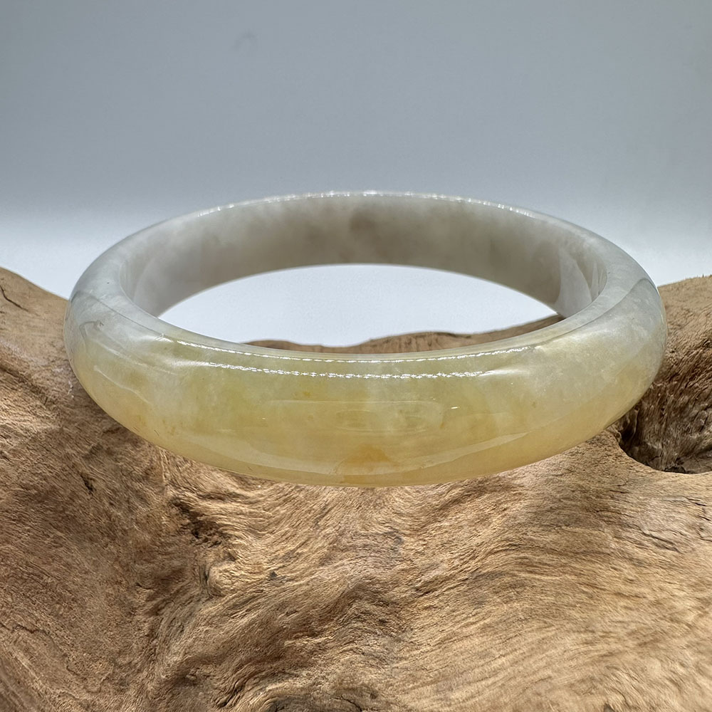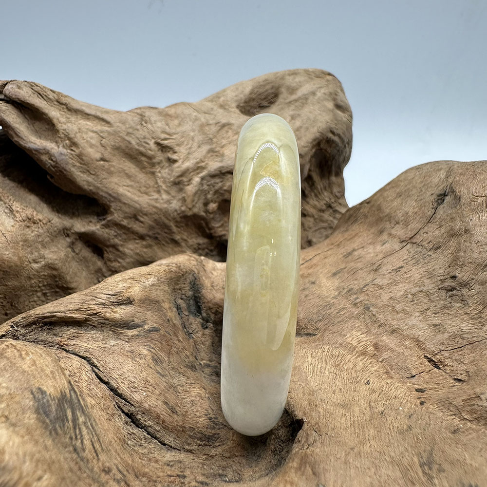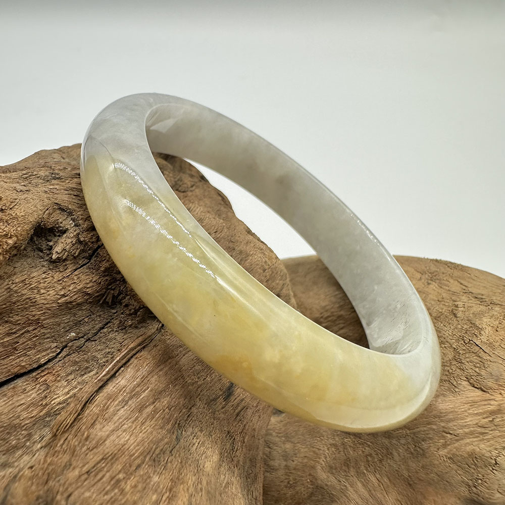 【肌容雪】天然緬甸A貨紫底黃翡翠平安鐲 編號99(鐲圍55.7mm#17.5號)