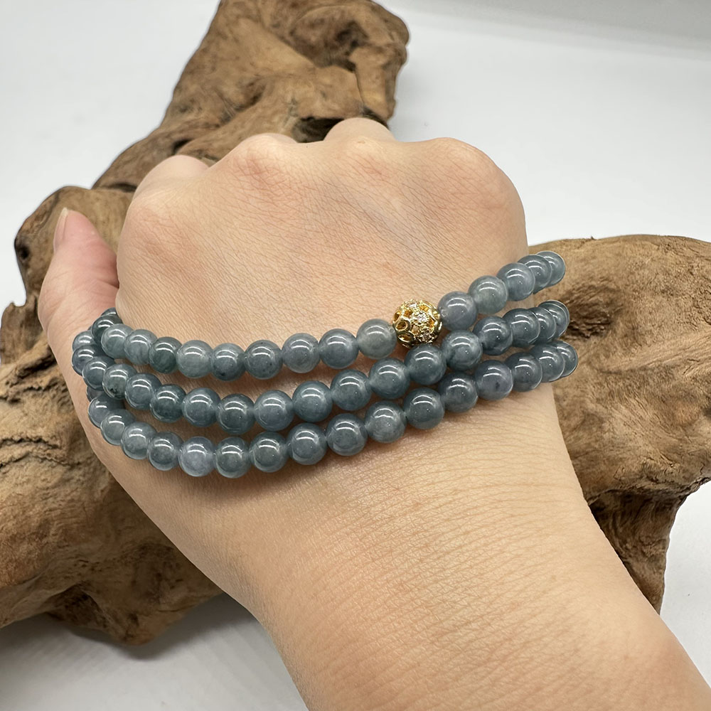 【肌容雪】天然緬甸A貨水墨色翡翠珠鍊 編號119