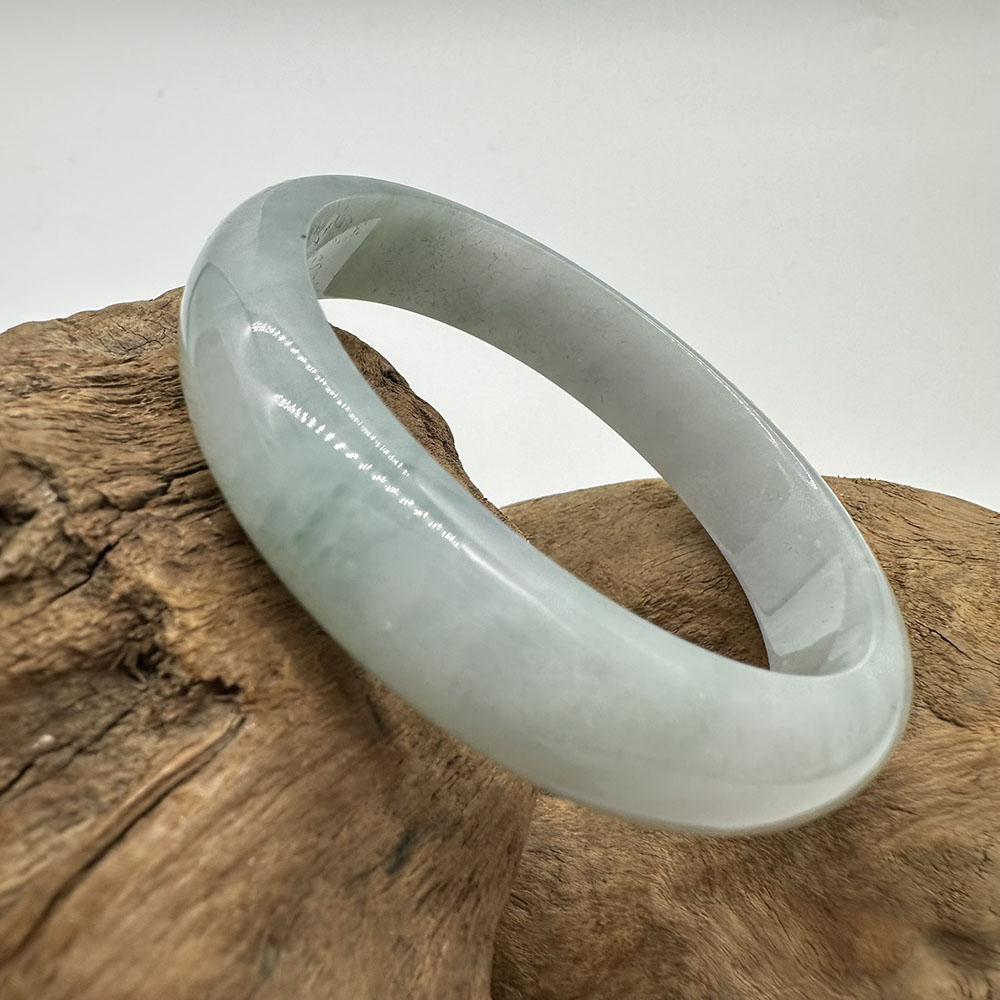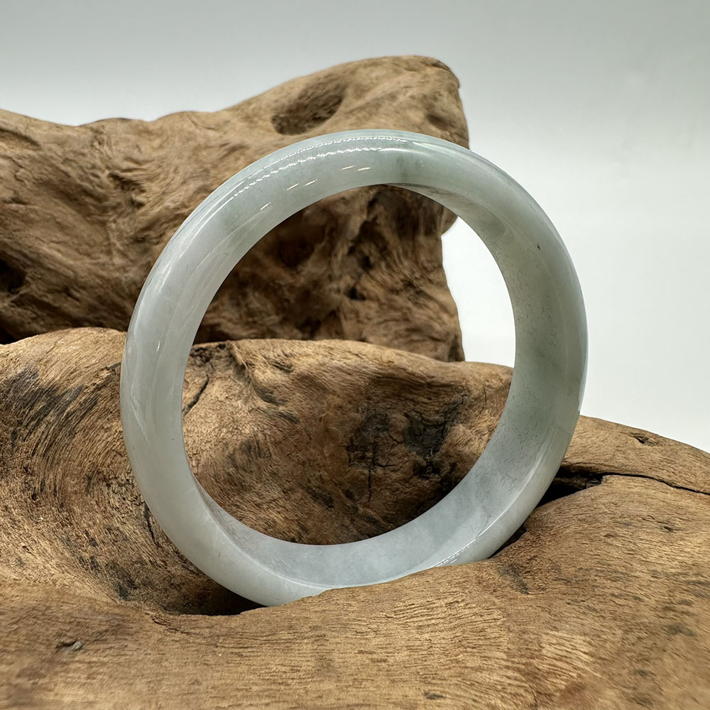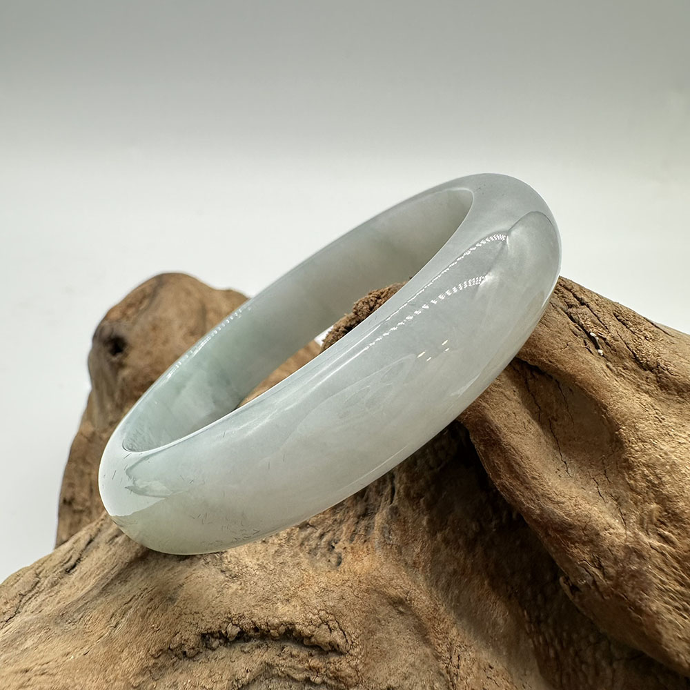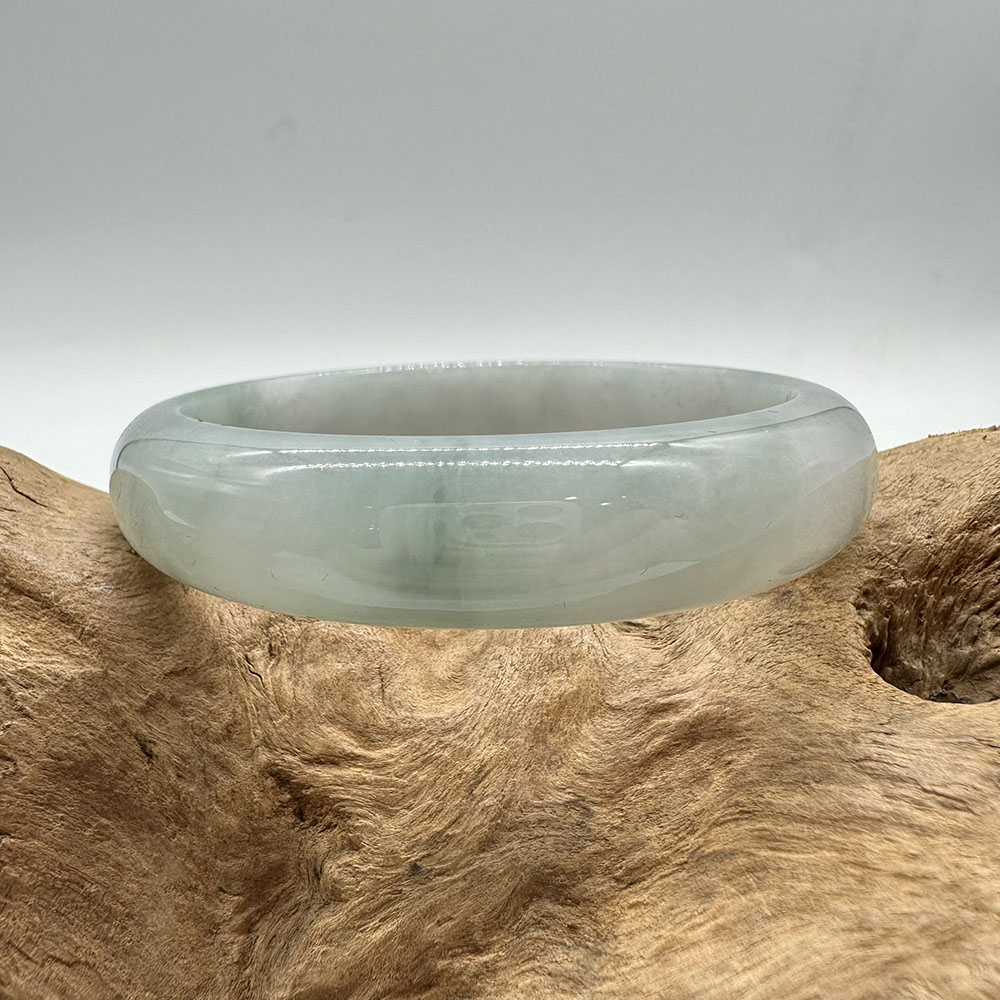 【肌容雪】天然緬甸A貨飄花翡翠平安鐲 編號124(鐲圍55.1mm#17.5號)
