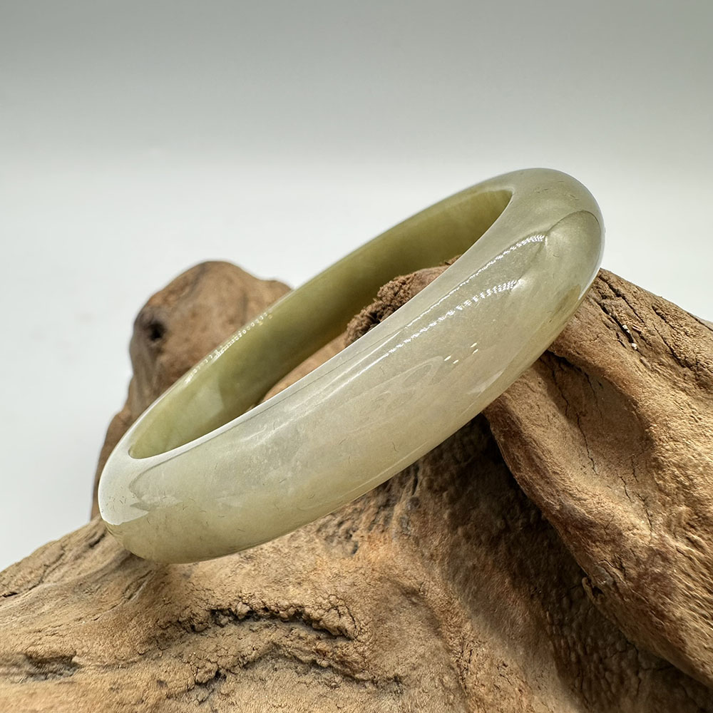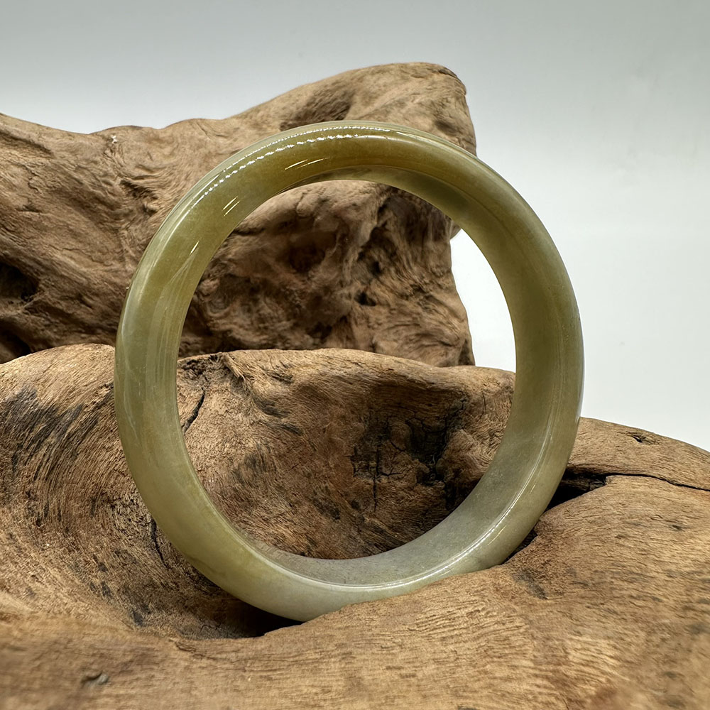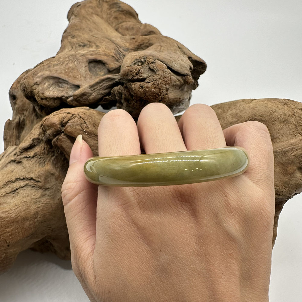 【肌容雪】天然緬甸A貨湖水綠飄花翡翠平安鐲 編號125(鐲圍57.4mm#18號)