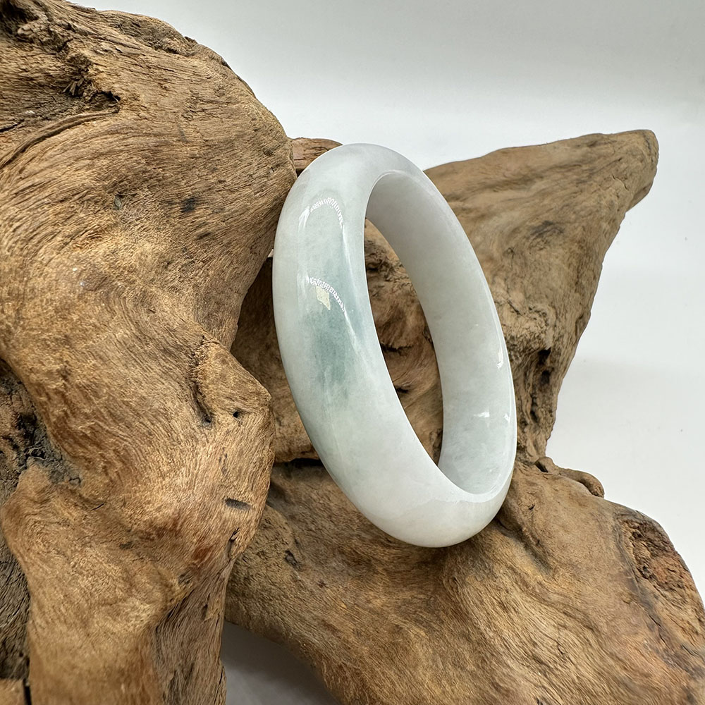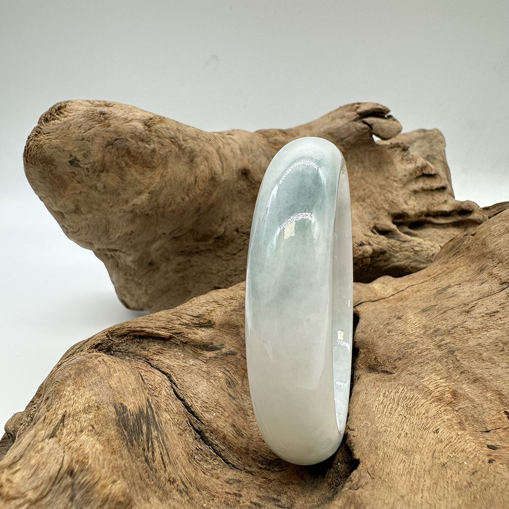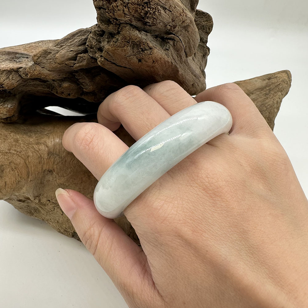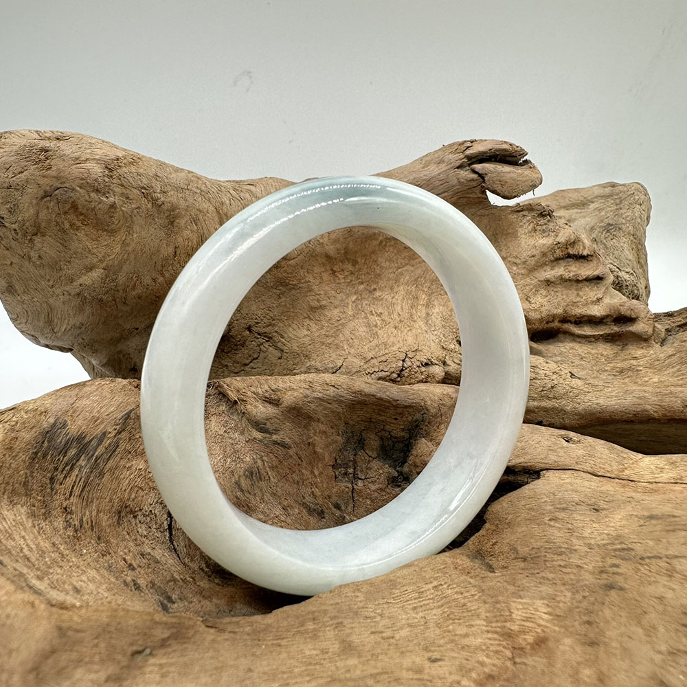 【肌容雪】天然緬甸A貨冰白底青翡翠正圈手鐲 編號130(鐲圍54.8mm#17號)