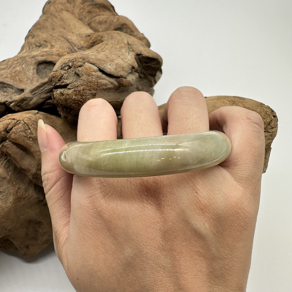 【肌容雪】天然緬甸A貨翡翠飄花平安鐲 編號132(鐲圍57.3mm#18號)