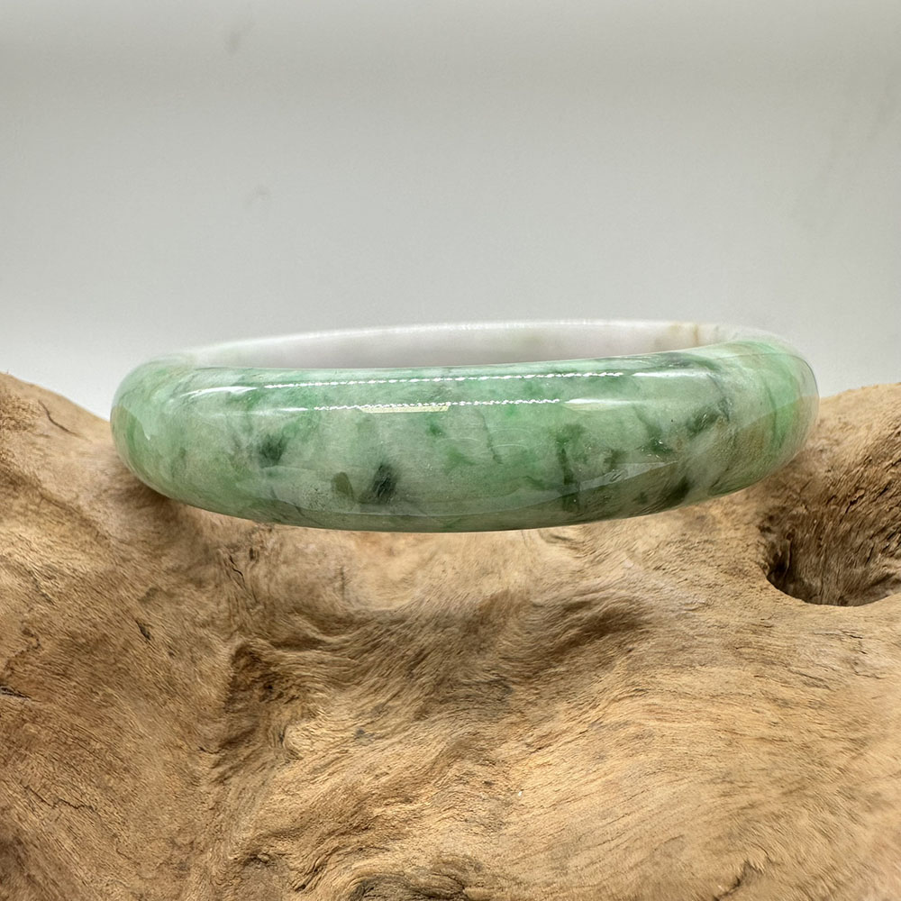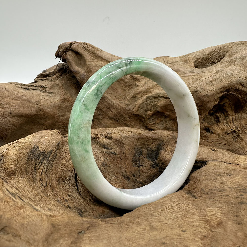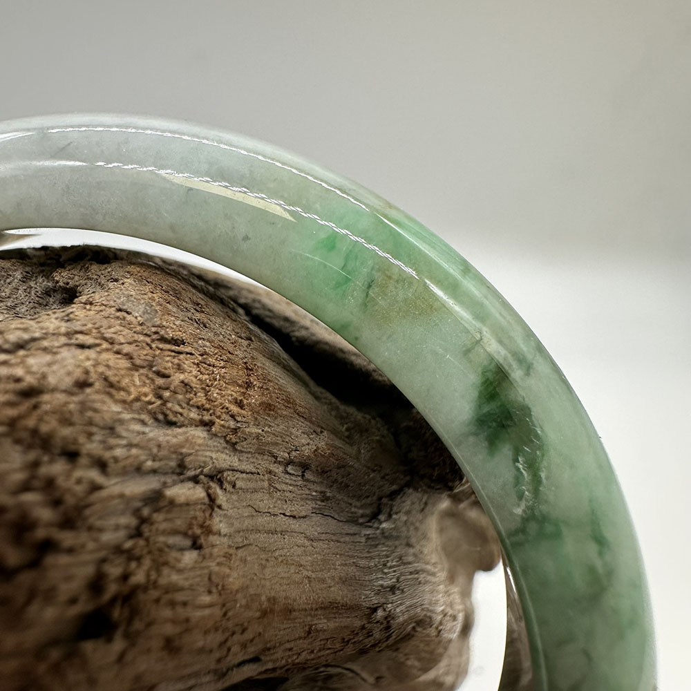 【肌容雪】天然緬甸A貨綠飄花翡翠平安鐲 編號223(鐲圍57.4mm#18號)