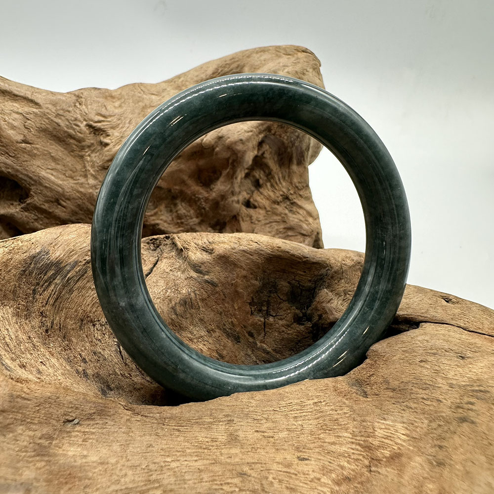 【肌容雪】天然緬甸A貨藍水翡翠圓條手鐲 編號229(鐲圍55.0mm#17.5號)