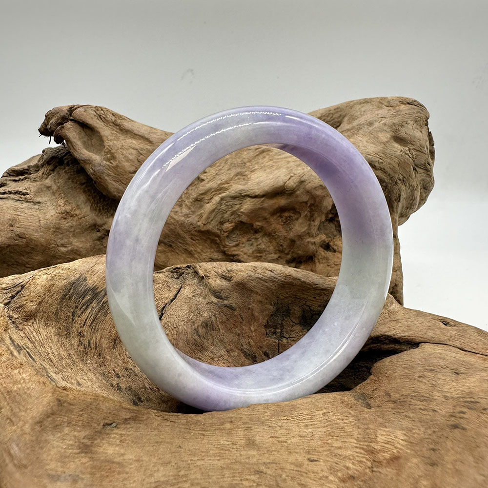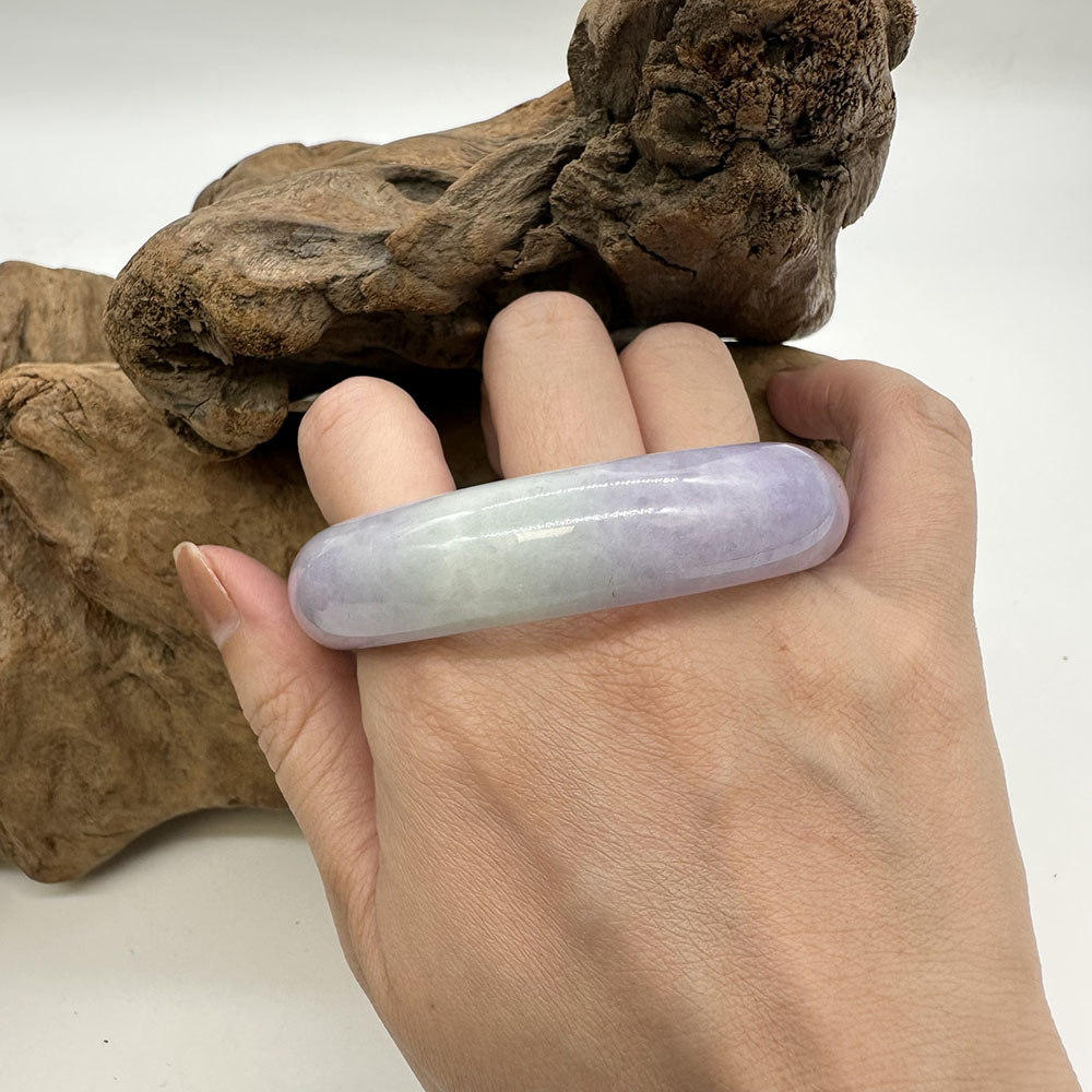 【肌容雪】天然緬甸A貨春帶彩翡翠平安鐲 編號250(鐲圍56.9mm#18號)