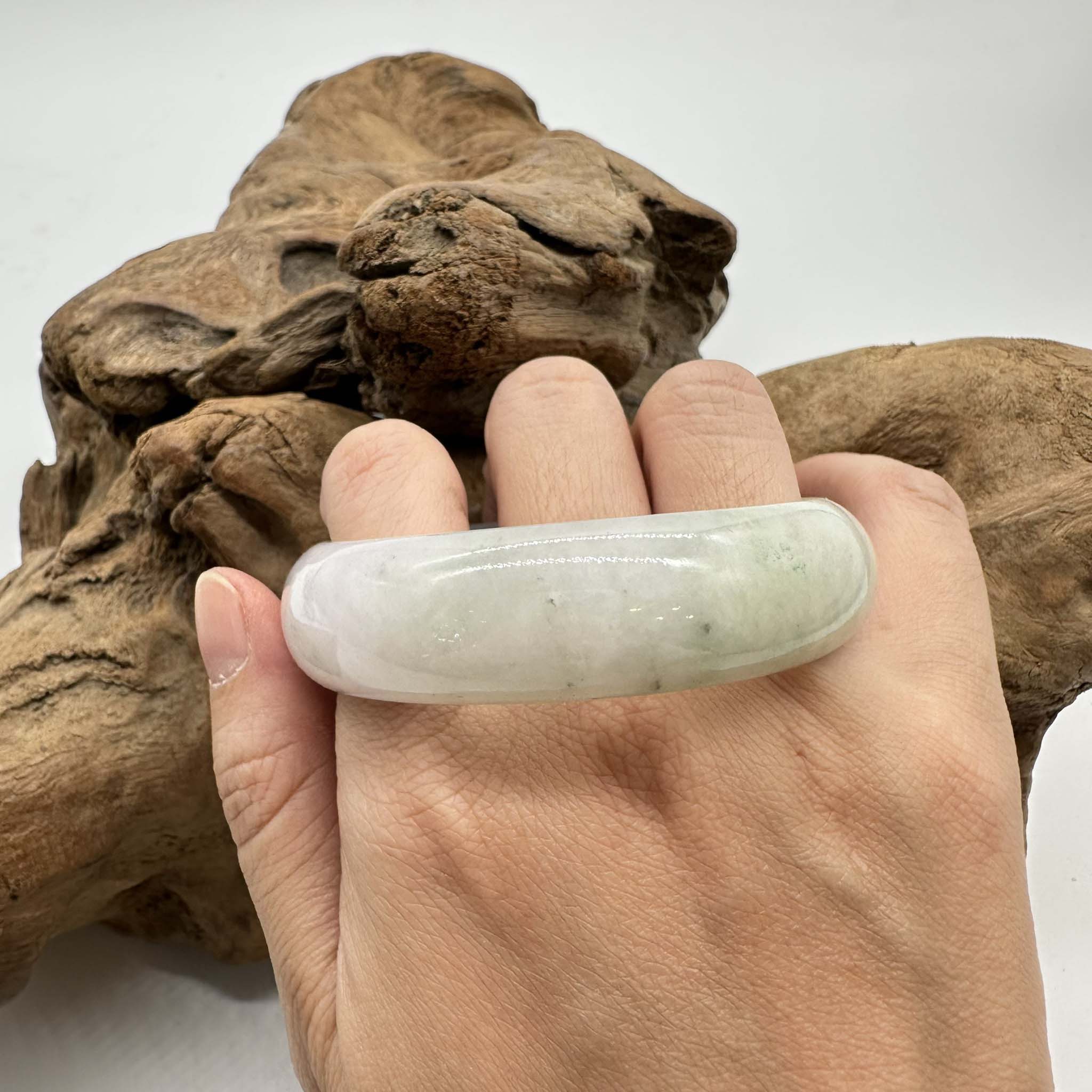 【肌容雪】天然緬甸A貨春彩飄花翡翠平安鐲 編號255(鐲圍55.2mm#17.5號)