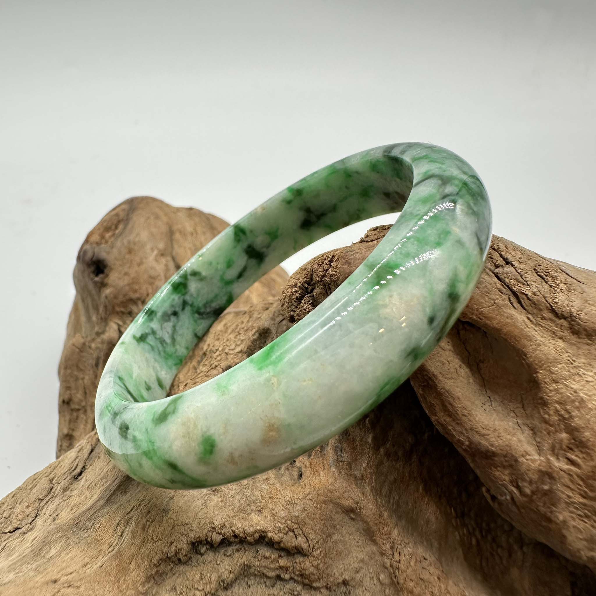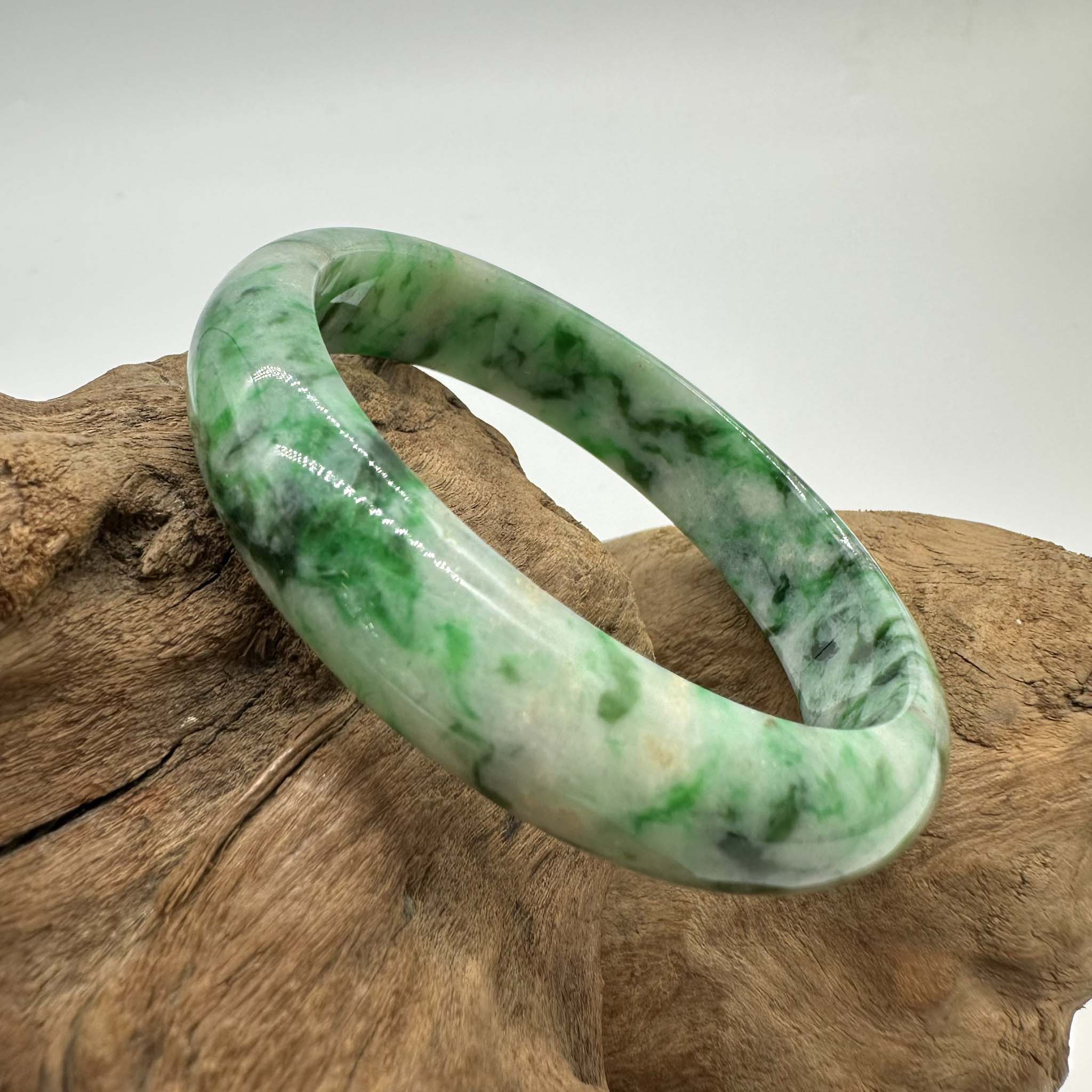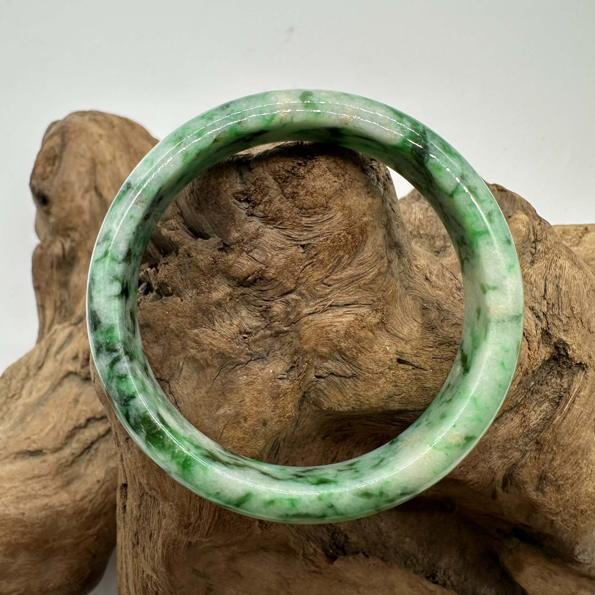 【肌容雪】天然緬甸A貨正陽滿綠飄花翡翠平安鐲 編號259(鐲圍55.7mm#17.5號)