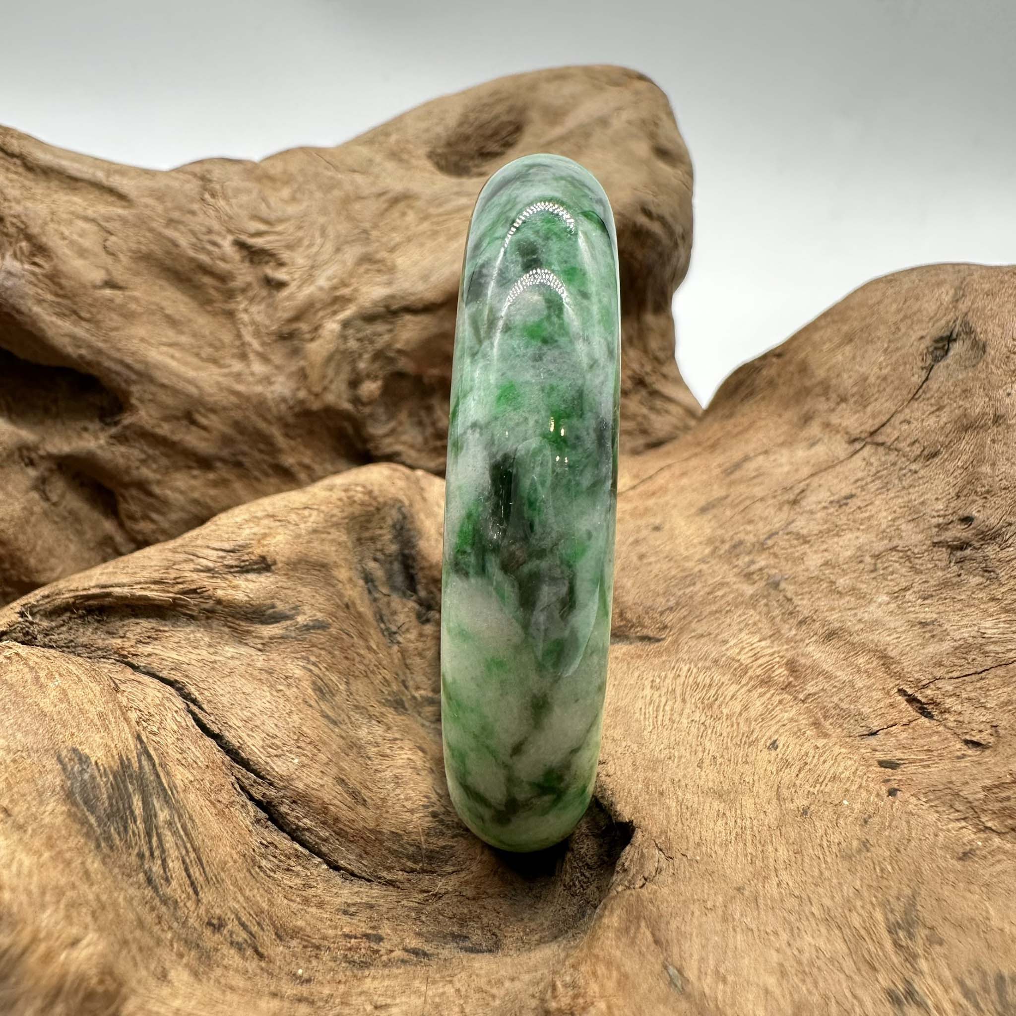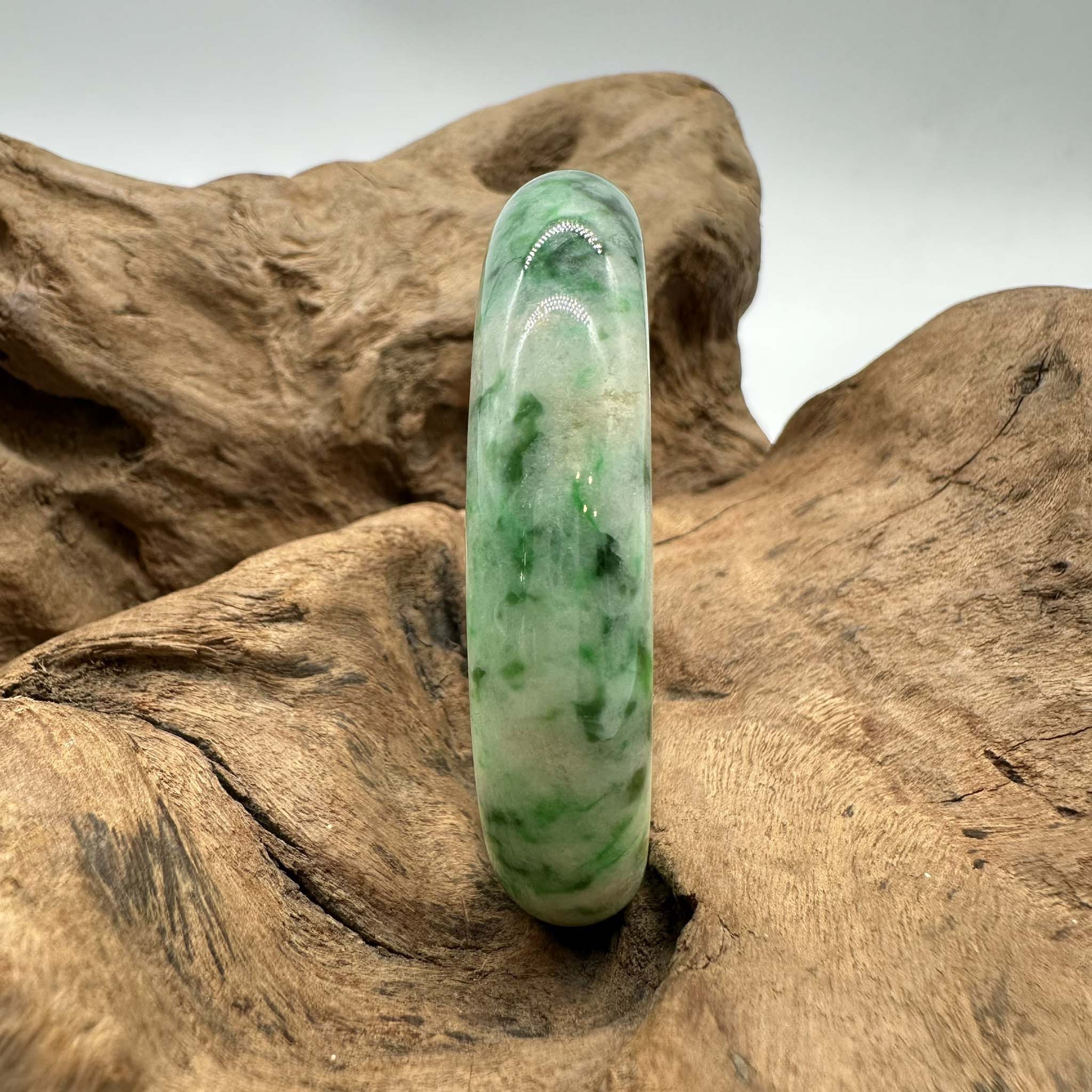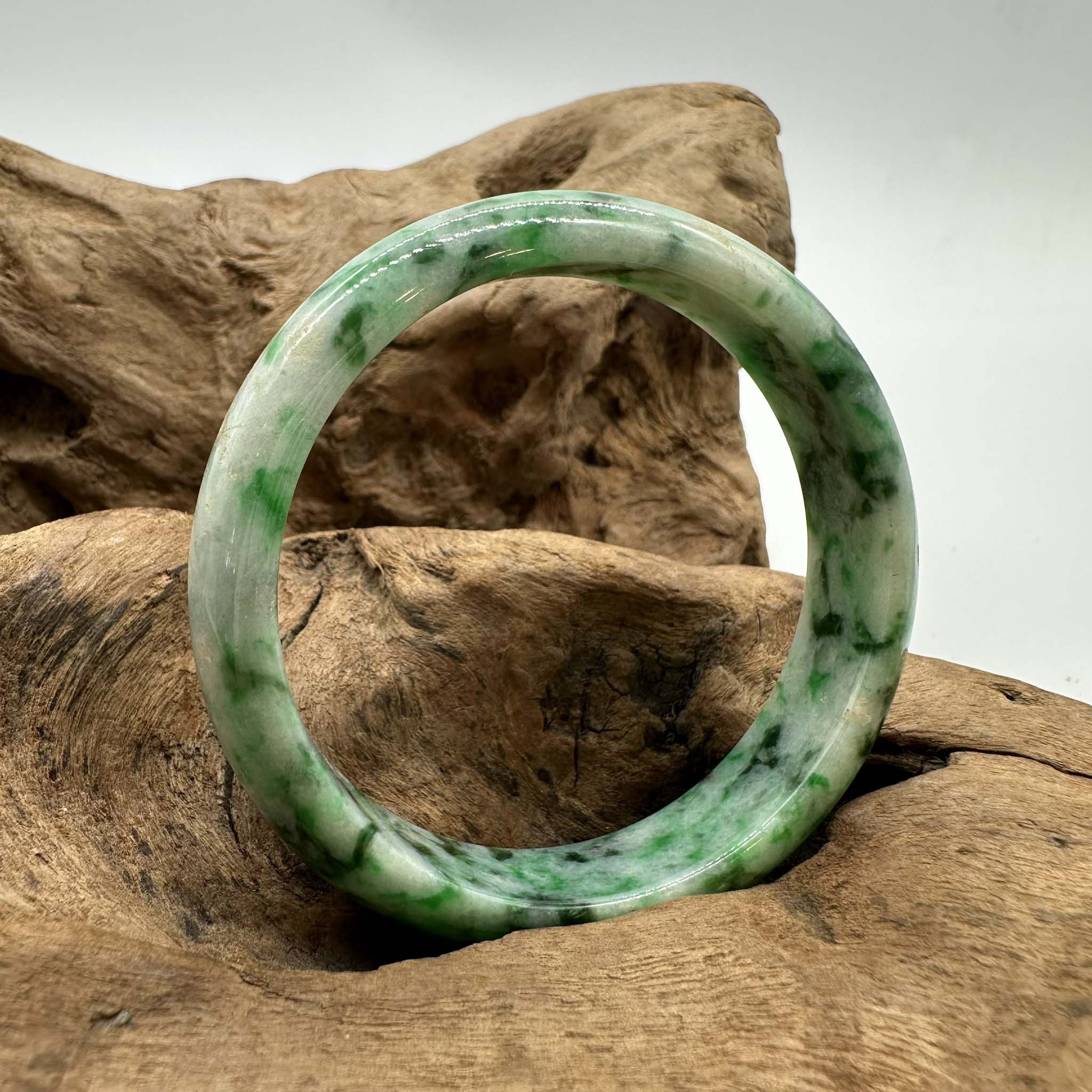 【肌容雪】天然緬甸A貨正陽滿綠飄花翡翠平安鐲 編號259(鐲圍55.7mm#17.5號)