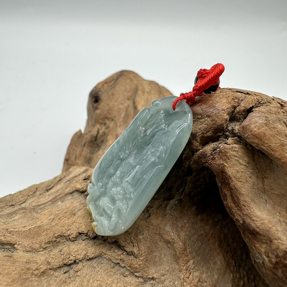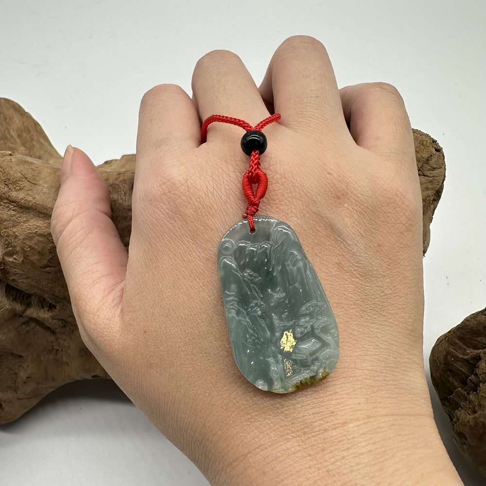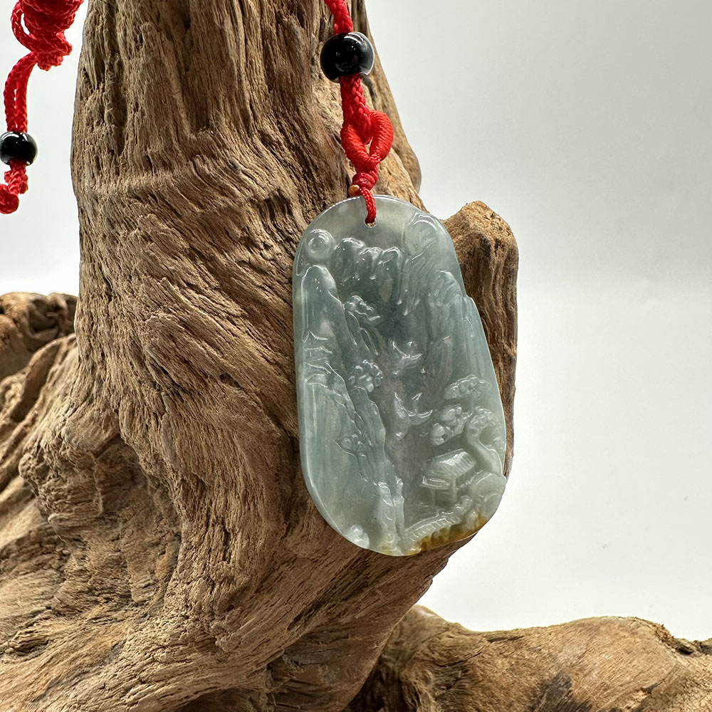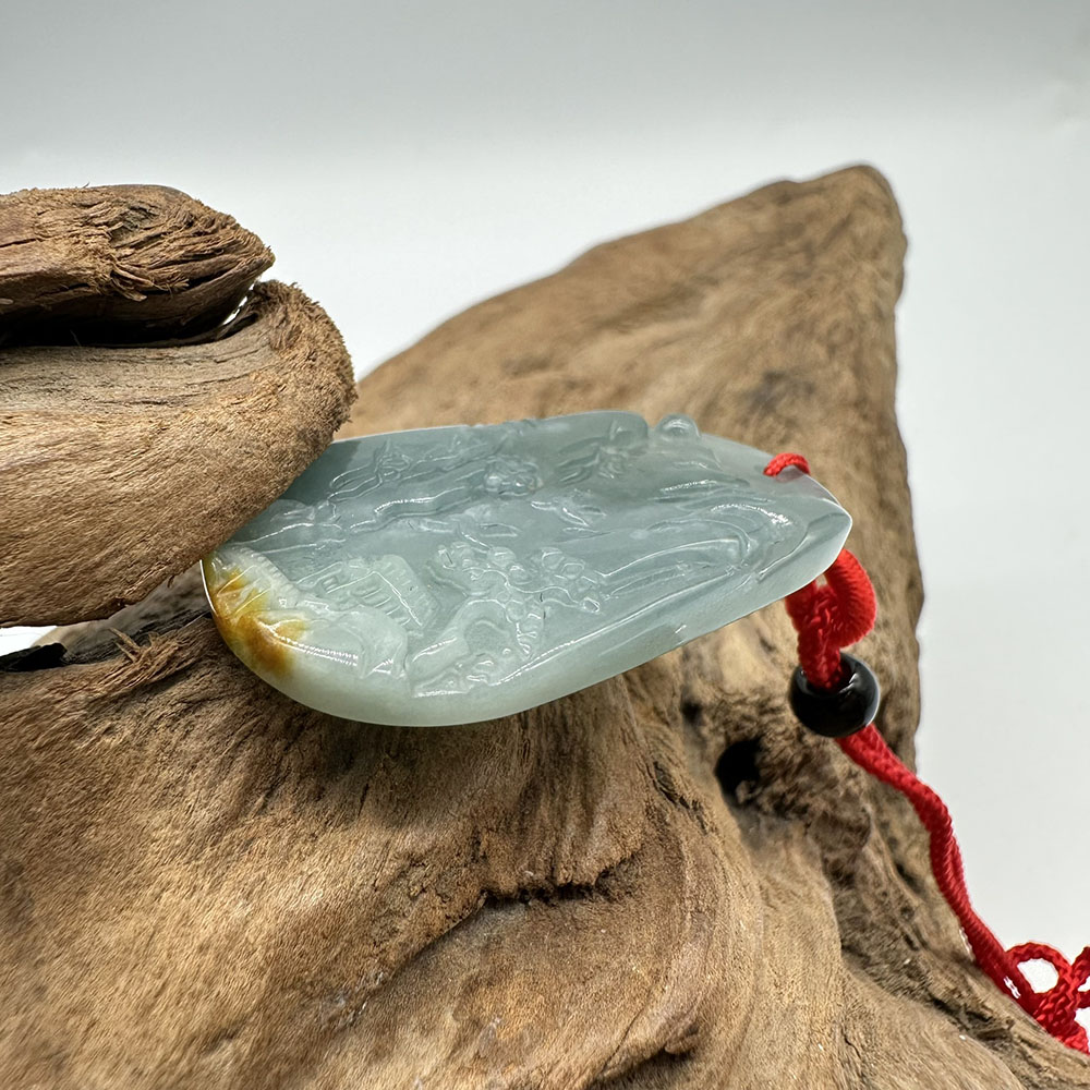 【肌容雪】天然緬甸A貨藍水山水雕刻牌吊墜繩 編號340