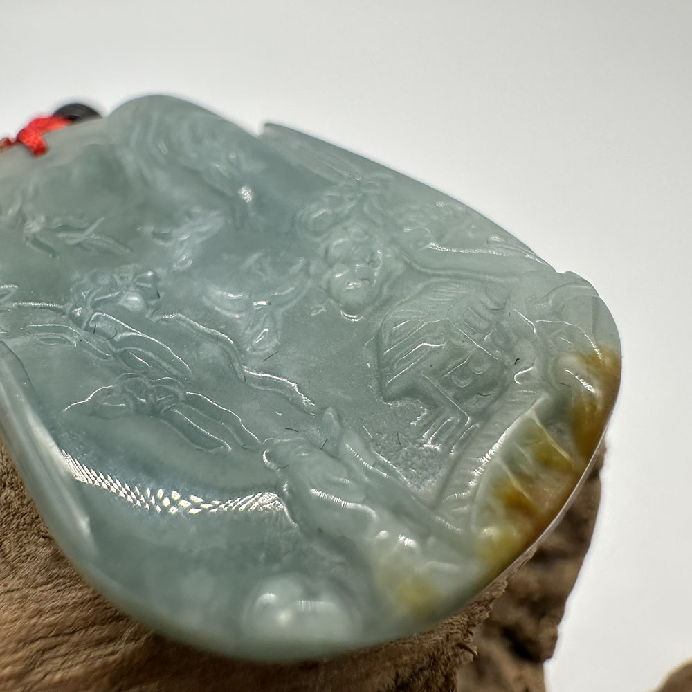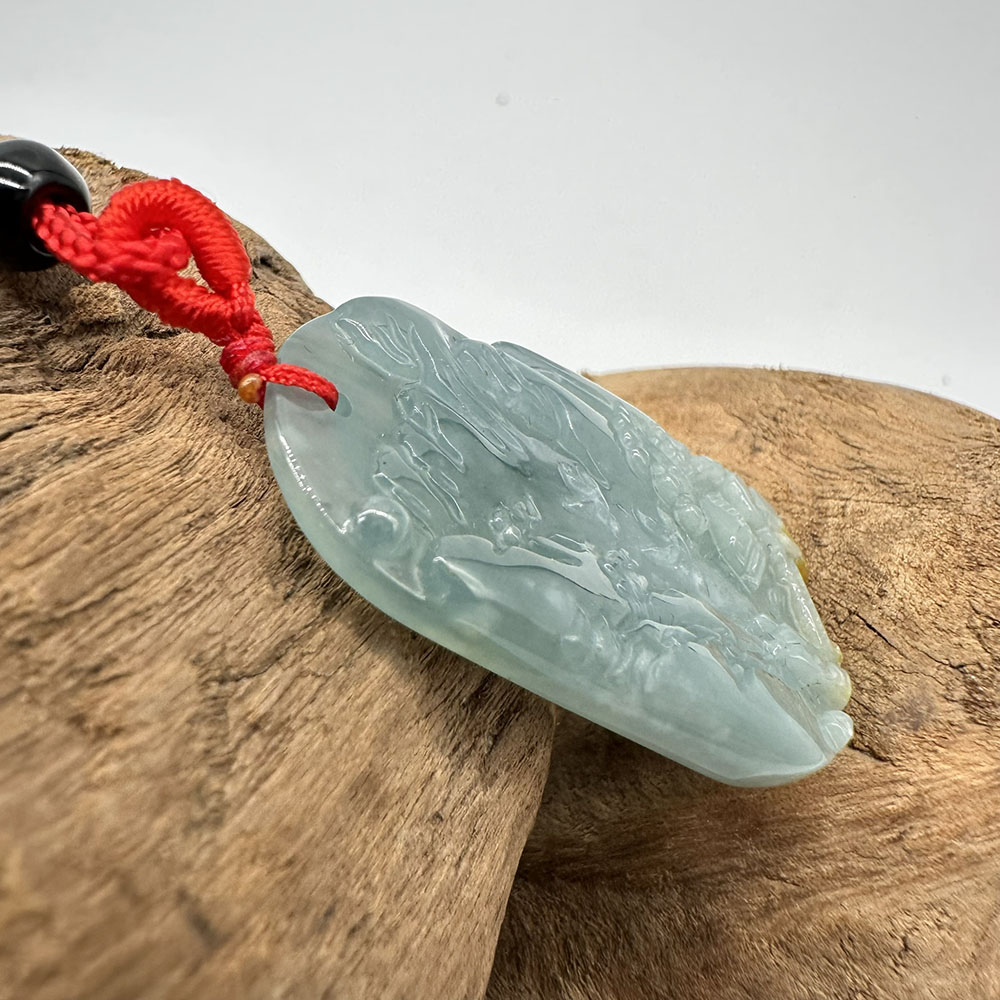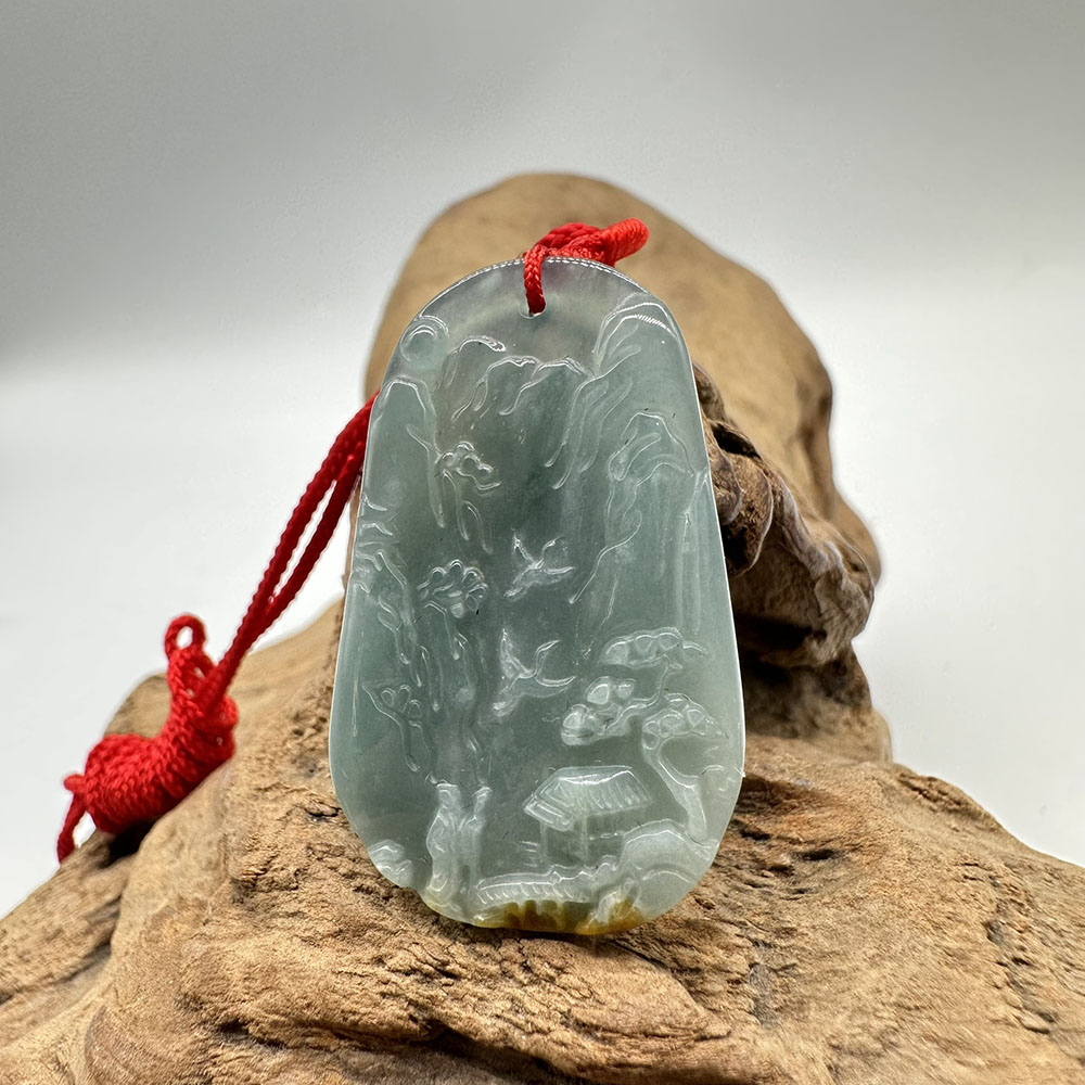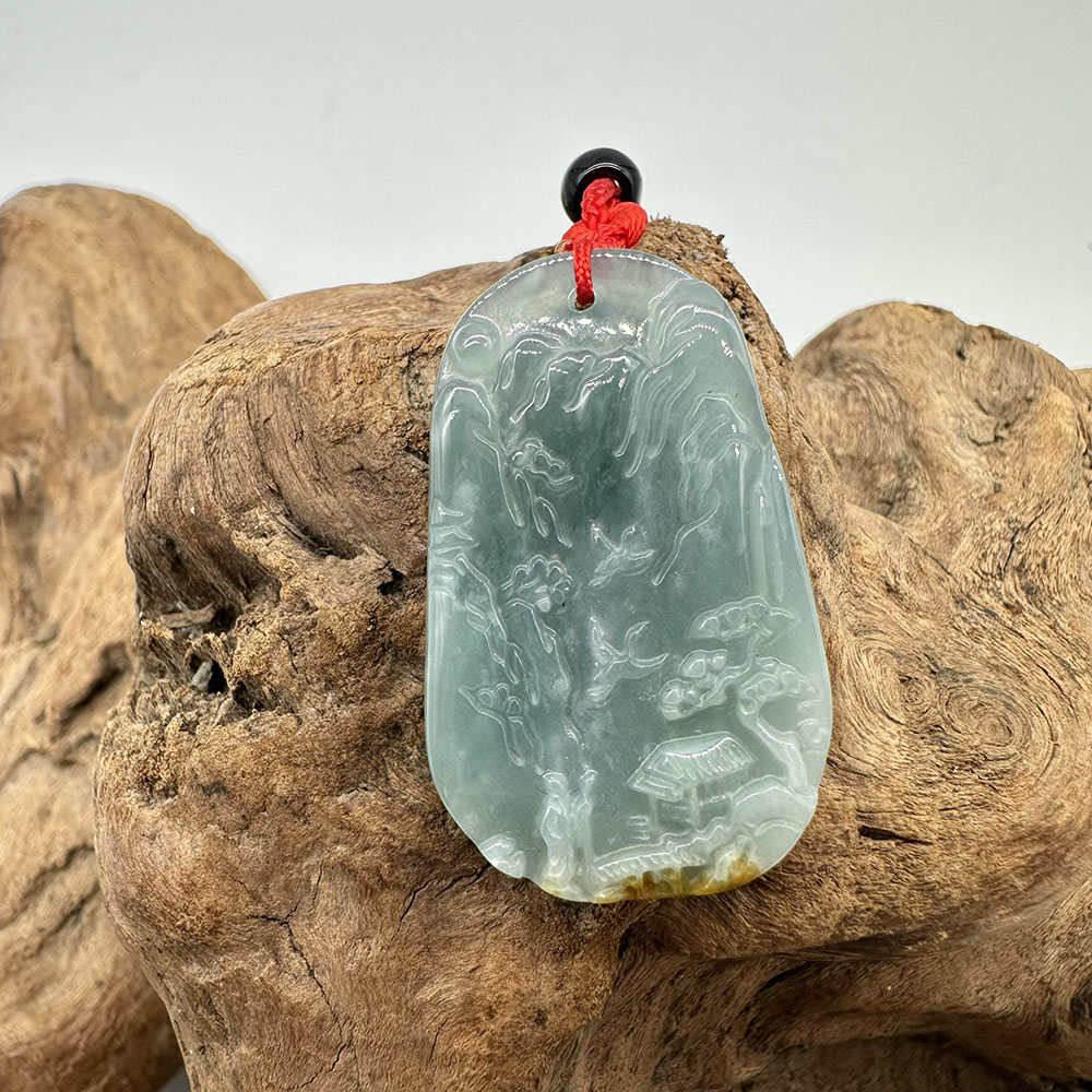 【肌容雪】天然緬甸A貨藍水山水雕刻牌吊墜繩 編號340